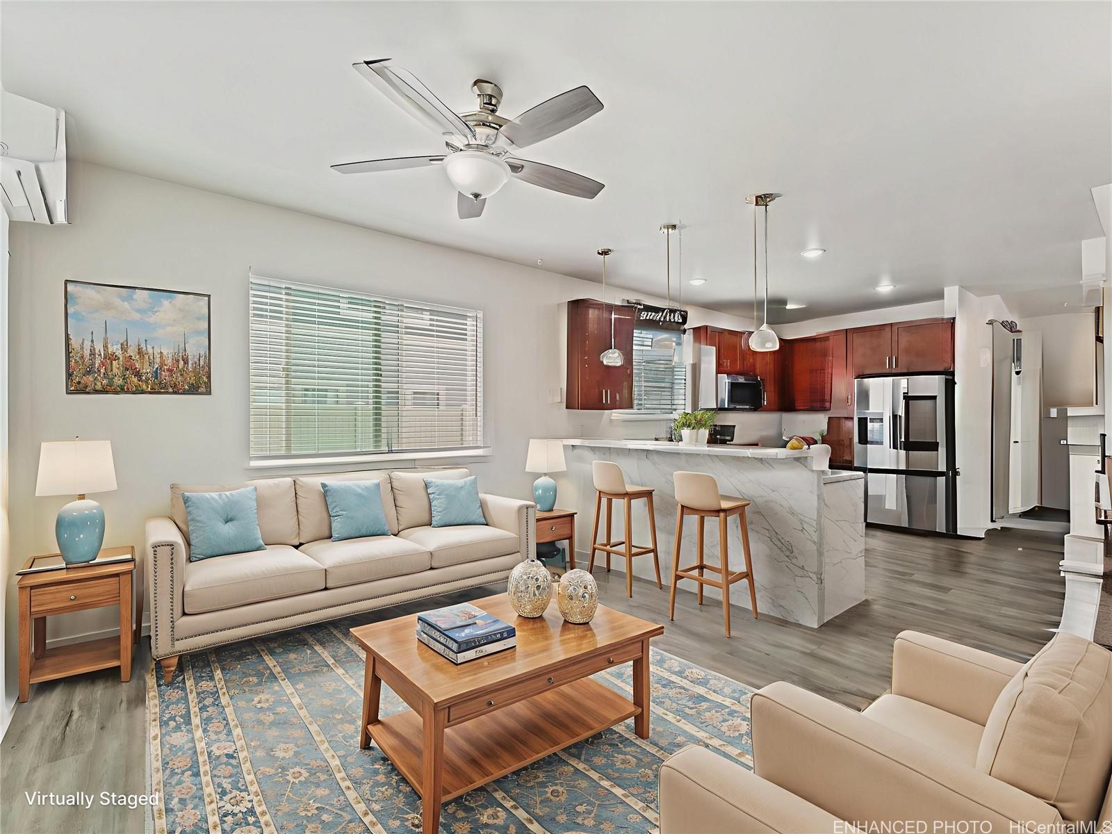 Dreaming of your slice of paradise in the thriving Ho'opili community? Don't let this immaculate 4-bed, 2.5-bath gem in Iliahi slip away—it's a spacious stunner, just as amazing as the day it was built, featuring sleek builder-installed vinyl planks on the first floor and plush, inviting carpeting on the stairs and second level for that perfect blend of style and comfort. Stay blissfully cool through Ewa's hot, hot, summers thanks to owned solar panels and a battery system— it'll keep you feeling auurite! Transform your private yard into an entertainer's haven for unforgettable evenings with friends under the stars. And the location? Just mere steps from Ka Makana Ali'i Mall, UH West Oahu, Costco, Walmart, the Kroc Center.. literally! Right in between of Ewa Beach and Kapolei. Don't feel like driving? It's a quick walk/jog to the Konane neighborhood park, community center, dog park, and three handy rail stations. You've been waiting for a home like this! Come check 'em out! Mahalo!