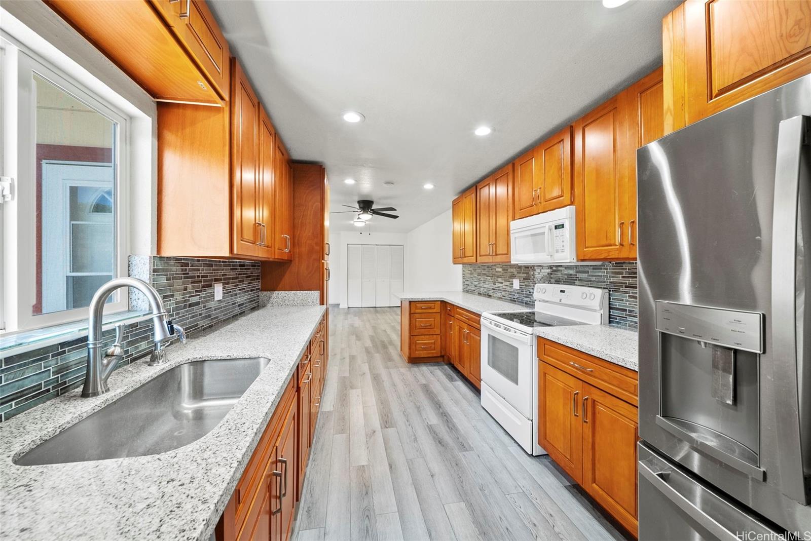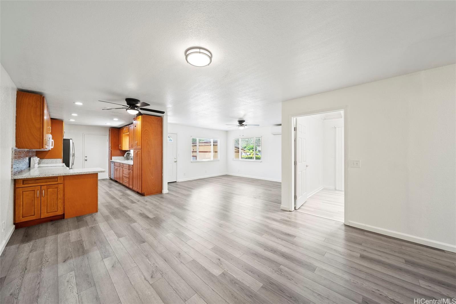 カラマ・バレーにある、美しく手入れされた平屋建ての住宅へようこそ。5,671平方フィートの敷地に、3ベッドルーム、2バスルーム、そして多目的に使えるボーナスルームを備えています。開放的なリビング・ダイニングエリアから、高級木製キャビネット、クォーツカウンタートップ、ステンレス製家電、スタイリッシュなタイル張りのバックスプラッシュを備えた最新鋭のキッチンへと続きます。ビニール製の板張りの床、スプリット&ウィンドウエアコン、シーリングファン、そしてたっぷりの自然光をお楽しみください。屋外でのくつろぎは、ラップアラウンドデッキ、複数のベランダ、フェンスで囲まれた庭、そして山の景色で輝き、リラックスしたり、お客様をもてなしたりするのに最適です。その他のハイライトには、太陽熱温水器を備えた34枚の太陽光発電パネル、専用の作業場と裏手の収納、追加の私道駐車スペース、そして閑静な住宅街の平坦な敷地などがあります。ココヘッド・トレイル、サンディビーチ、マカプウ灯台、ハナウマ湾に近い便利な場所にあるこの住宅は、すぐに入居可能で、ホノルル東部のカラマ・バレーで最高のアイランドライフをお届けします。