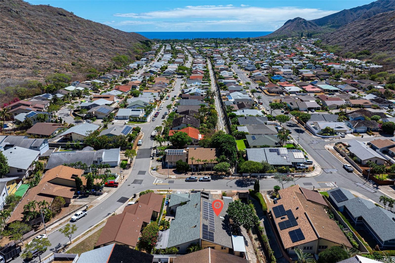 Welcome to this beautifully maintained single-level home in Kalama Valley, offering 3 bedrooms, 2 bathrooms, and a versatile bonus room on a 5,671 sq. ft. lot. The open living and dining area flows into an updated kitchen with rich wood cabinetry, quartz countertops, stainless steel appliances, and a stylish tile backsplash. Enjoy vinyl plank flooring, split and window A/C units, ceiling fans, and abundant natural light throughout. Outdoor living shines with a wrap-around deck, multiple lanai spaces, a fenced yard, and mountain views, ideal for relaxing or entertaining. Additional highlights include 34 owned photovoltaic panels with solar water heating, a dedicated workshop shed and storage in the back , extra driveway parking, and a level lot in a peaceful neighborhood. Conveniently located near Koko Head trail, Sandy Beach, Makapu'u Lighthouse, and Hanauma Bay, this move-in ready home offers the best of island living in East Honolulu’s Kalama Valley.