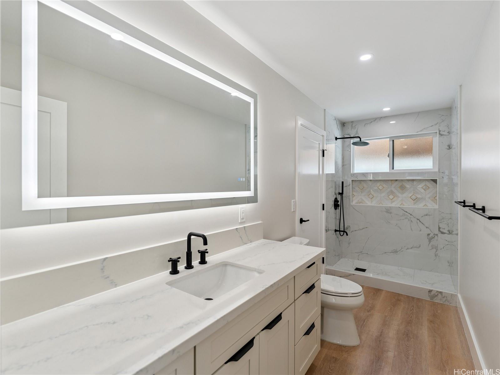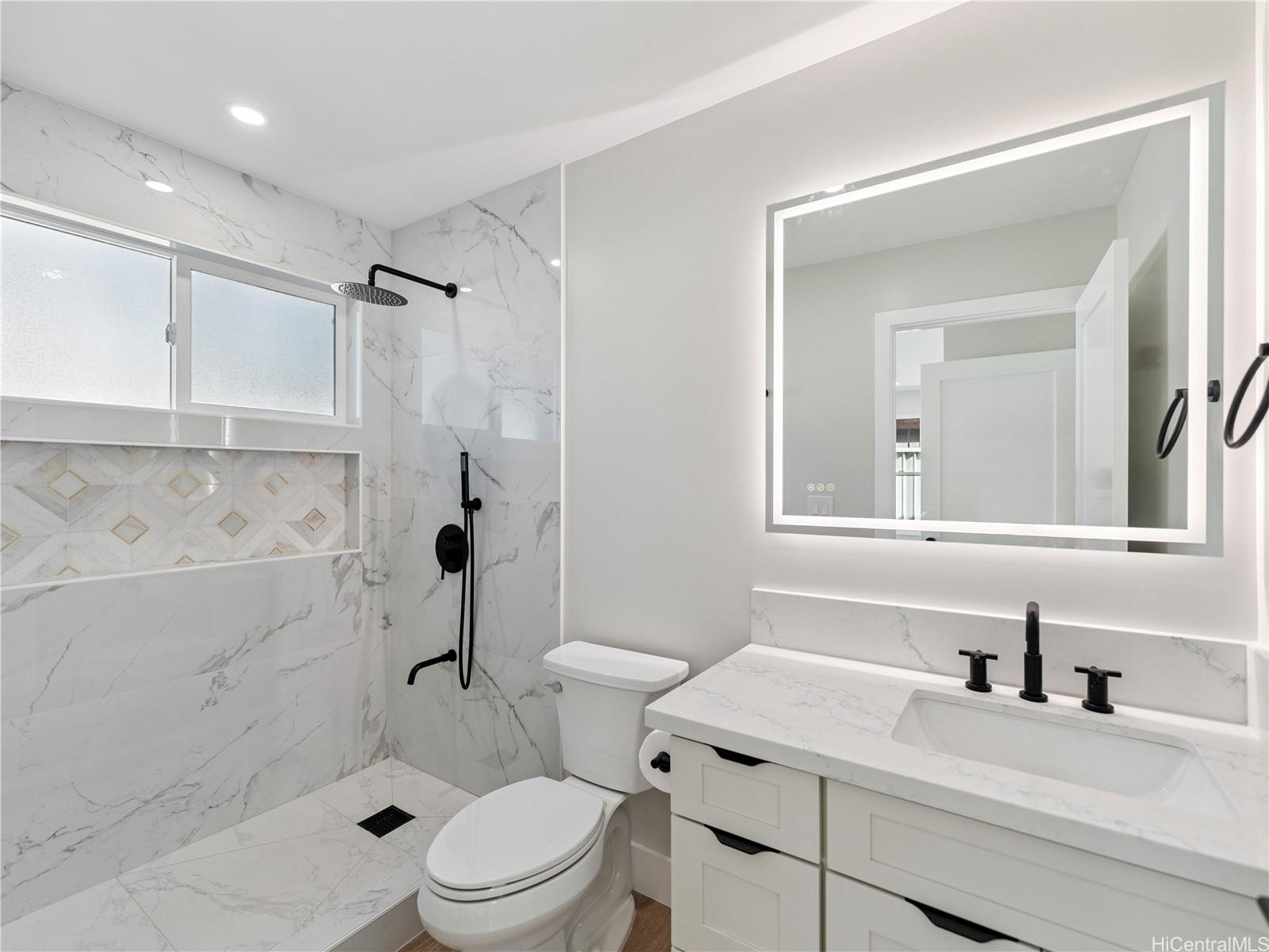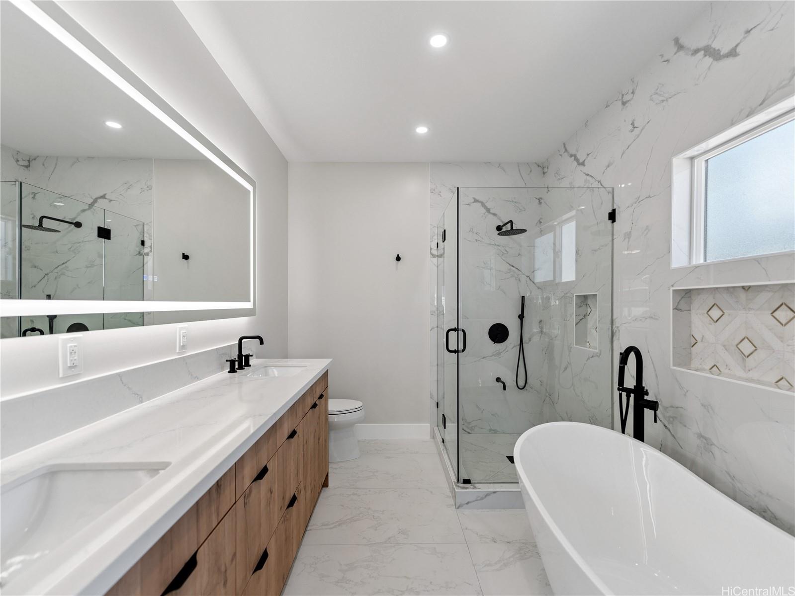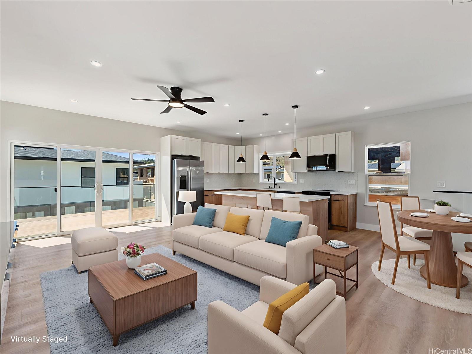 Motivate seller! The beautiful brand-new, detached CPR modern home:5 spacious bedrooms and 4 full bathrooms, landscape yard is perfect for multi-generation, rental income(3/2 upstairs, 2/2 downstairs), or buyers who want a single home without condo fee. This home features an open concept living room, a modern kitchen with beautiful cabinetry, stylish backsplash, and stainless-steel appliances. The primary bedroom includes a walk-in closet, and a luxurious bathroom with soaking tub, glass door shower, and double sink vanity with LED vanity mirrors. Each upstairs bedroom has its own private lanai and the most spacious lanai is connected to the living room; this creates a perfect setting for family gathering or relaxation area after a long day.7 split AC units & multiple ceiling fans, the home can remain comfortable all year long. Two garages for thee cars includes a EV-power charging station, and Smart cable box for all internet. This home located close to the public schools, private schools, University of Hawaii at Manoa, Chaminade University, Kahala Mall, and a variety of restaurants. Easy access to freeway. The home truly provides comfort & convenience