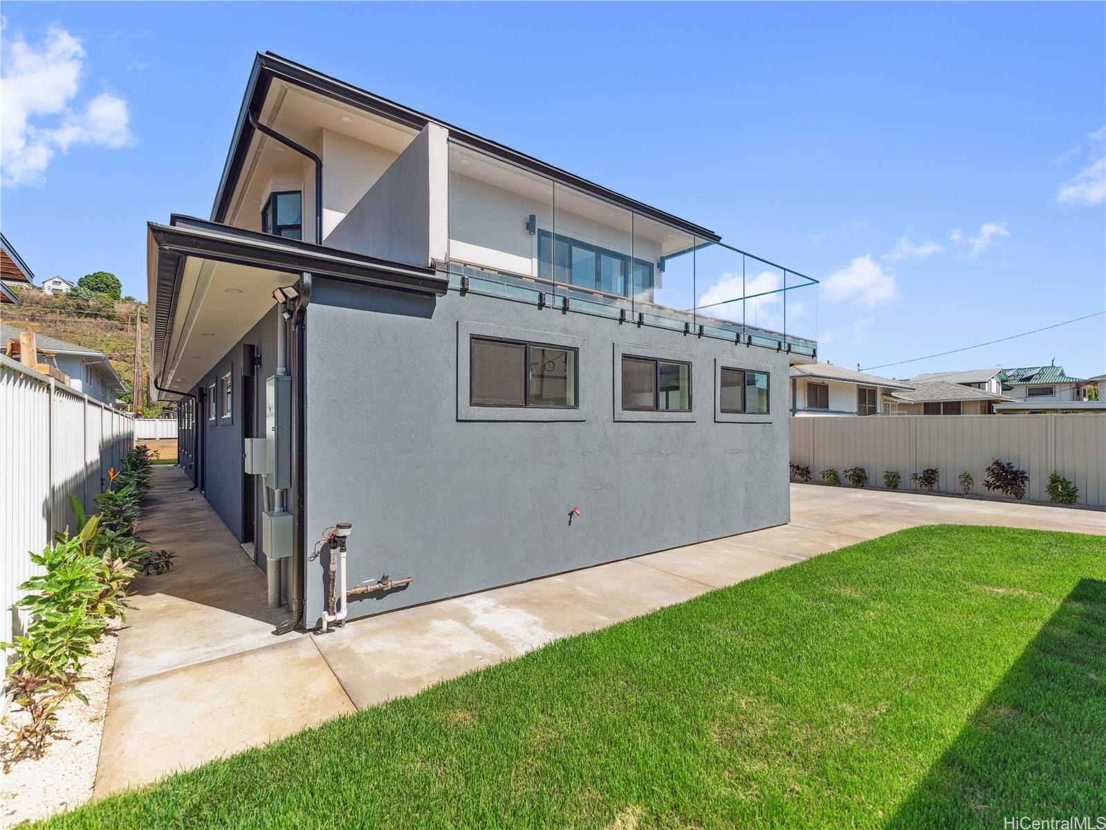 売主のやる気を引き出します!美しく新築のCPRモダン戸建て住宅:5つの広々とした寝室と4つのフルバスルーム、美しい庭は、多世代、賃貸収入(2階に3/2、1階に2/2)、または分譲料なしの1軒家をお探しの購入者に最適です。この住宅は、オープンコンセプトのリビングルーム、美しいキャビネット、スタイリッシュなバックスプラッシュ、ステンレス製の電化製品を備えたモダンなキッチンを備えています。主寝室にはウォークインクローゼット、深めのバスタブ、ガラスドアのシャワー、LEDバニティミラー付きのダブルシンクの洗面台を備えた豪華なバスルームがあります。2階の各寝室には専用のベランダがあり、最も広々としたベランダはリビングルームにつながっています。これは、長い一日の後の家族の集まりやリラクゼーションエリアに最適な環境を作り出します。7つのスプリットエアコンと複数のシーリングファンにより、家は一年中快適に過ごすことができます。3台分の車庫が2つあり、EV電源充電ステーションとすべてのインターネット用のスマートケーブルボックスが含まれています。この物件は、公立学校、私立学校、ハワイ大学マノア校、シャミナード大学、カハラモール、そして様々なレストランに近い場所に位置しています。高速道路へのアクセスも良好です。この物件は、まさに快適で便利な物件です。