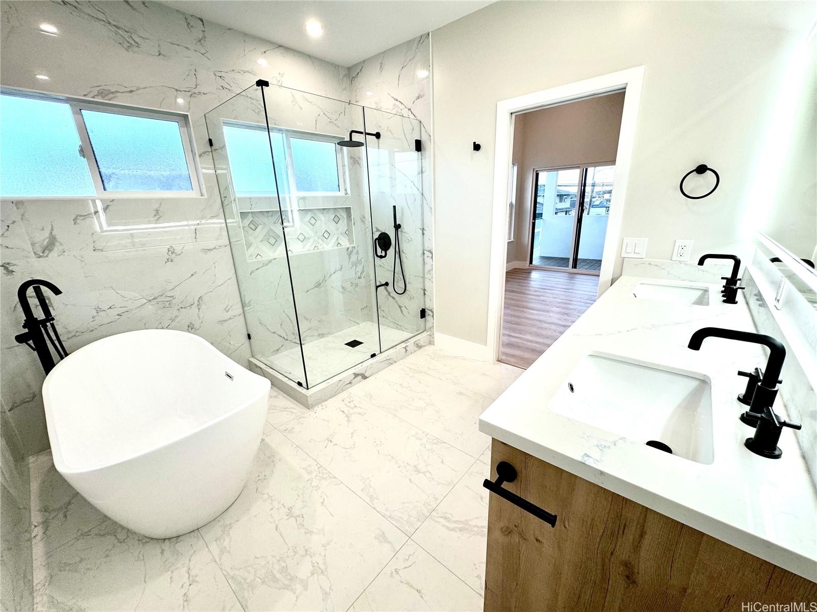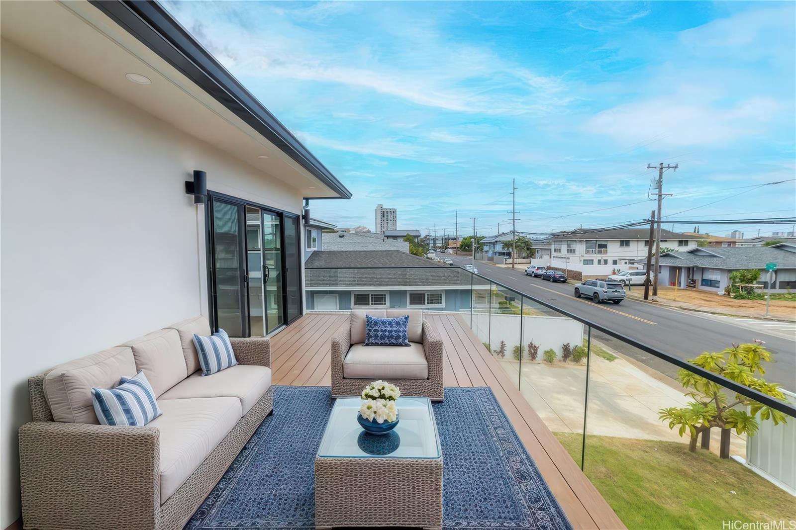 Motivate Seller. This beautiful brand-new, detached CPR modern home:5 spacious bedrooms and 4 full bathrooms, landscape yard is perfect for multi-generation, rental income(3/2 upstairs, 2/2 downstairs), or buyers who want a single home without condo fee. This home features an open concept living room, a modern kitchen with beautiful cabinetry, stylish backsplash, and stainless-steel appliances. The primary bedroom includes a walk-in closet, and a luxurious bathroom with soaking tub, glass door shower, and double sink vanity with LED vanity mirrors. Each upstairs bedroom has its own private lanai and the most spacious lanai is connected to the living room; this creates a perfect setting for family gathering or relaxation area after a long day.7 split AC units & multiple ceiling fans, the home can remain comfortable all year long. Two garages for thee cars includes a EV-power charging station, and Smart cable box for all internet. This home located close to the public schools, private schools, University of Hawaii at Manoa, Chaminade University, Kahala Mall, and a variety of restaurants. Easy access to freeway. The home truly provides comfort & convenience.
