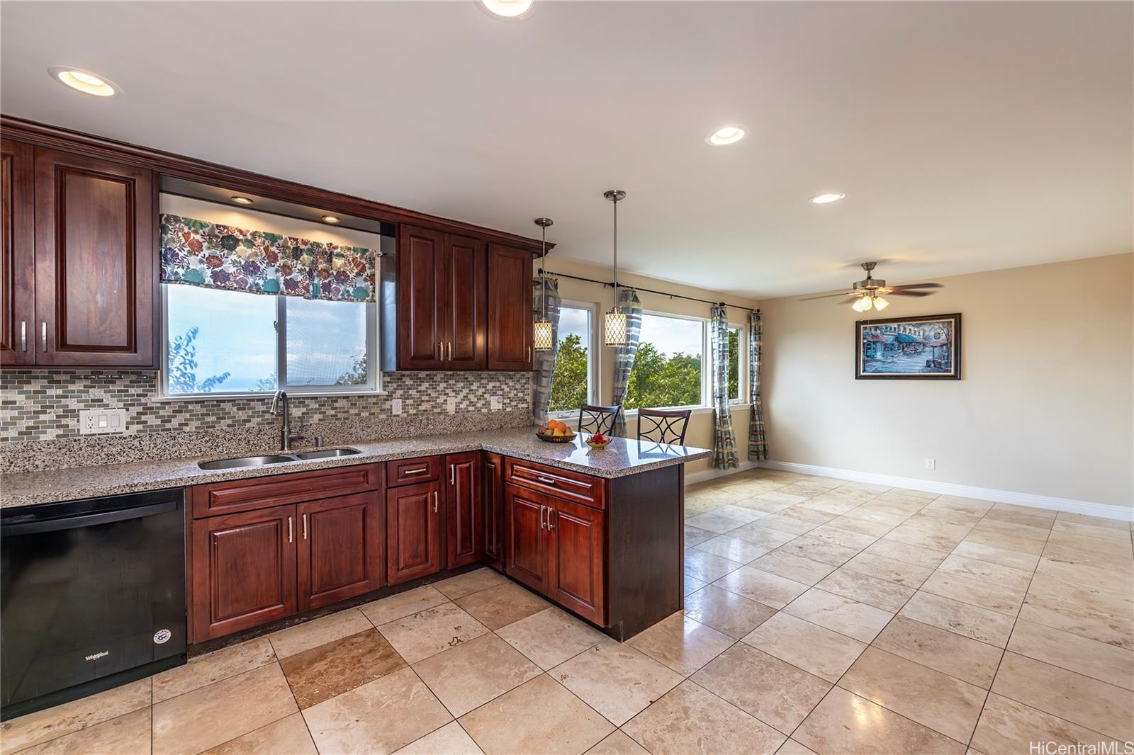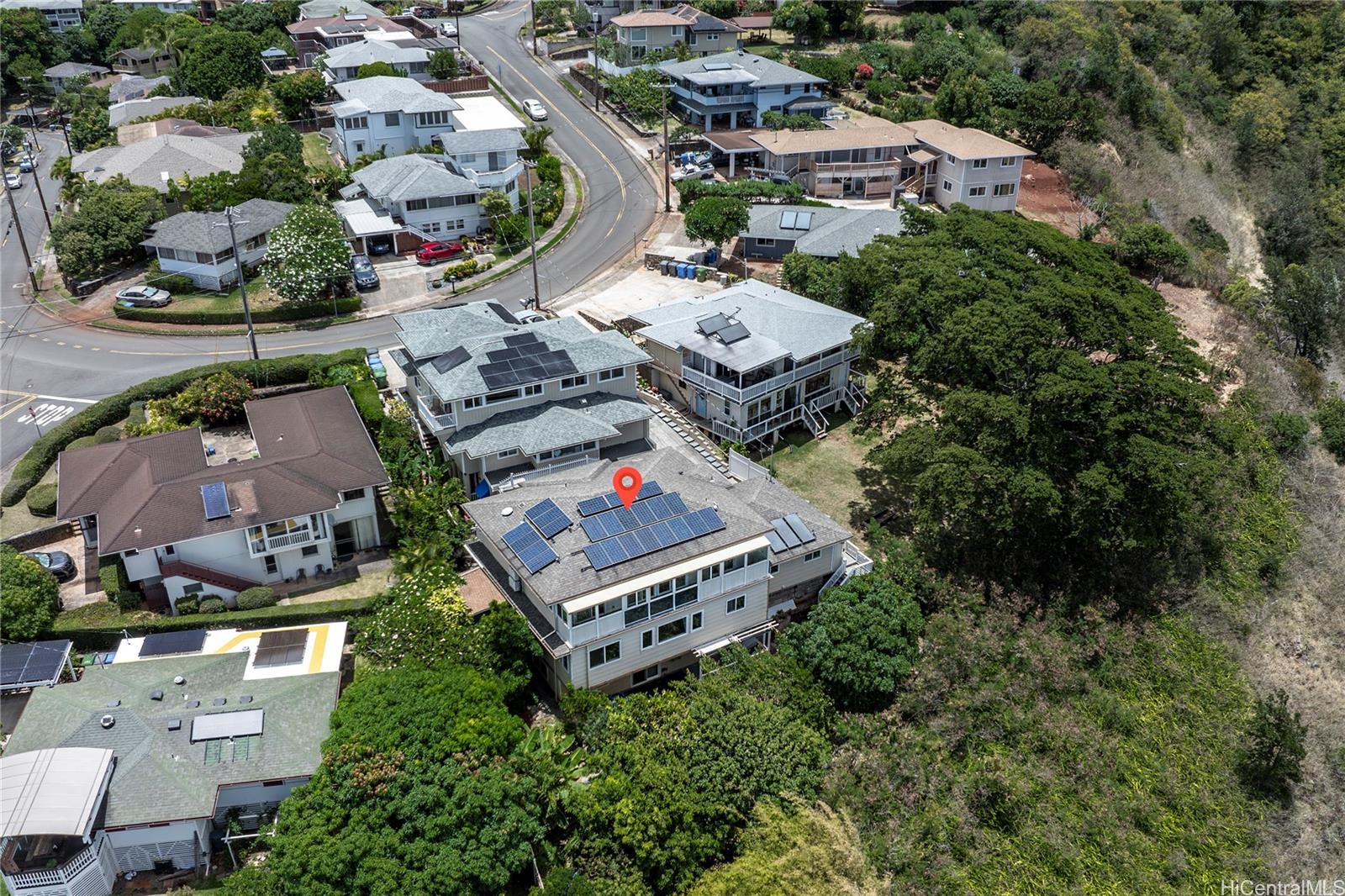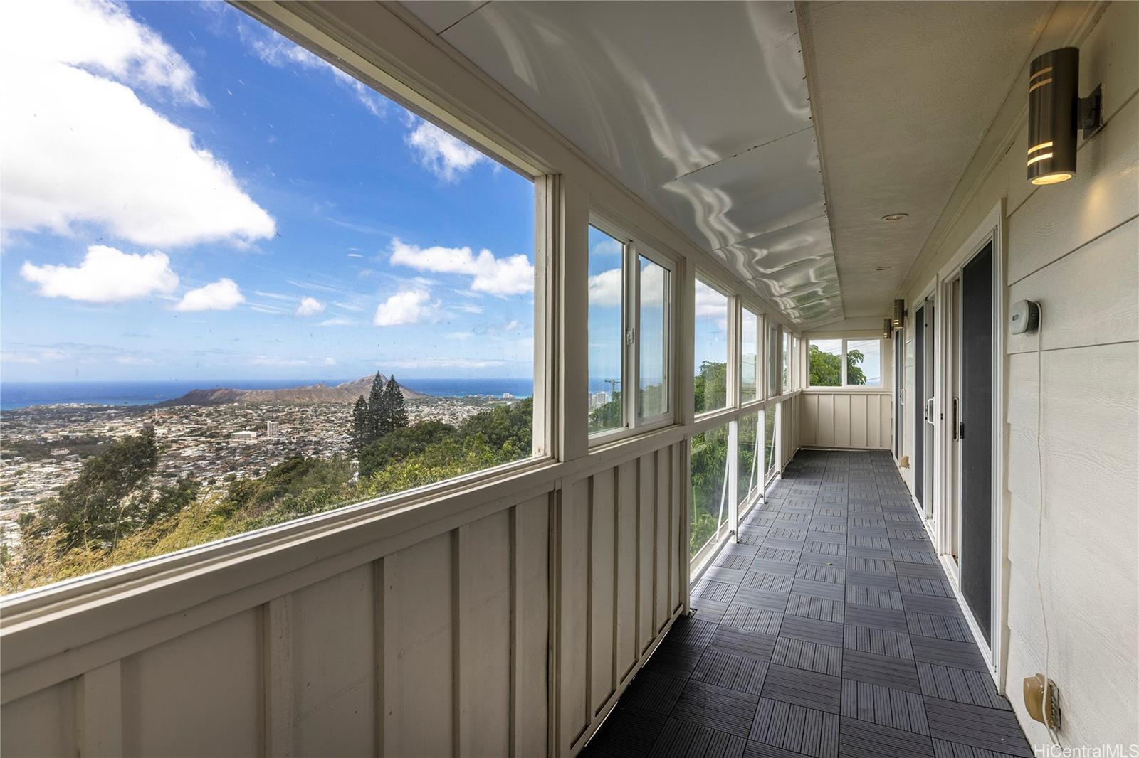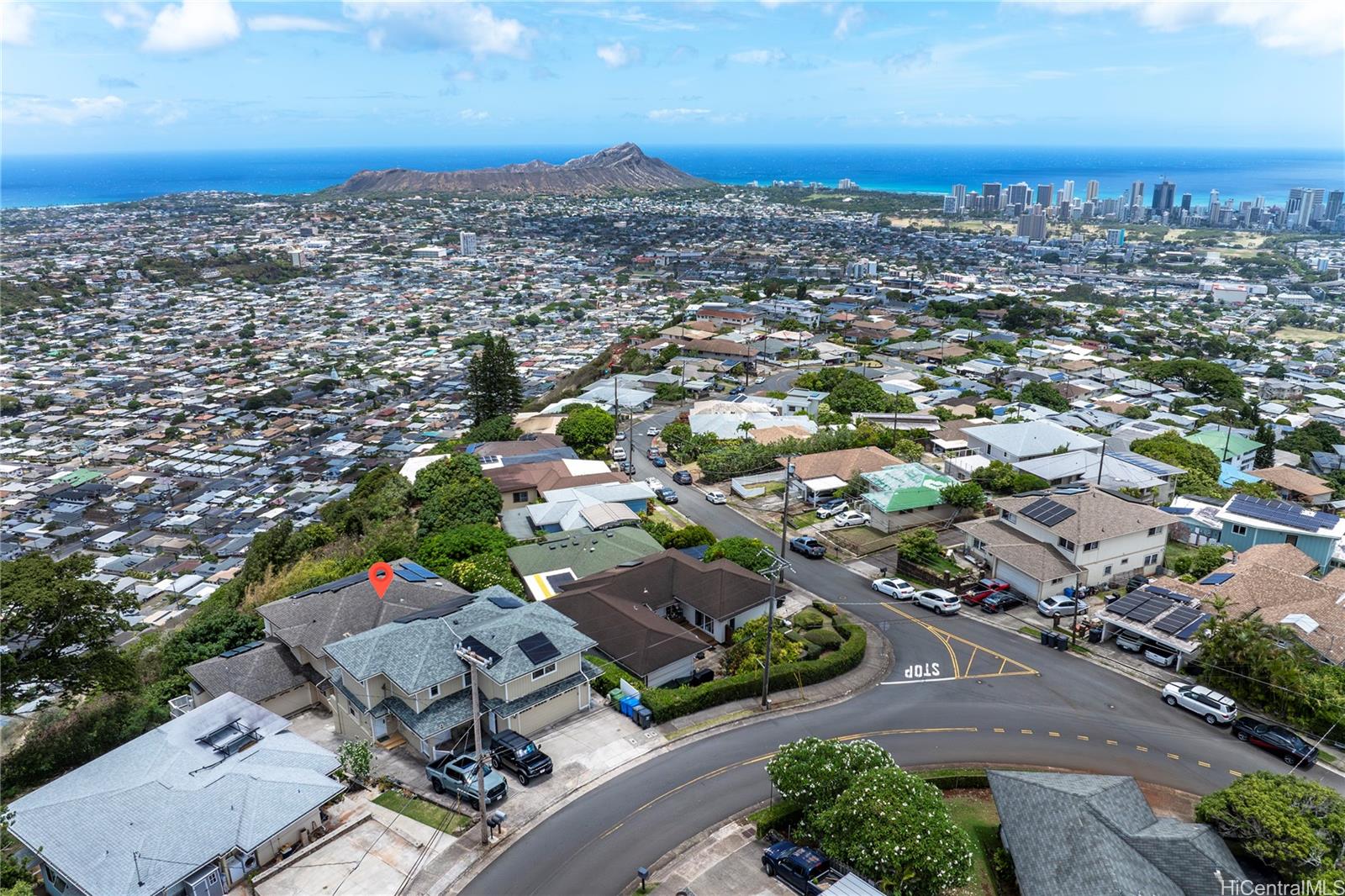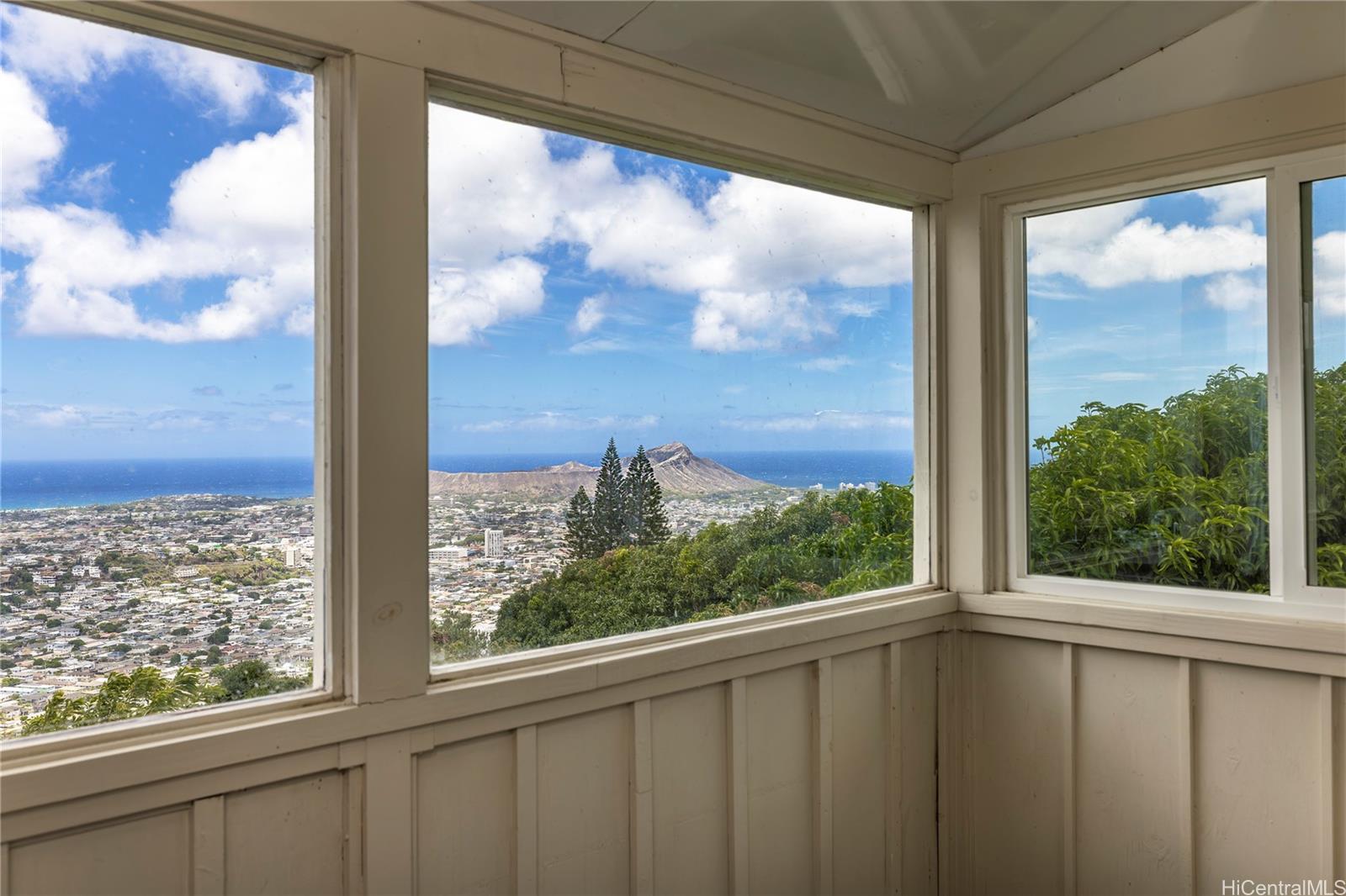 Nestled on coveted St. Louis Drive, this expansive 5-bedroom home perfectly blends tranquility with modern comfort and showcases stunning views of lush valley greenery, iconic Diamond Head, and the sparkling ocean beyond. 24 owned photovoltaic panels, solar hot water, and split air conditioning keep the home energy-efficient and cool all year. The flexible layout offers an Ohana unit (bedroom/bath/kitchenette) on the main level with its own private garden, screened-in porch deck, and separate entrance — ideal for guests, extended family, or rental income potential. Upstairs, the primary suite is a true retreat with a separate office/den, spacious closet, and direct access to a large covered lanai for relaxing or entertaining while taking in the panoramic east /south views. A cozy bonus living area off the stairway landing is perfect for a reading nook or home library. The finished basement rec room with wet bar and full bath offers even more possibilities — from a game room to a private guest suite — and includes its own separate entrance for added privacy and flexibility. A garden with exotic fruit trees, and a 2-car garage, and carport complete this quiet Honolulu oasis.
