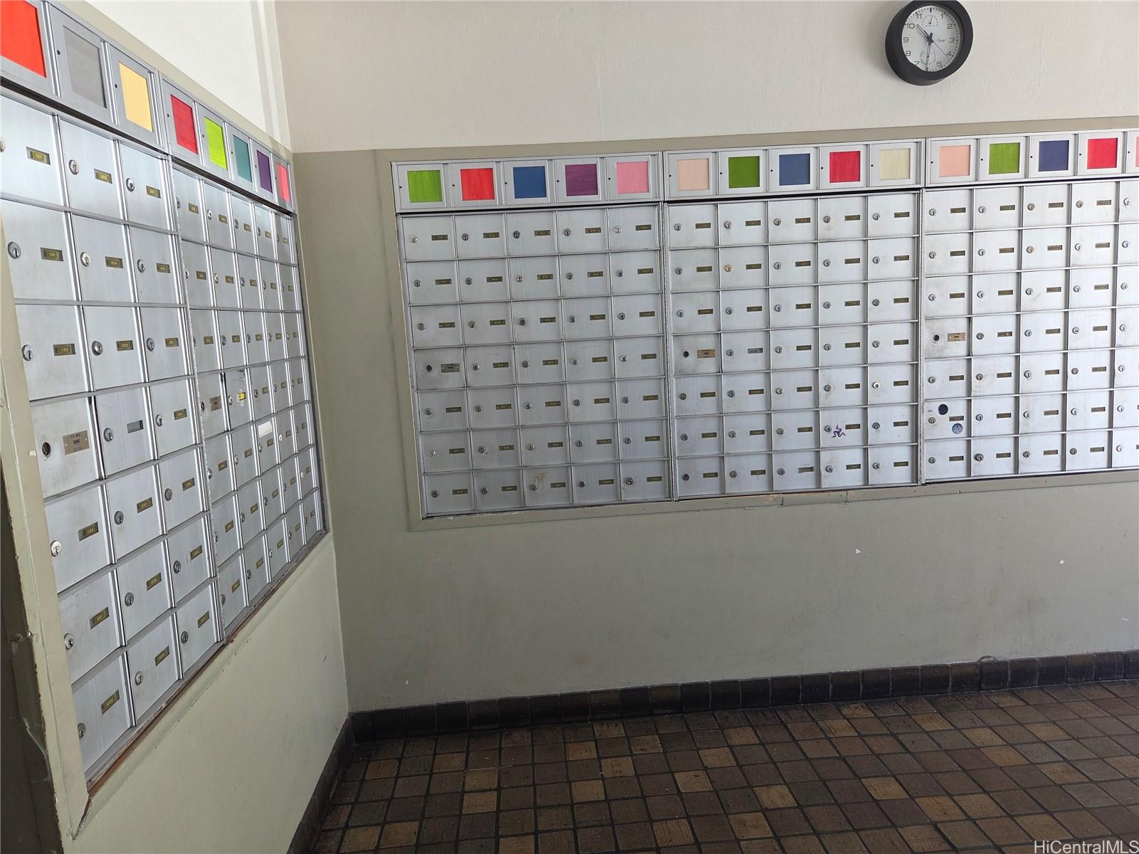 This lovely, corner end, one-bedroom, one-bath unit features a lanai extending from the living room to the bedroom. City and skyline views of mountain and ocean. If location matters, enjoy easy, close proximity to H-1 access, convenient bus line route, Neal Blaisdell Center, Thomas Square Park, Honolulu Museum of Art, Open Market on Wednesdays at the Neal Blaisdell Center grounds, Ala Moana Shopping Center, Kaka'ako restaurants, University of Hawaii, and more. The property was previously renovated in 2021 to include cherry cabinets, Quartz countertops, a new sink, and stainless steel appliances in the kitchen. Updates also included a new bathroom vanity, sink, faucet, washer/dryer, toilet and mirror. Newer refrigerator 2024. New laminate flooring in the living room kitchen and bedroom. Bathtub was nicely reglazed. There is one assigned, compact, covered parking stall. A convenient Mini Mart is also located on the ground floor. As-is condition, no repairs, but Buyer will receive a one year warranty from America's Preferred Home Warranty upon closing.