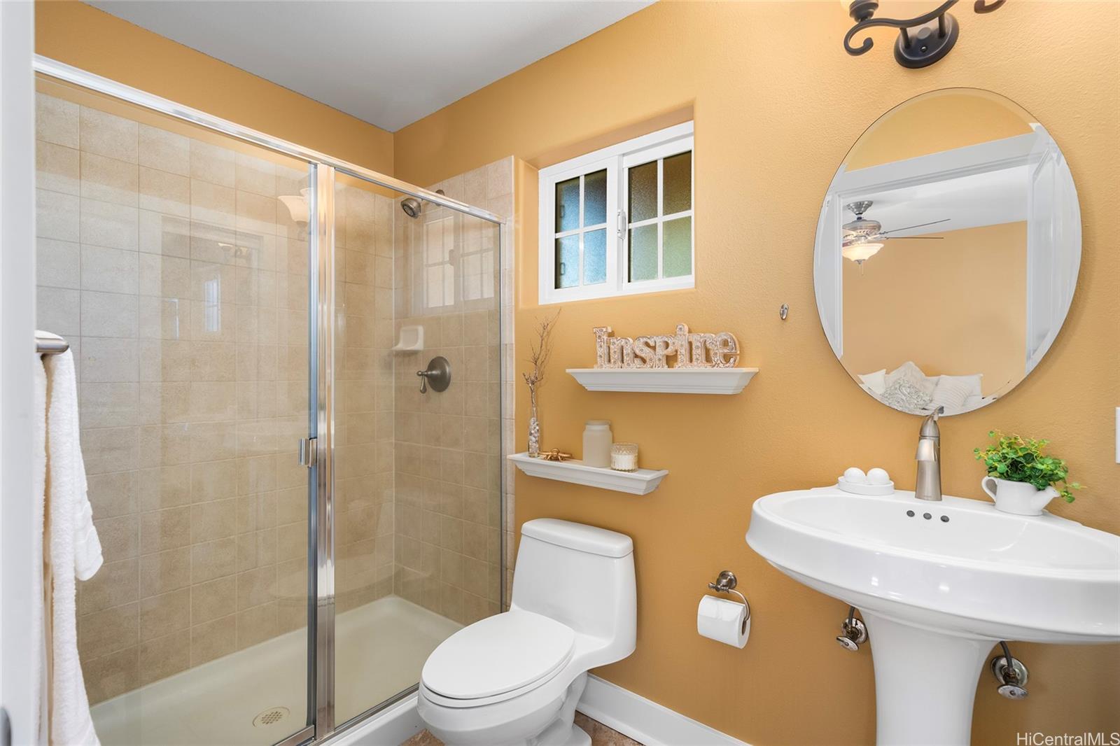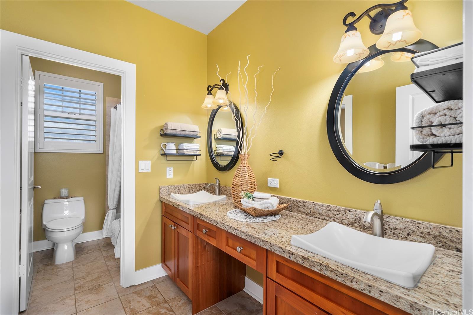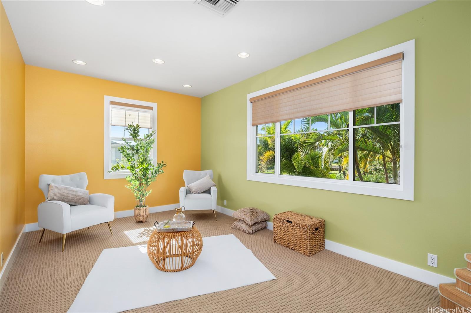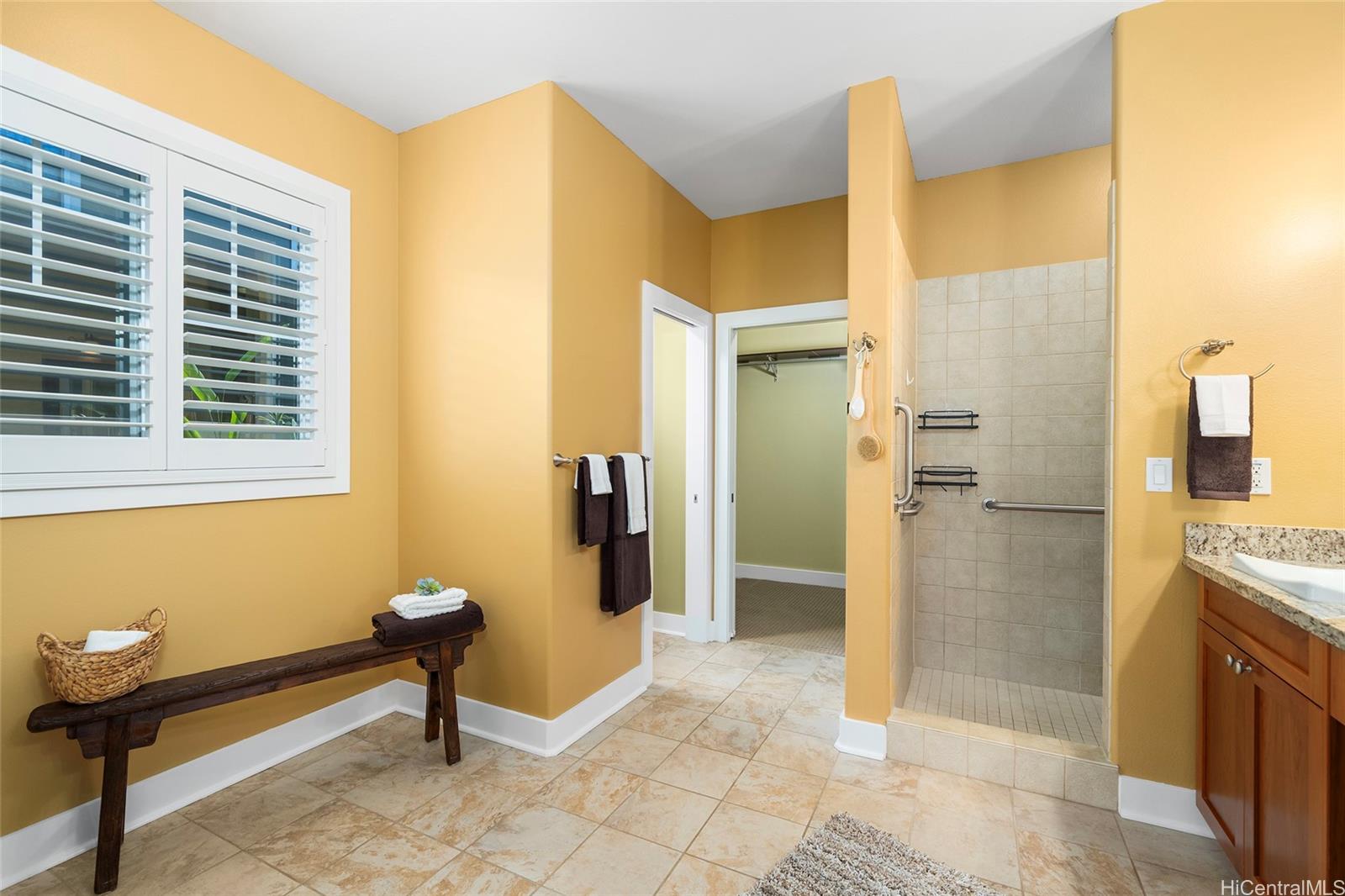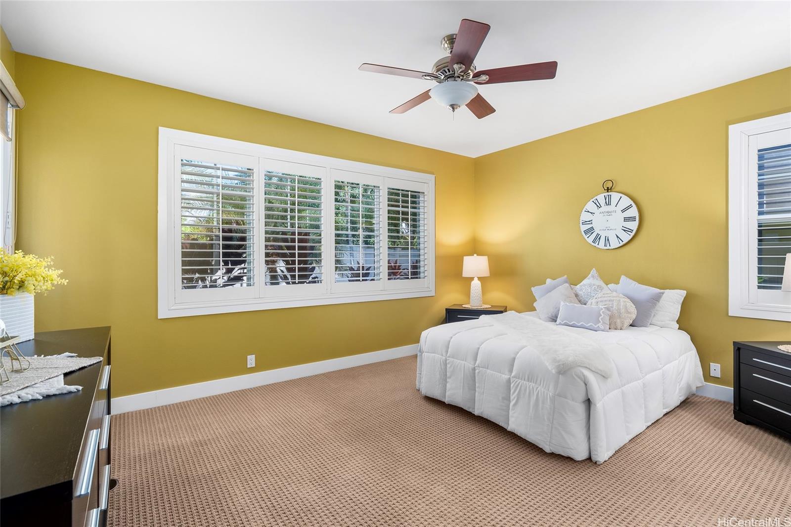 Escape to your own private oasis in this 4-bedroom, 3.5-bath home in the desirable Ewa by Gentry Haleakea neighborhood. This energy-efficient property features 23 owned PV panels, two Tesla batteries, solar water heater, and water filtration system, ensuring comfort and savings. Stay cool year-round with central AC. Enjoy the perfect blend of indoor and outdoor living with a beautifully covered lanai and a spacious backyard. A separate 1-bedroom, 1-bath casita offers a private space for guests or a home office. Located close to several nearby parks. This home combines modern amenities with a serene island lifestyle. Sold as-is.