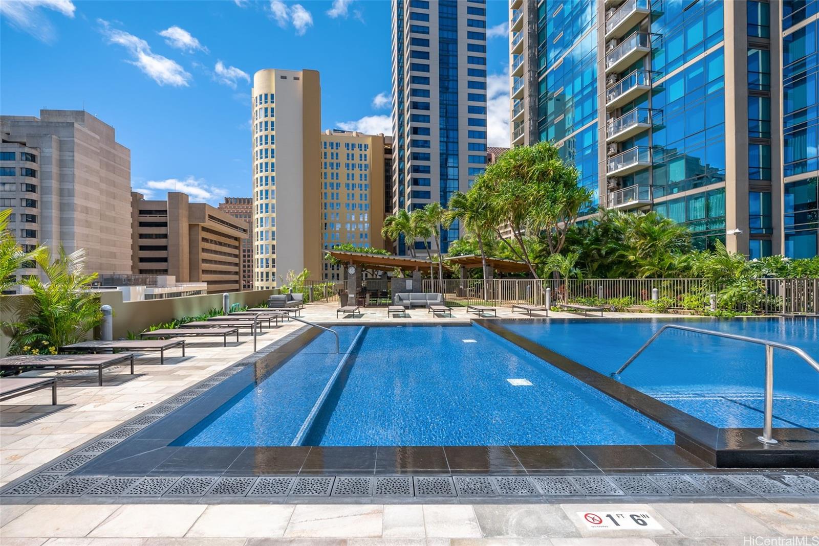 This spacious 1-bedroom penthouse at Capitol Place offers stunning views of Diamond Head, the ocean, city skyline and Punchbowl Mountain from every room. Floor-to-ceiling windows fill the home with natural light, while the gourmet kitchen features an island, wine fridge and modern finishes. Other highlights include split ACs, a walk-in closet, motorized window shades and a dedicated storage locker. Rarely lived in, with recent 2024 upgrades such as a new water heater, dishwasher, washer/dryer, carpet, and paint. Capitol Place is a well- managed building with 24-hr security, friendly staff, EV charging stations and resort-style amenities: fitness center, yoga room, movie theater, infinity and wading pools, whirlpool, BBQ cabanas, playground, dog park, and meeting/party room. Convenient Downtown Honolulu location near freeway ramps, dining, shopping, medical facilities and just minutes to Ala Moana Center and Salt Kakaako. A few photos have been virtually staged(enhanced).