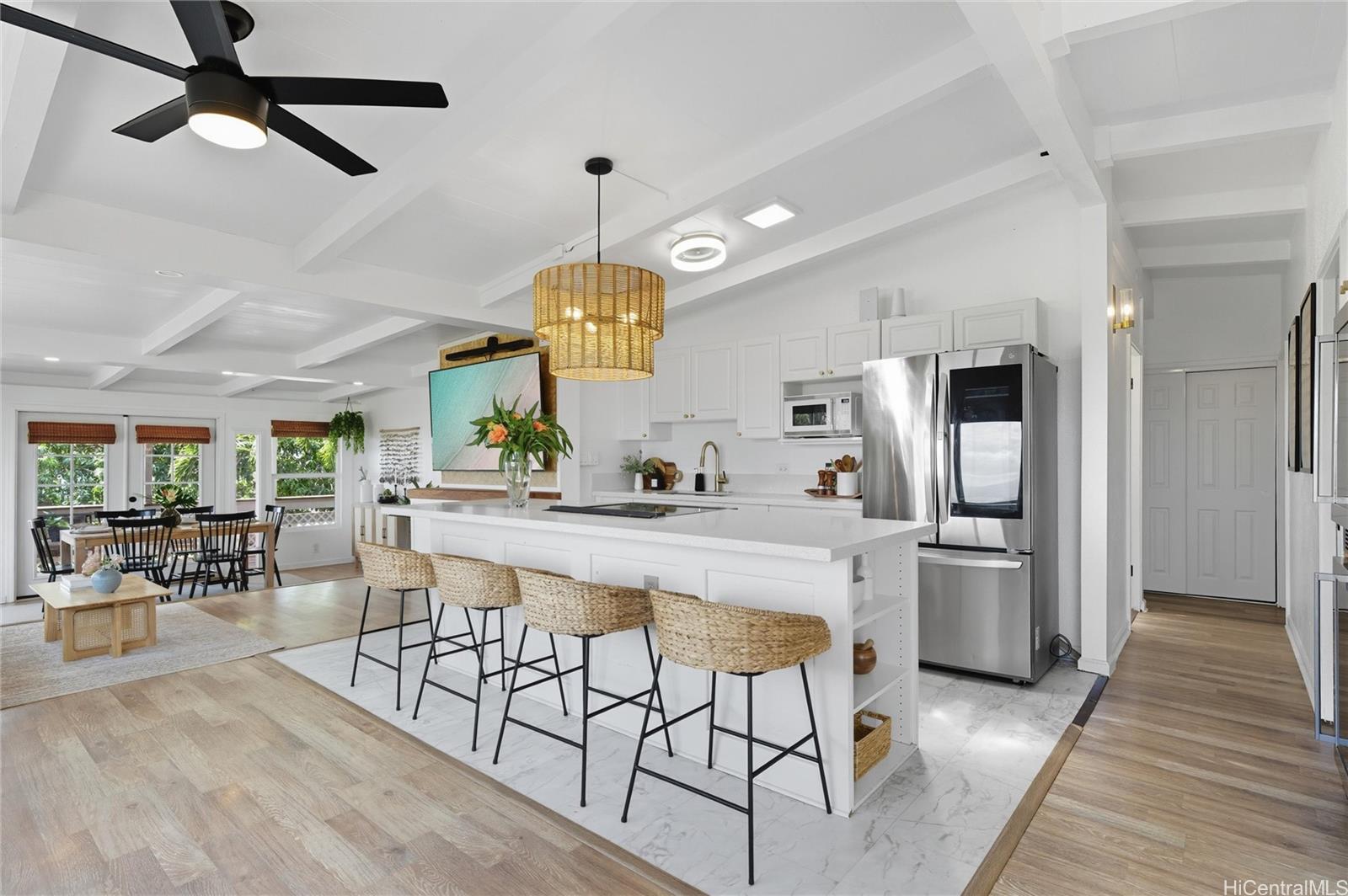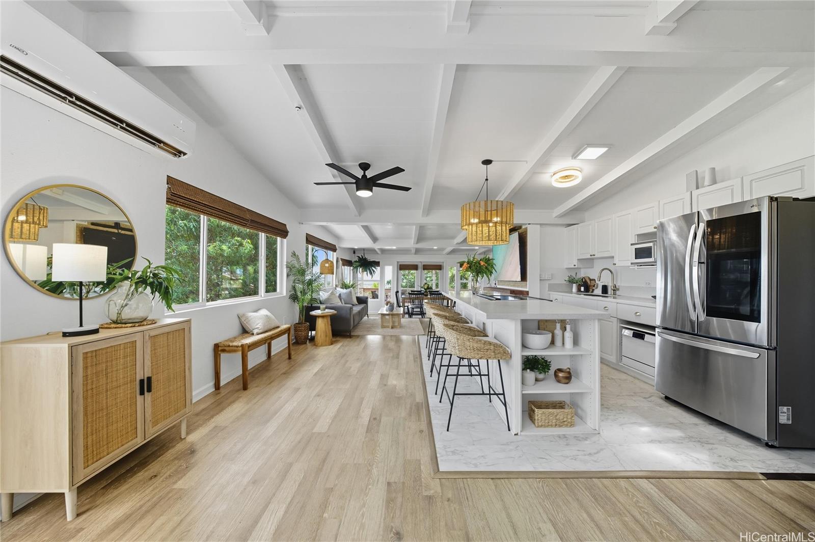 他に類を見ない、まさに唯一無二の4ベッドルーム物件!閑静なマカキロ地区にある、美しく手入れされたアカウラストリートへようこそ。ダイヤモンドヘッドとバーバーズポイントの素晴らしい景色に加え、爽やかな貿易風が一年中涼しく過ごせます。電気暖炉、新しいキッチン蛇口とキャビネット金具、新品の洗濯機と乾燥機(収納付き)、高級ビニールフローリング、ガレージ収納システムなど、細部にまでこだわった設備が充実しています。庭は新しい擁壁で整地され、快適な屋外スペースが生まれています。20枚のソーラーパネルと2つのテスラバッテリーを搭載し、平均電気代はわずか30ドル。ショッピングや公園にも近く、便利な立地です。コミュニティアメニティには遊び場やプールがあり、何より管理費が無料です!
