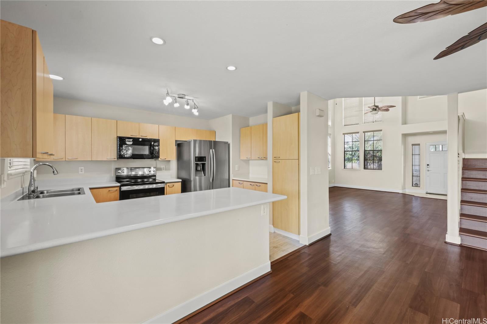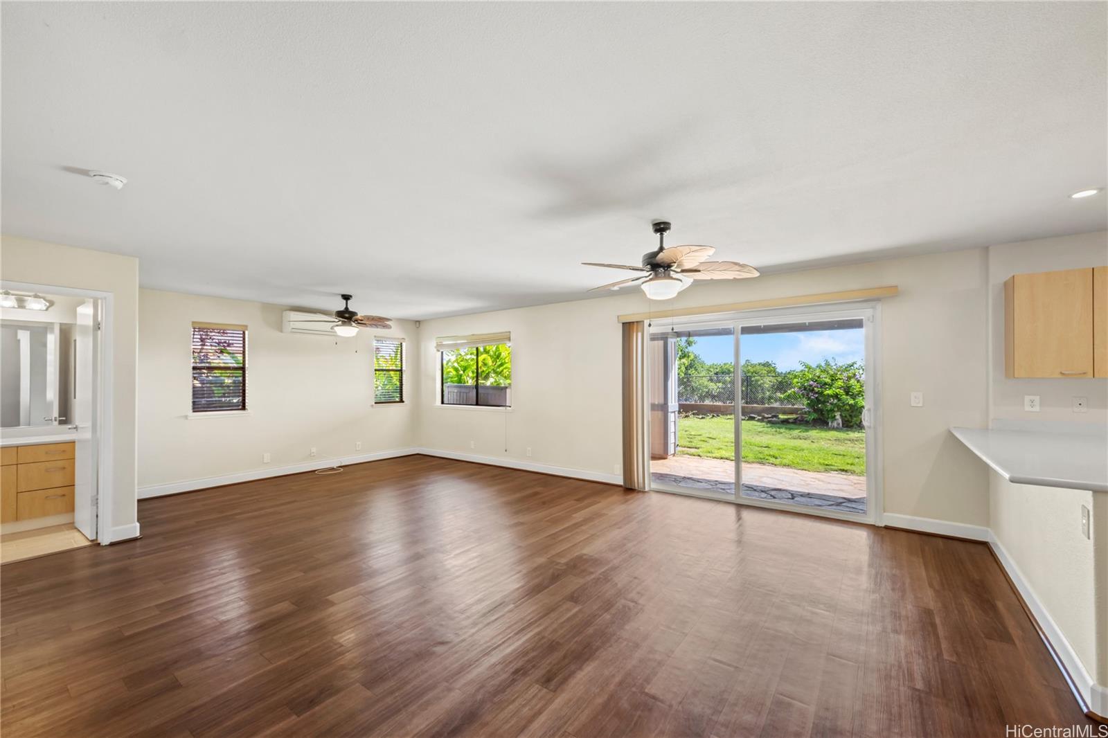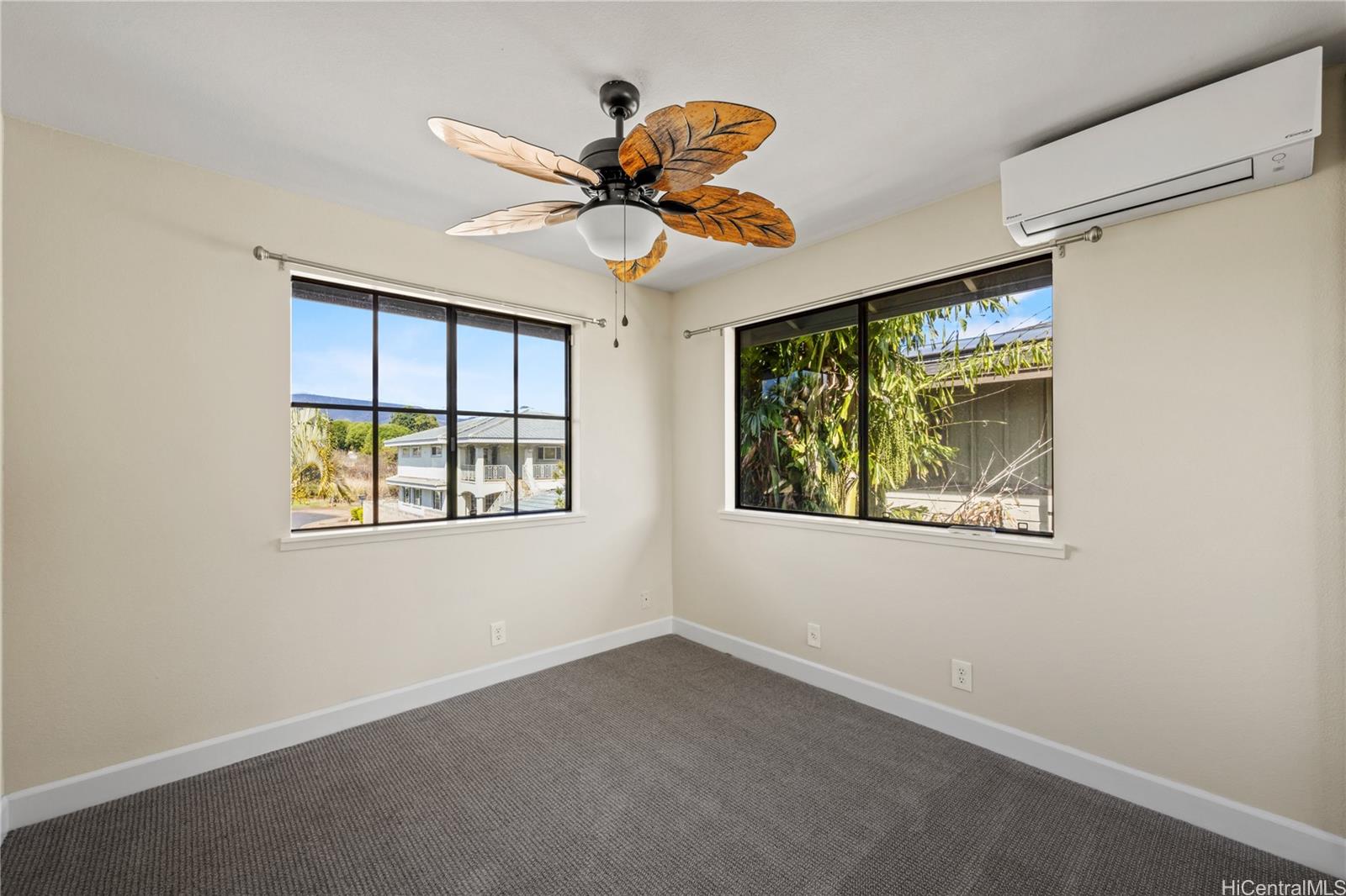 2.25% VA Assumable ($665,000) Seller to retain VA Benefits. Situated on a quiet cul-de-sac overlooking the 14th green of Royal Kunia Golf Course, this 3-bed, 3-bath home offers spectacular, panoramic views from Diamond Head to Pearl Harbor. Enjoy the scenery from both upper and lower lanais. Inside, find comfort and efficiency with split AC's and a money-saving Solar Electric system. The property includes a 2-vehicle garage and a lush, edible garden featuring mature mango, avocado, tangerine, chico, and lemon trees. Excellent outdoor living space with both upper and lower lanais, you have the perfect vantage point for savoring your morning coffee or entertaining guests against a stunning backdrop. Gaze out at the incredible, sweeping views of the Honolulu skyline, from the iconic silhouette of Diamond Head to the historic waters of Pearl Harbor.