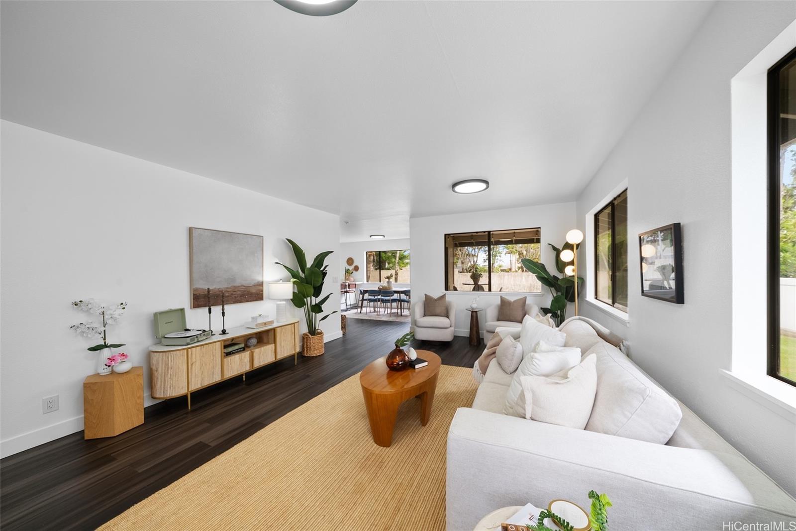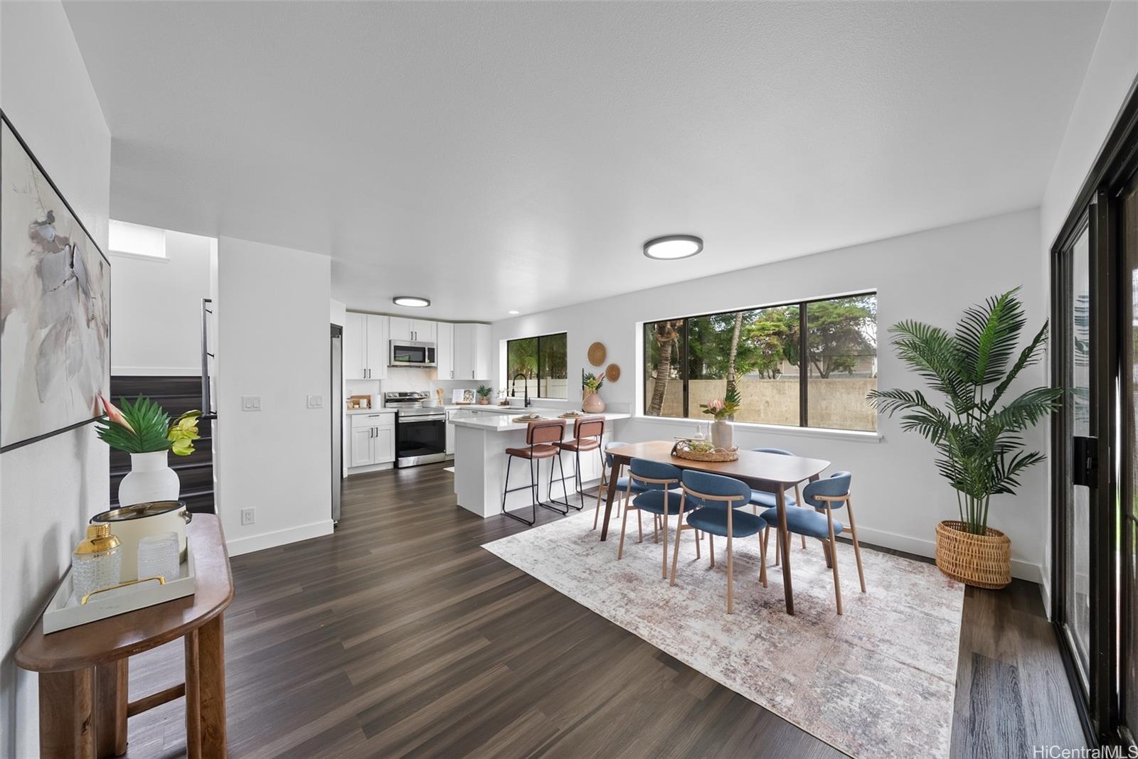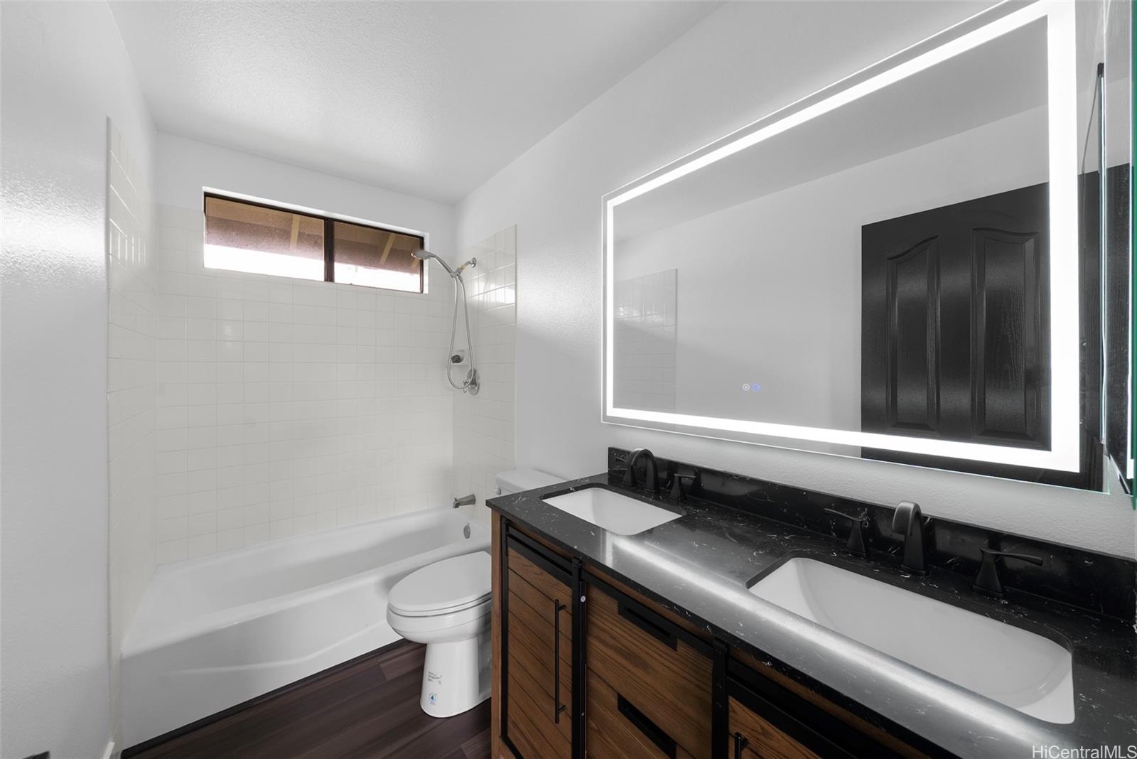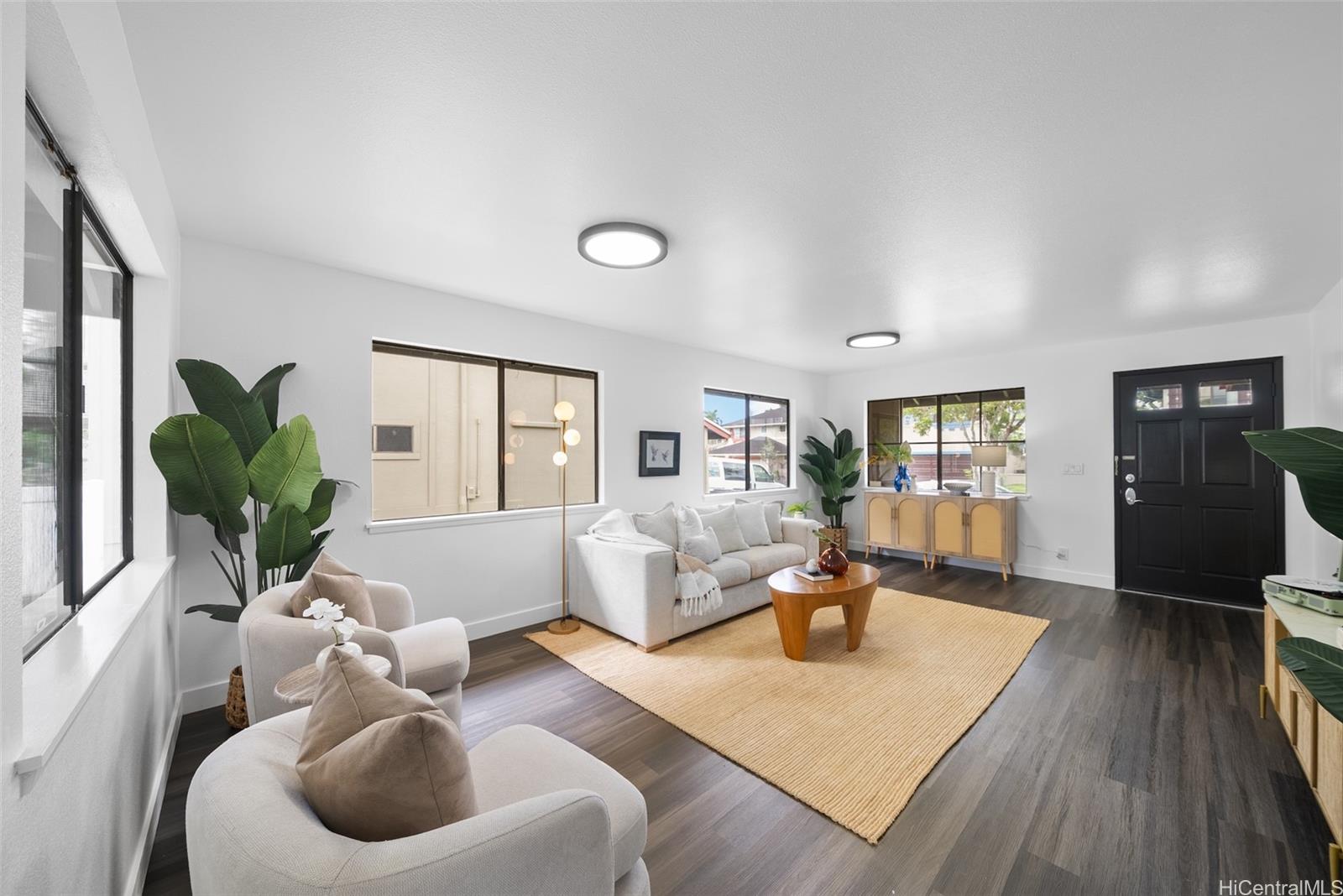Beautifully renovated home in desirable Mililani Mauka! This spacious 3-bedroom, 2.5-bath residence features a versatile open den on the second floor which is perfect for a home office or study area. Enjoy a bright and open floor plan with separate living and dining spaces, plus a large backyard ideal for BBQs and entertaining guests. The full renovation includes a brand-new kitchen with new cabinets, countertops, and stainless-steel appliances, new LVP flooring throughout, new roof, new interior and exterior paint, new split A/C in the primary bedroom, new toilets, and new vanities. Move-in ready and located on a quiet street with easy access to Recreation Center 7 and right next to the highly desired Mililani Ike Elementary School. Don’t miss this turn-key opportunity to own a stunning home in one of Central Oahu’s most sought-after neighborhoods!