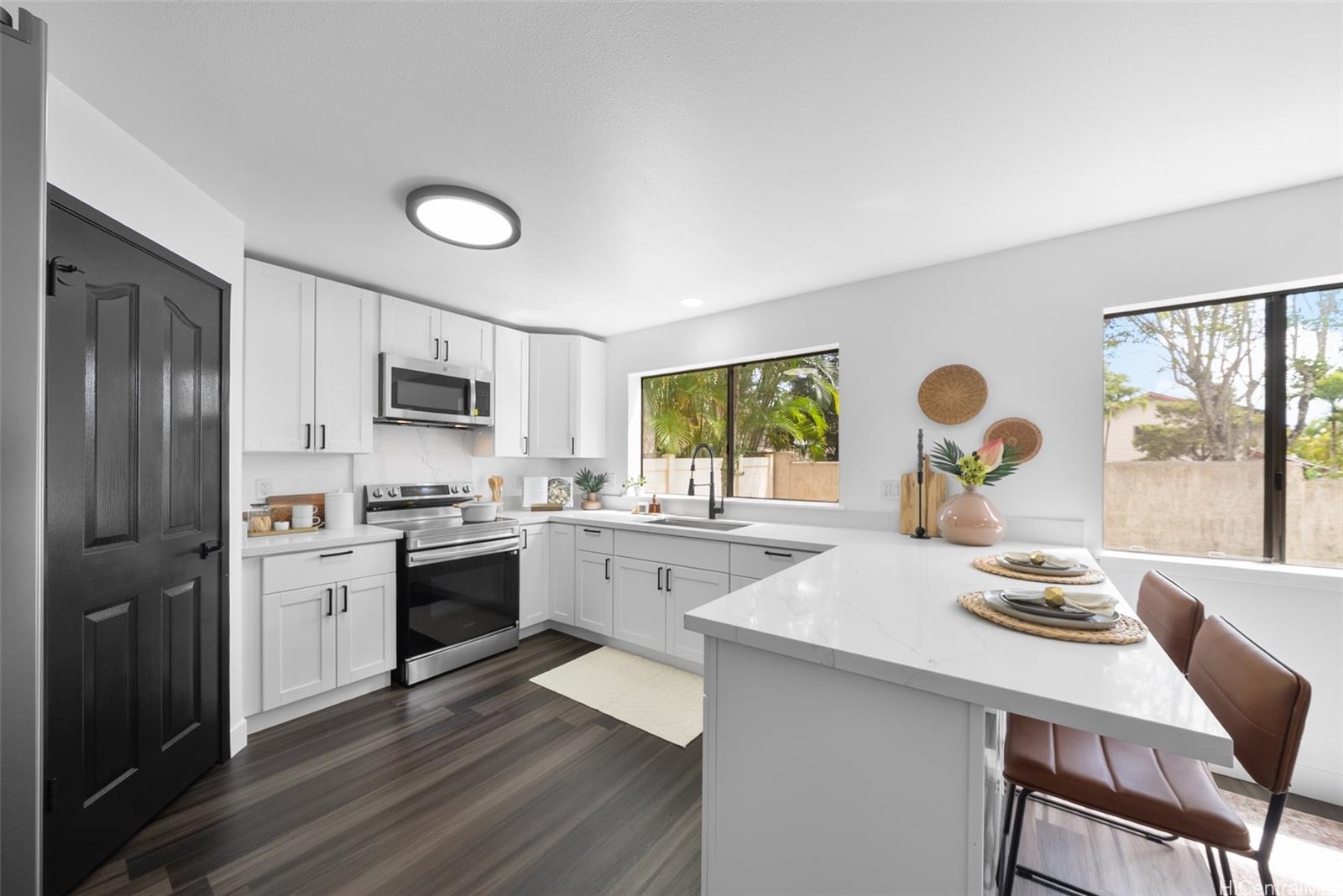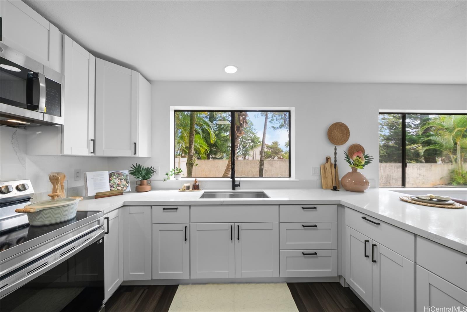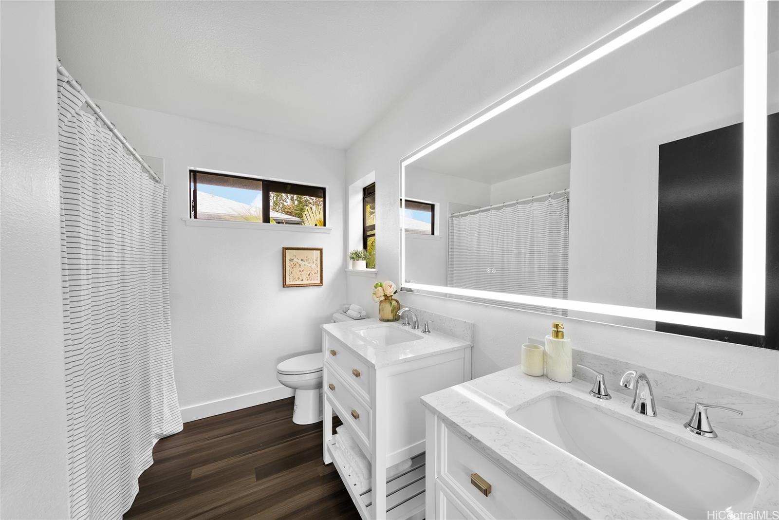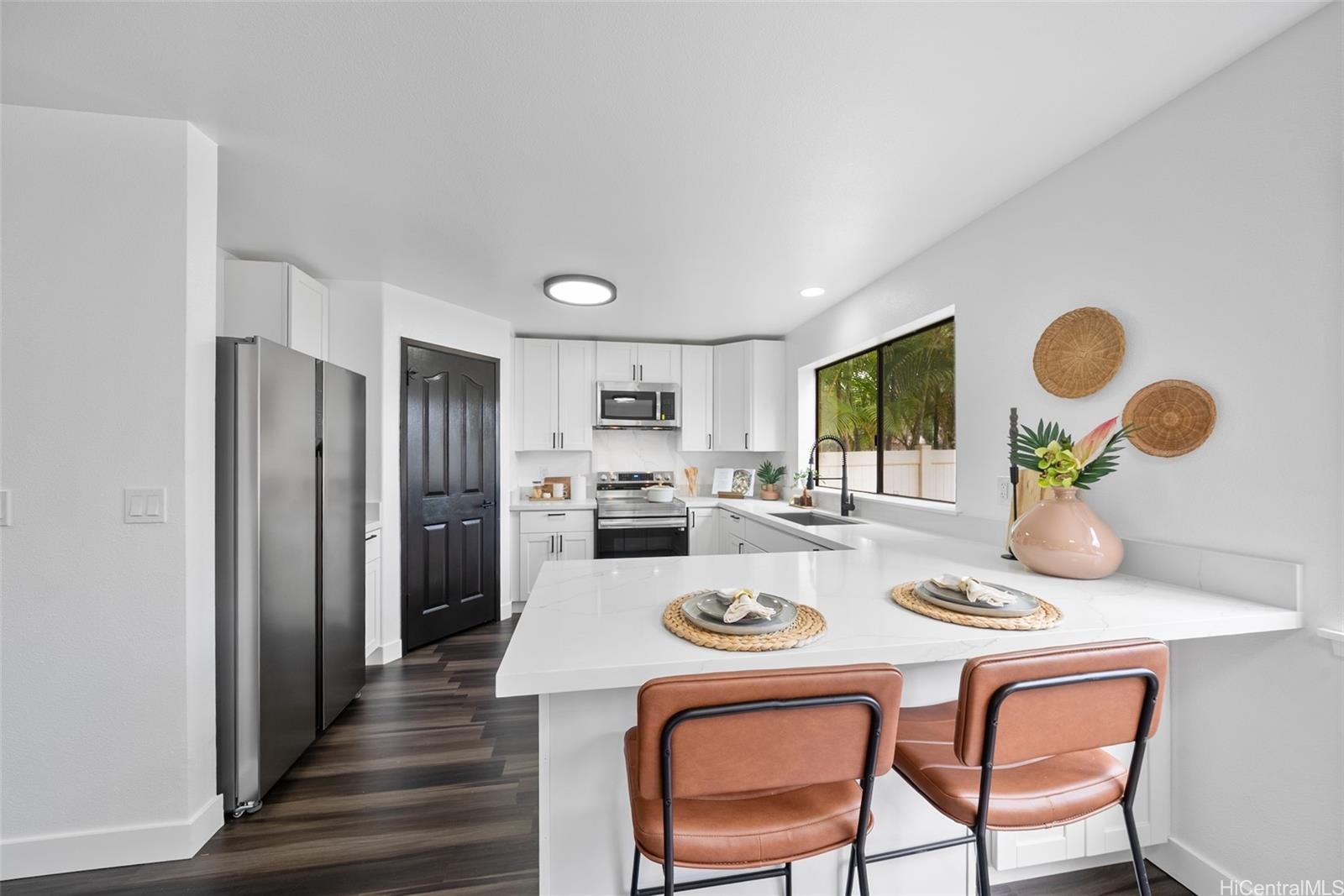 Beautifully renovated home in desirable Mililani Mauka! This spacious 3-bedroom, 2.5-bath residence features a versatile open den on the second floor which is perfect for a home office or study area. Enjoy a bright and open floor plan with separate living and dining spaces, plus a large backyard ideal for BBQs and entertaining guests. The full renovation includes a brand-new kitchen with new cabinets, countertops, and stainless-steel appliances, new LVP flooring throughout, new roof, new interior and exterior paint, new split A/C in the primary bedroom, new toilets, and new vanities. Move-in ready and located on a quiet street with easy access to Recreation Center 7 and right next to the highly desired Mililani Ike Elementary School. Don’t miss this turn-key opportunity to own a stunning home in one of Central Oahu’s most sought-after neighborhoods!