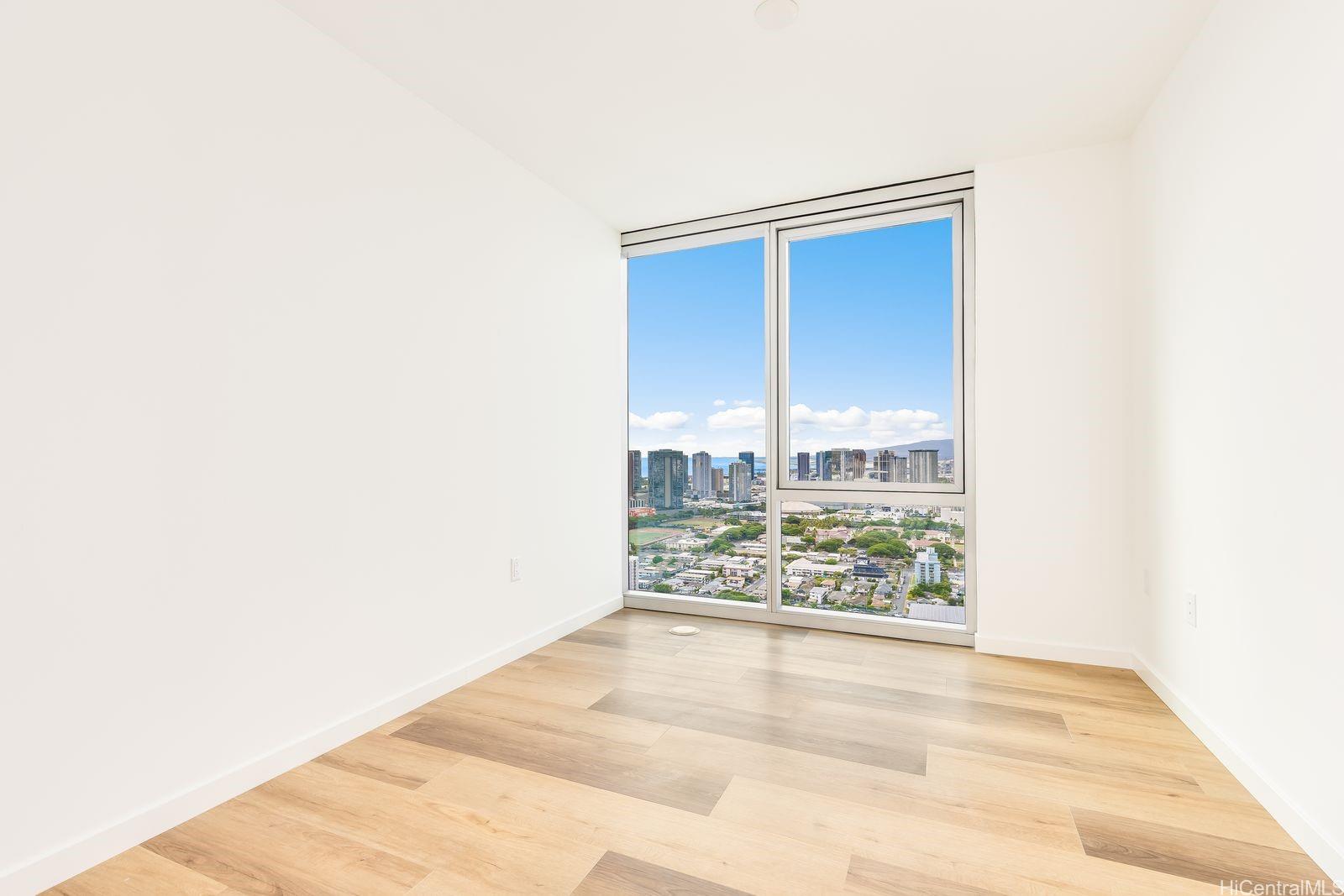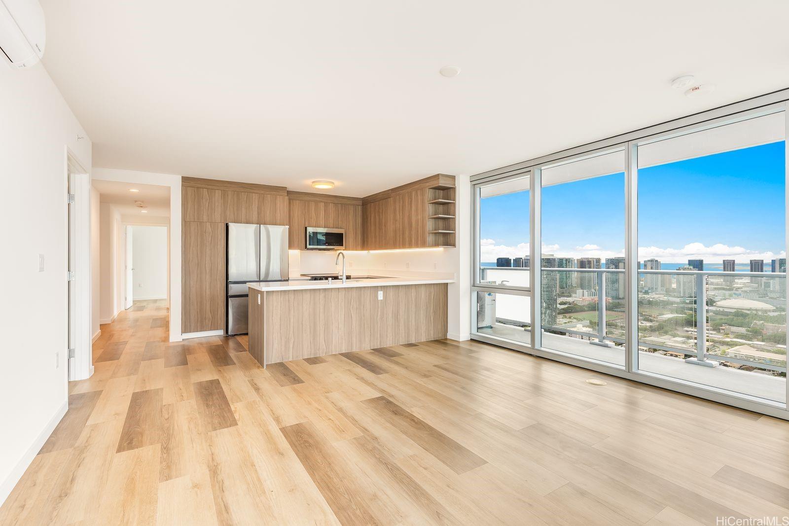 Most desired 3 bedroom 2 bath #4318 in the Liona Tower. Only 20 3 bedroom units available. Luxury living with a L-shaped lanai and floor to ceiling glass view windows offering a spectacular 180 plus degree view from the ocean to the Ewa plains, to the Koolau mountains. High quality quartz kitchen countertops designer fixtures. Unit is upgraded with hard wood flooring throughout.
