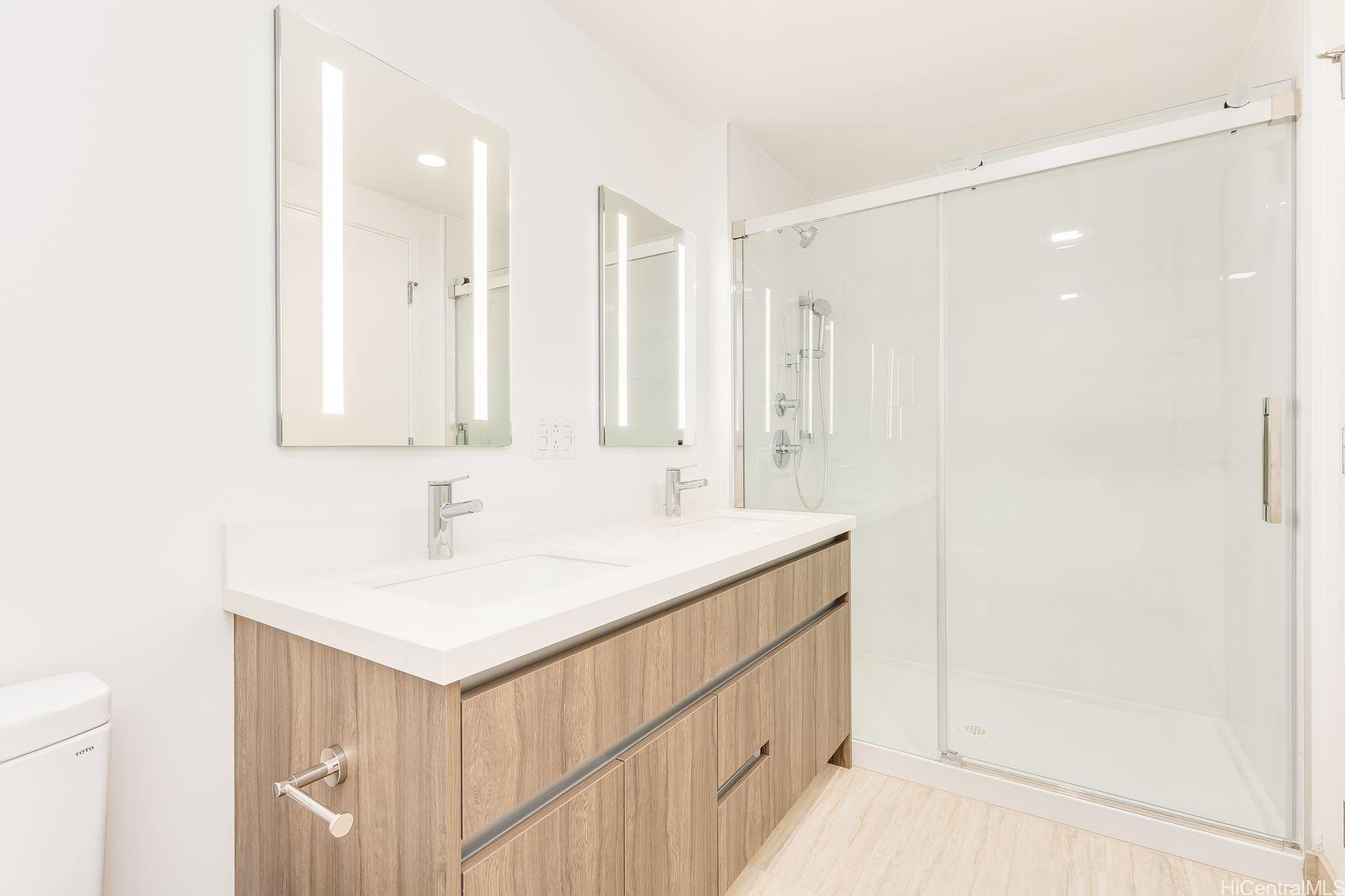 リオナタワーで最も人気の高い3ベッドルーム、2バスルームの物件番号4318。3ベッドルームの物件はわずか20戸。L字型のラナイと床から天井まで続くガラス窓を備えたラグジュアリーな空間からは、海からエヴァ平原、コオラウ山脈まで、180度以上の壮大な景色を一望できます。キッチンカウンターは高品質クォーツ製で、デザイナーズ家具も完備。ユニット全体にハードウッドフローリングを敷き詰め、グレードアップされています。アメニティには、24時間体制のセキュリティ、映画館、ヨガルーム、インフィニティプール、スパ、フィットネスセンター、パビリオン、バーベキュー施設などがあります。一部の写真はバーチャルリアリティ加工されています。入居率は推定70%です。