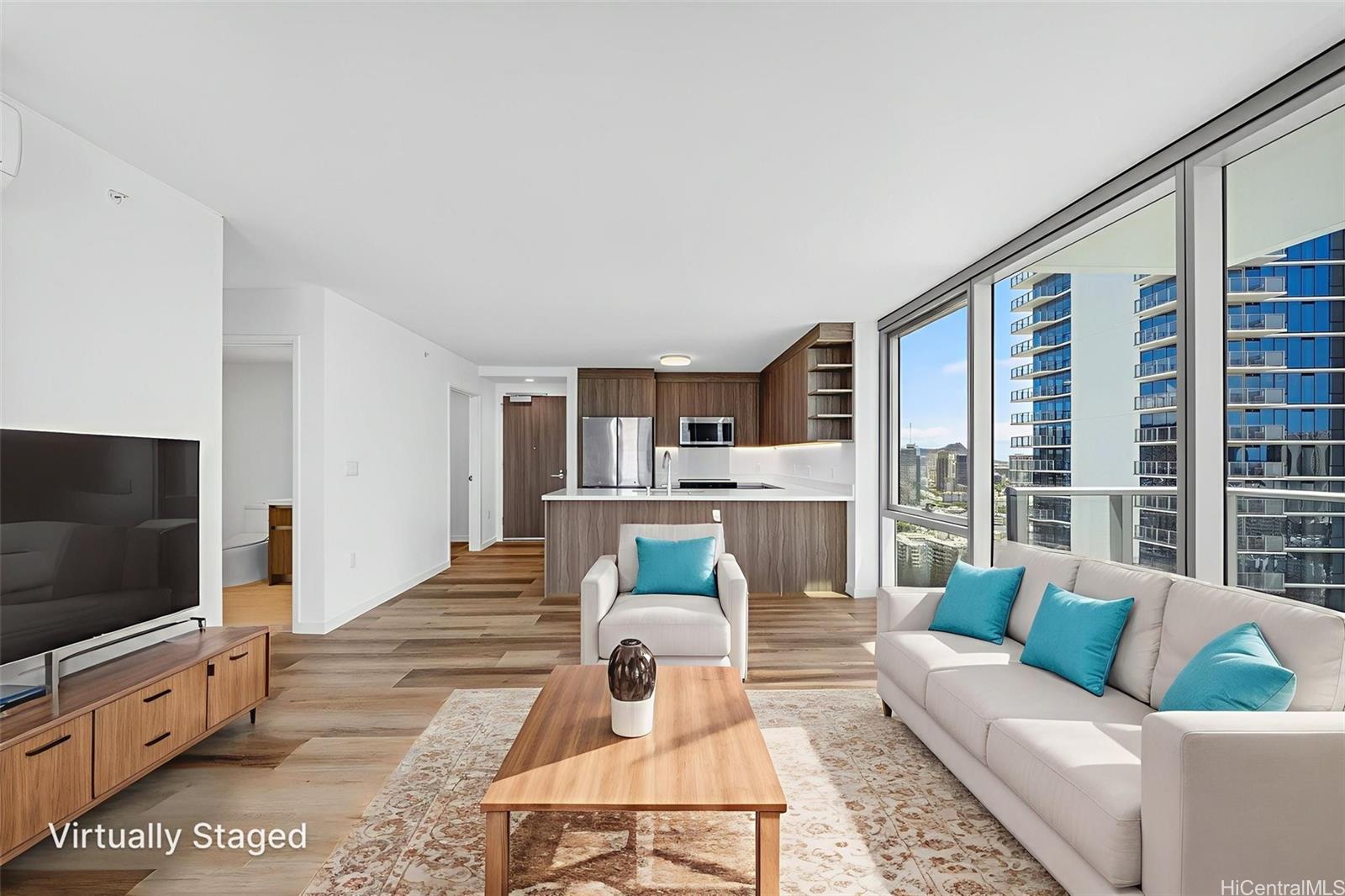 Welcome to The Park on Keeaumoku, Honolulu’s newest modern community near Ala Moana Center, world-class dining, and entertainment. This brand-new corner unit (2 bed / 2 bath / 2 parking) offers stunning ocean, city, and park views through floor-to-ceiling windows. Features include quartz countertops, luxury vinyl plank flooring, split A/C in every room, a walk-in closet, separate laundry room, and a private wraparound lanai. Enjoy resort-style amenities — infinity pool, spa, BBQ pavilions, theater, fitness & yoga studios, sauna, and stylish clubrooms. Experience modern island living at its finest in this spacious new home where luxury, convenience, and lifestyle meet.