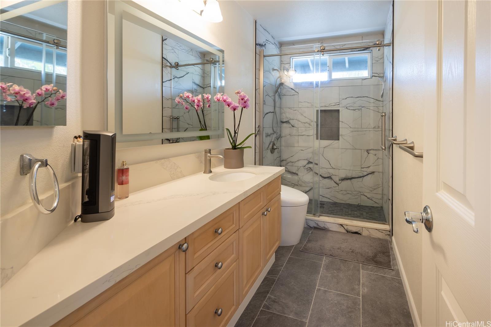 人気のカポレイ・ノールズ地区にある、すぐに入居可能な物件へようこそ!内外装ともに最近塗り替えられ、美しくリノベーションされたこの住宅は、快適さ、スタイリッシュさ、そして現代的な利便性を兼ね備えています。最先端のセキュリティシステム、インテリジェントな空調設備、そしてプレミアムWi-Fi対応家電を備えたスマートホームシステムで、快適な暮らしをお楽しみください。既存のリースによる11枚のソーラーパネルに加え、バッテリーバックアップ付きの自社所有ソーラーパネル34枚が設置されており、優れたエネルギー効率を実現しています。プランテーションシャッターと新しいフローリング、そして全バスルームに備え付けられたビデ付きTOTO製トイレが、エレガントな雰囲気を醸し出しています。エンターテイメントとリラクゼーションのために設計されたこの物件は、広々とした裏庭のラナイから、この地域では珍しい、輝く埋め込み式スイミングプールへと繋がっています。ダイヤモンドヘッドと街の海岸線のパノラマビューを堪能しながら、ゆったりとくつろいだり、パーティーを開いたりできます。学校、ショッピング、レクリエーション施設へのアクセスも抜群です。思い切って購入して、リラックスして、夢の島暮らしを始めましょう!