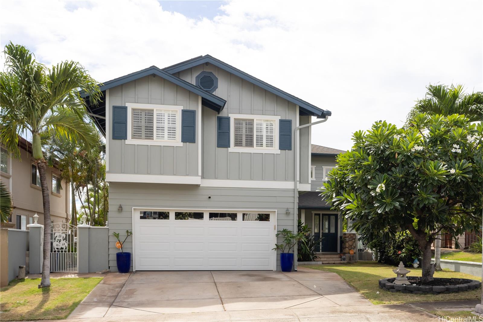 Welcome to this move-in ready home in the highly desirable Kapolei Knolls community! Recently refreshed inside and out with new paint, this beautifully updated residence blends comfort, style and modern convenience. Enjoy effortless living with an fully integrated smart home system featuring a state-of-the art security setup, intelligent climate control and premium WI-FI-enabled appliances. The home includes 34 owned solar panels that includes a battery backup in addition to the 11 existing leased solar panels-offering impressive energy efficiency. Plantation shutters and new flooring, Toto toilets in all bathrooms with a built-in-bidet adds a touch of elegance throughout. Designed for entertaining and relaxation, the property features an extended backyard lanai that opens to a sparkling in-ground swimming pool- a rare find in the neighborhood. Take in panoramic views of Diamond Head and the city coastline as you unwind or host gatherings. Conveniently located to schools, shopping and recreation. Take the plunge, relax and start living your island dream!