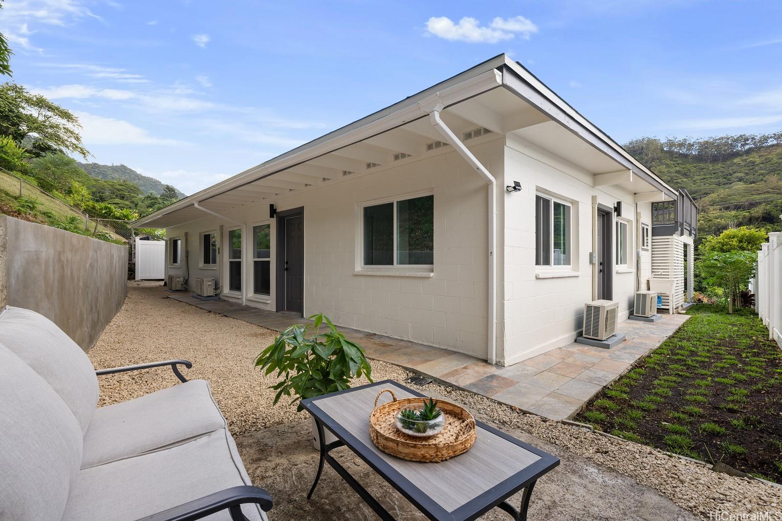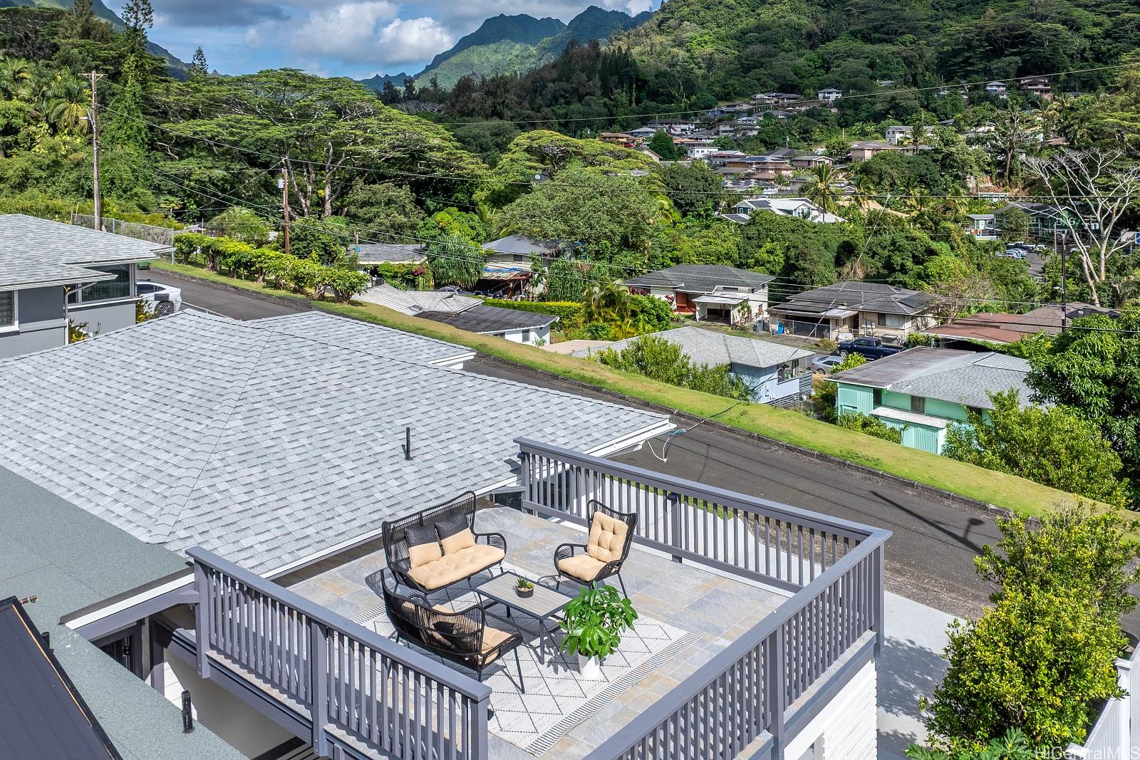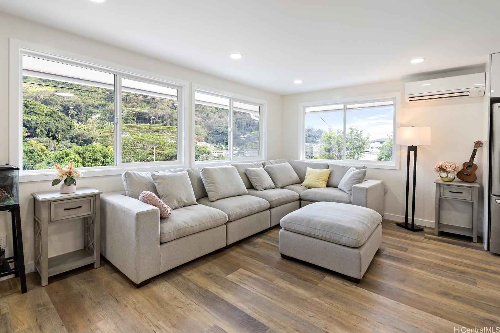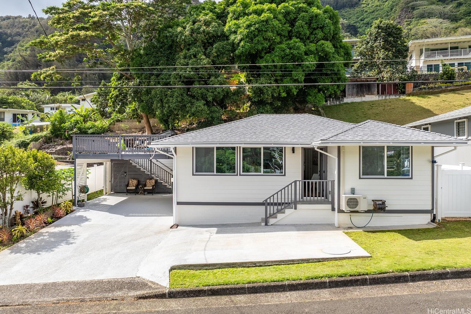Discover this beautifully renovated 7-bedroom, 4-bath luxury home tucked away in the peaceful heart of Kalihi Valley. This rare property blends modern comfort, island charm, and multi-family versatility. Enjoy two spacious living rooms and two fully equipped kitchens with brand-new stainless steel appliances, stylish laminate flooring, and a chef’s dream U-shaped island. Each bedroom has its own split A/C for year-round comfort. Meticulously updated by a licensed contractor with proper permits, this home includes new electrical wiring and plumbing. Designed for flexibility, it offers three separate entrances—ideal for multi-family living or rental opportunities. Energy-efficient solar hot water heating adds sustainability and lowers costs. Relax or entertain on the rooftop terrace with breathtaking mountain views—perfect for yoga, barbecues, or stargazing. Outside, a tropical garden with lush greenery, vibrant flowers, two mature mango trees, and an automatic irrigation system creates your island retreat. Additional highlights include four parking stalls, ample street parking, and a quiet cul-de-sac minutes from schools, shopping, and freeway access.