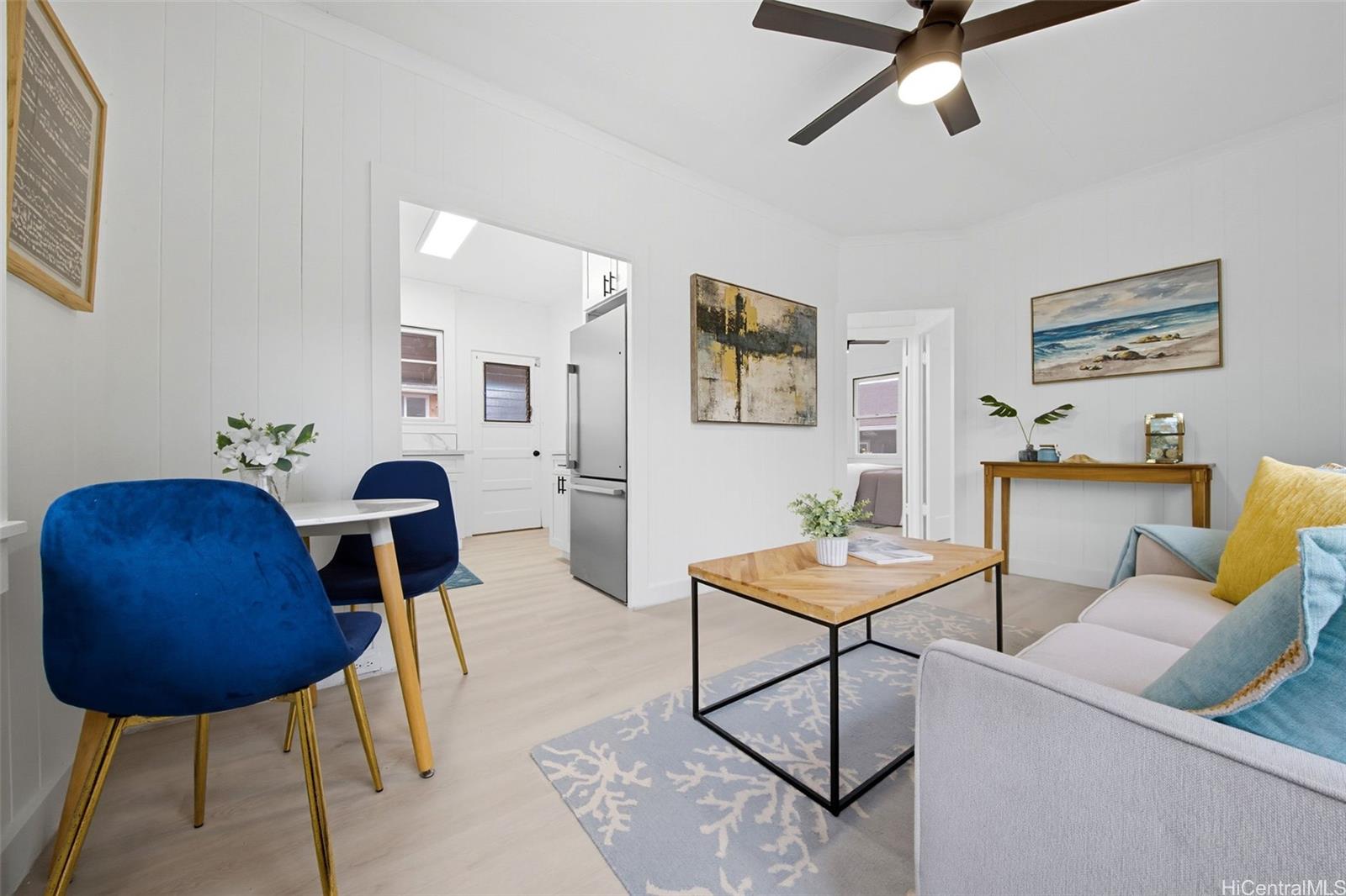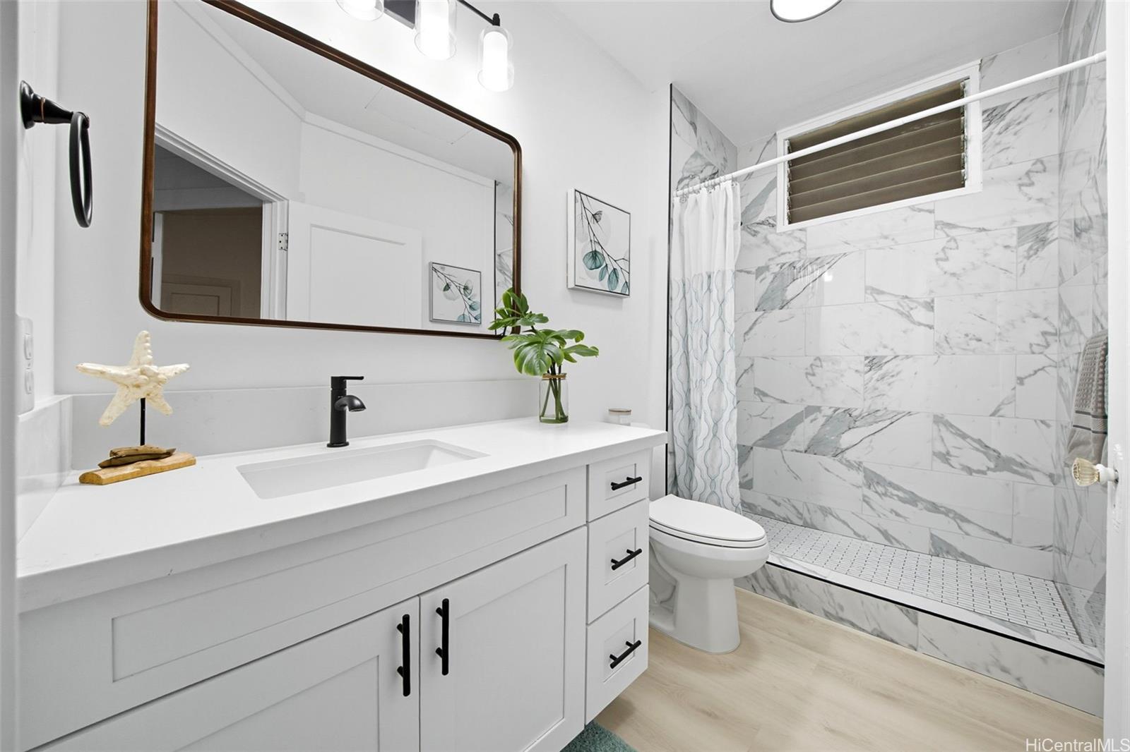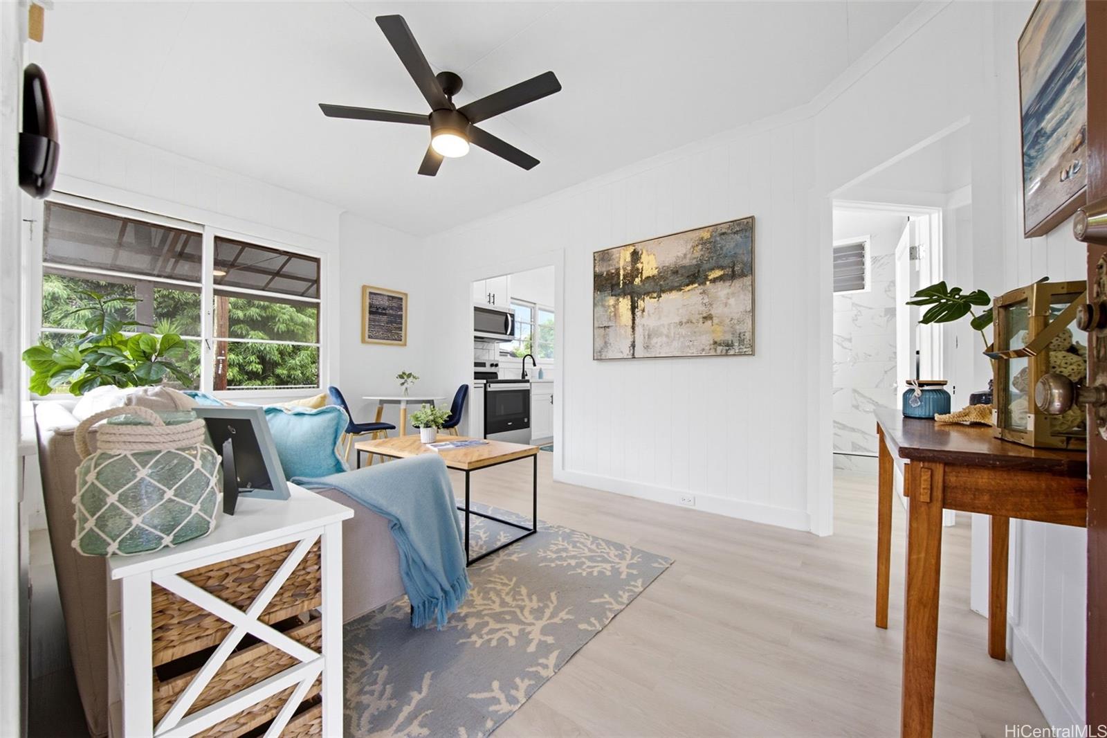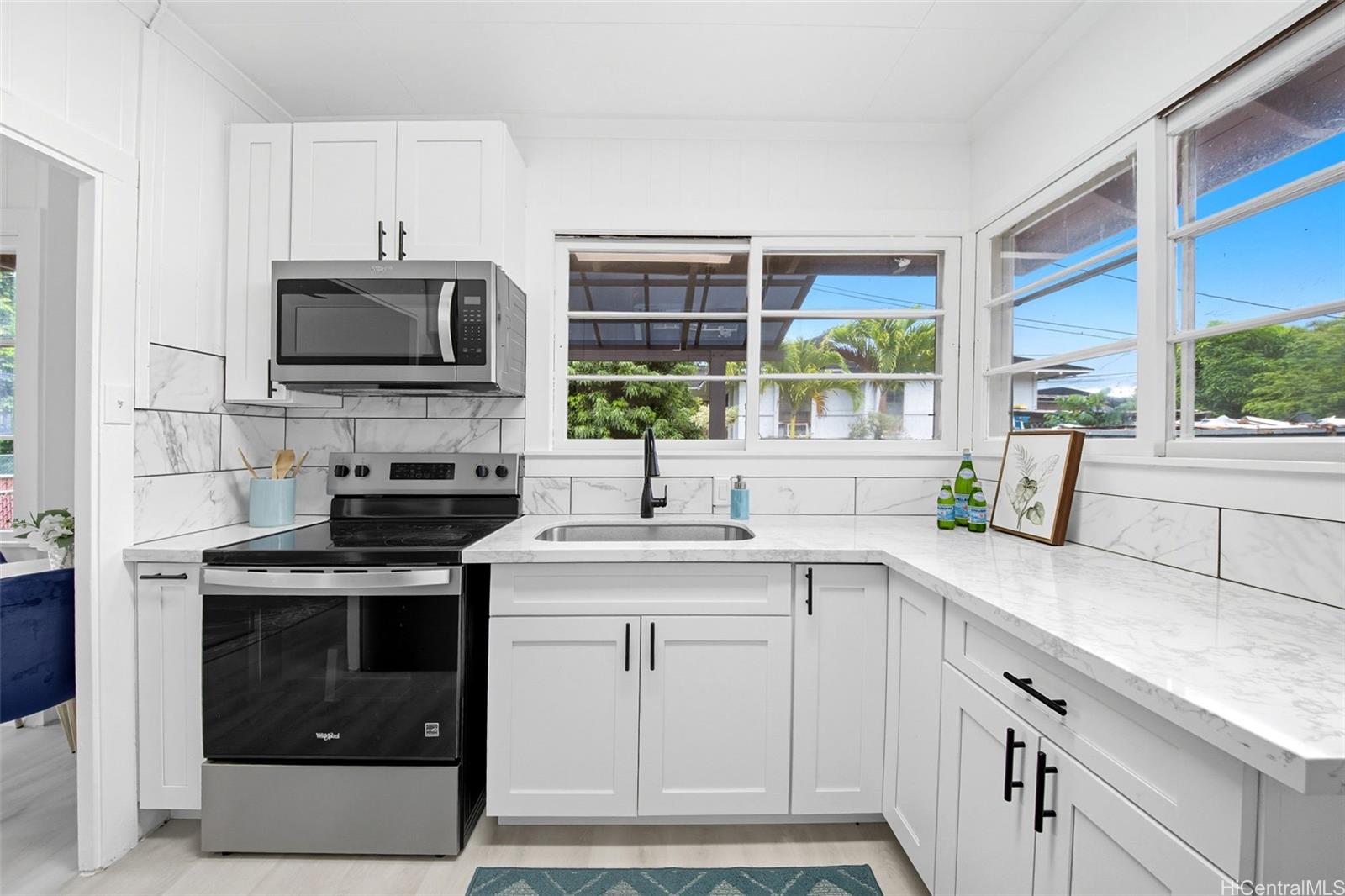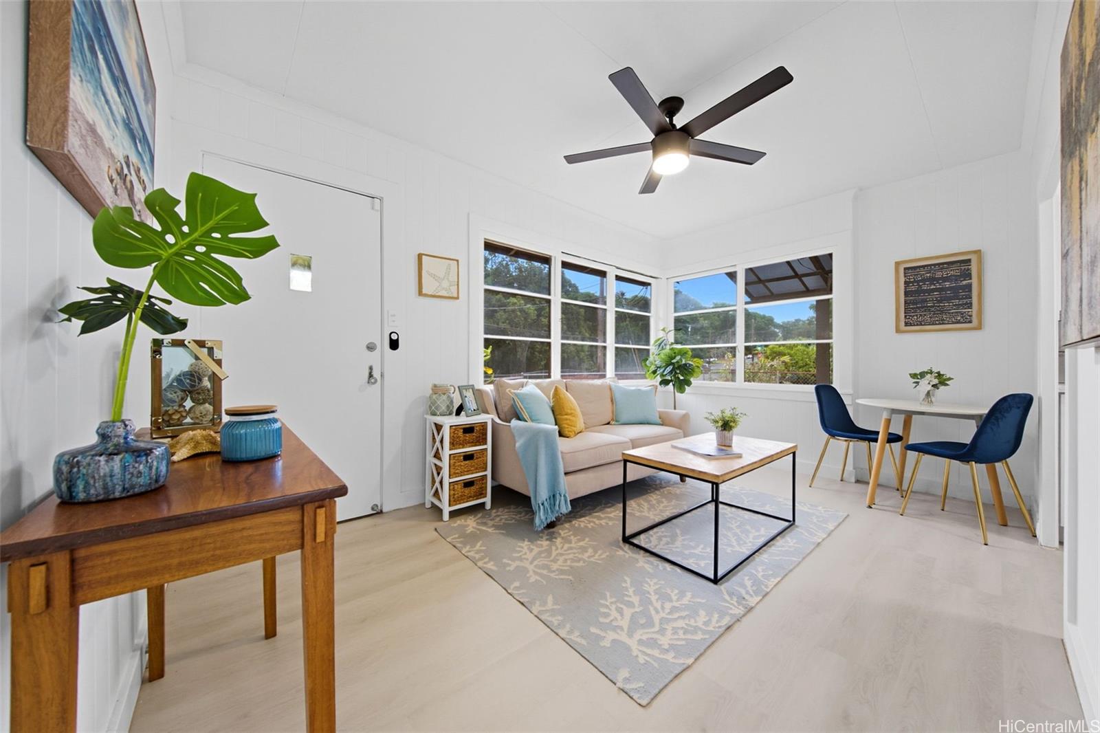 Beautifully upgraded SFH in peaceful, tranquil Wahiawa! This cozy 2 bedroom property is the perfect blend of contemporary finishes and classic home comforts, conveniently located just off California Ave, tucked behind Wahiawa District Park. Tastefully updated in 2025, you'll be greeted with bright shades of cream and white in the flexible open living space, complete with new luxury vinyl plank flooring, and fresh paint! Enter the kitchen where large quartz countertops and new stainless steel kitchen appliances await a home chef to bring them to life. You'll love the covered patio - a flexible outdoor space that can be used for everything from barbecuing with the family to hopscotch with the neighborhood keiki. Just a few minutes drive from Wahiawa Botanical Garden, Wahiawa Queens Medical, and Leilehua High School, this is a diamond of a find, ready for a new owner to call home!