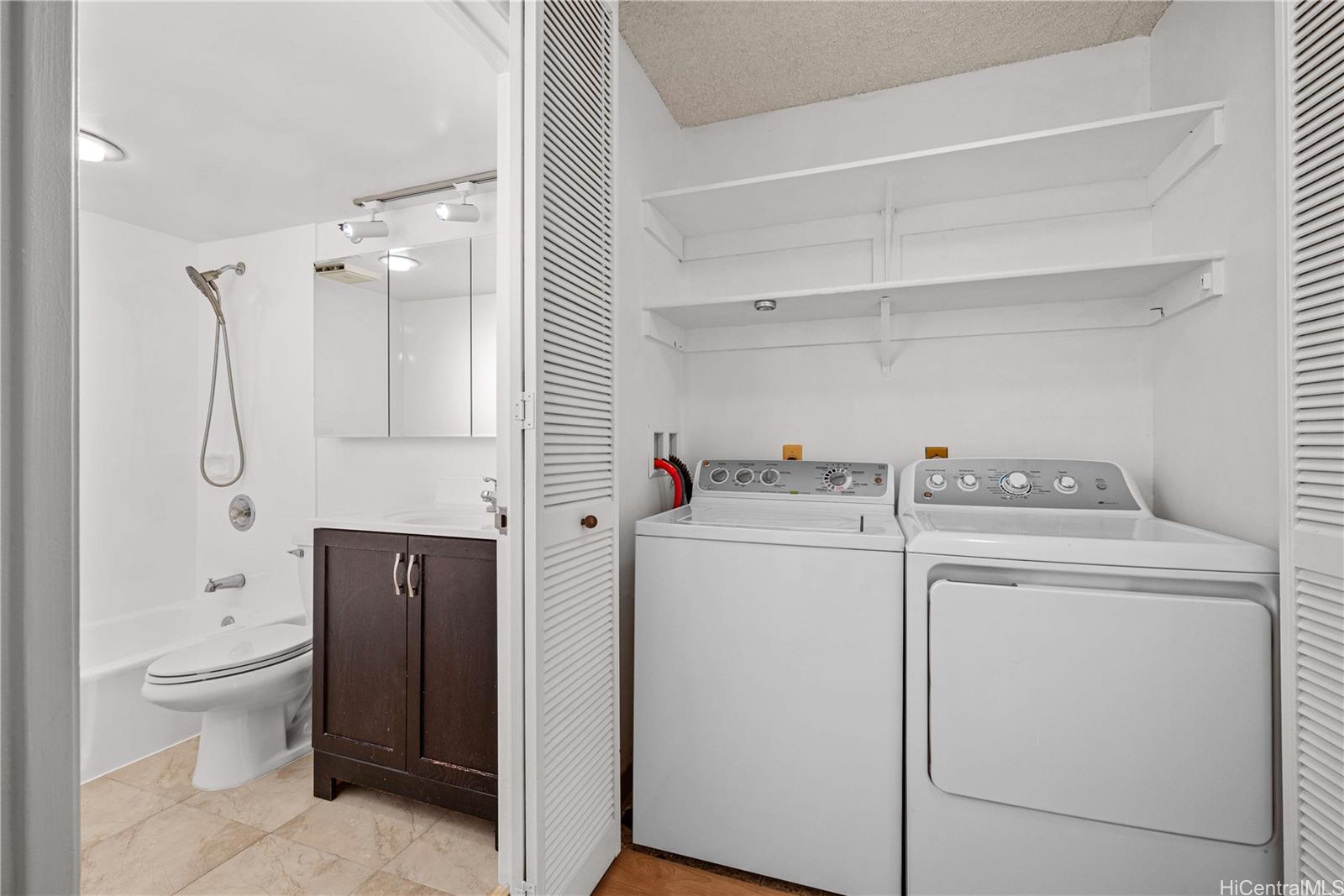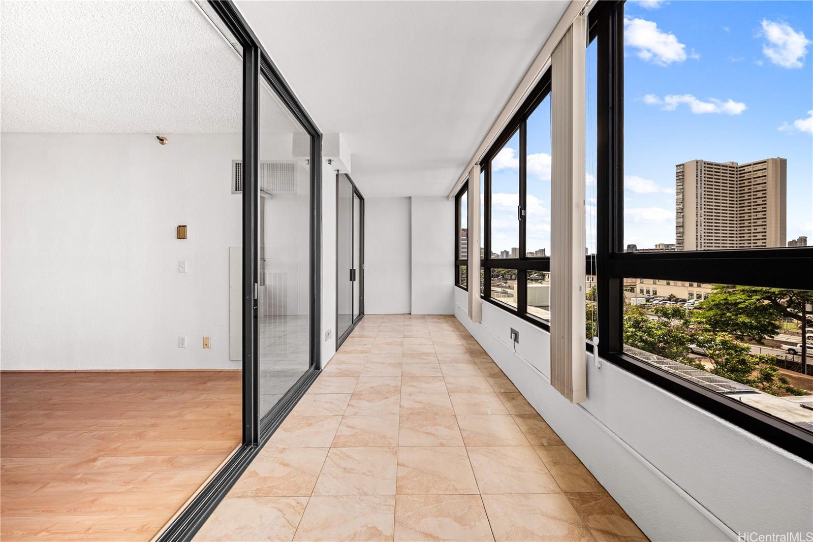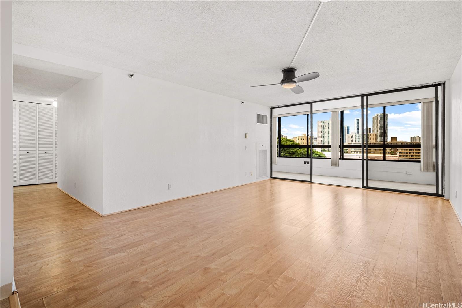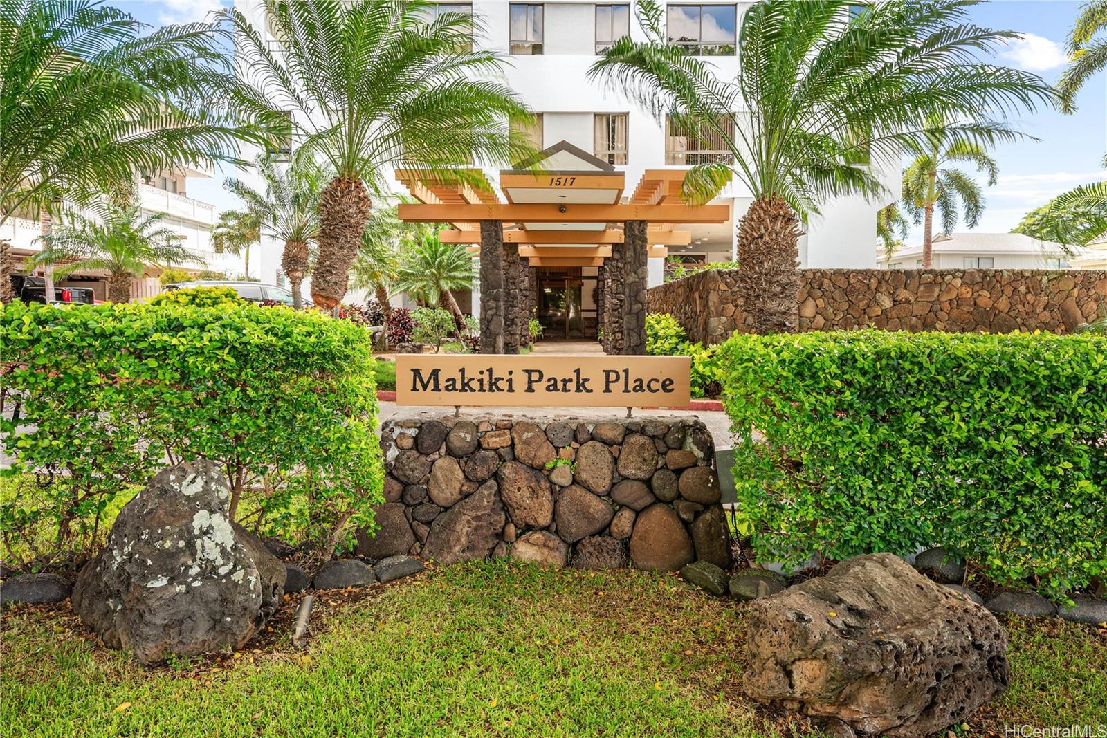 Welcome to Makiki Park Place, where convenience meets comfort. This spacious 1-bedroom 1-bath home offers an impressive 980 sq. ft. of interior living space and comes with 2 assigned parking stalls plus storage. The open floor plan is perfect for relaxation and entertaining, with an enclosed lanai that offers bonus space for living, dining, working out, or working from home. With room for a King and more, the generously sized bedroom is a dream. The bathroom is squeaky clean and well maintained. Practical features include a side-by-side washer and dryer, ceiling fans, central a/c to ensure year-round comfort, and storage galore. Maintenance fees are all inclusive, covering water, sewer, hot water, electricity, internet, basic cable, and central a/c. Makiki Park Place is a secured, pet-friendly (verify) building with an on-site resident manager, secured entry, and a secured parking garage. Residents enjoy a sparkling pool, BBQ area, and recreation spaces to relax with a book or entertain friends and family. Come discover this rare gem in Makiki, centrally located near Punahou, Hospitals, Downtown Honolulu, Ala Moana, the University of Hawaii, freeway access, and more!