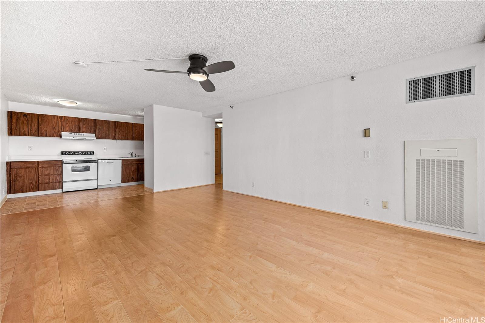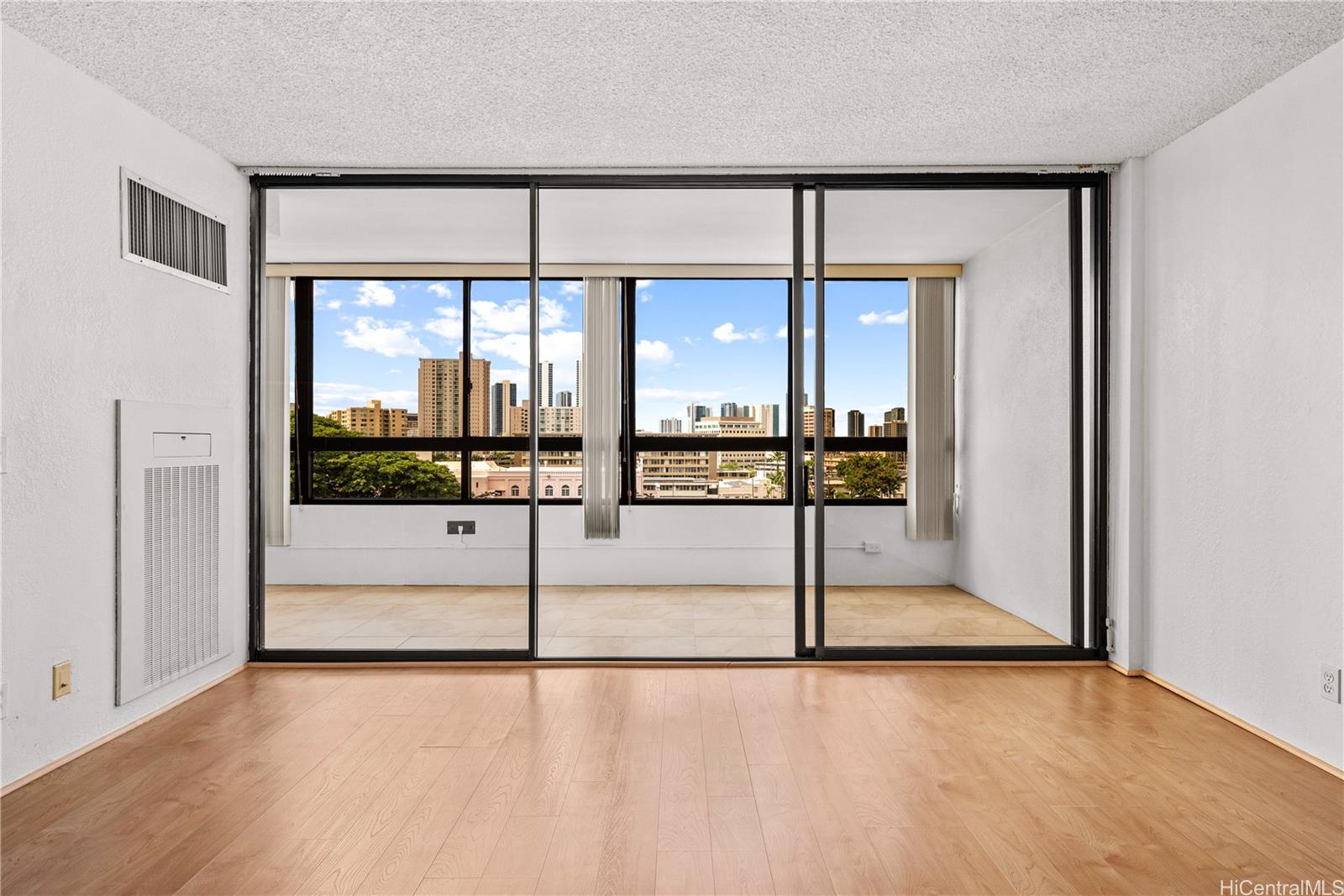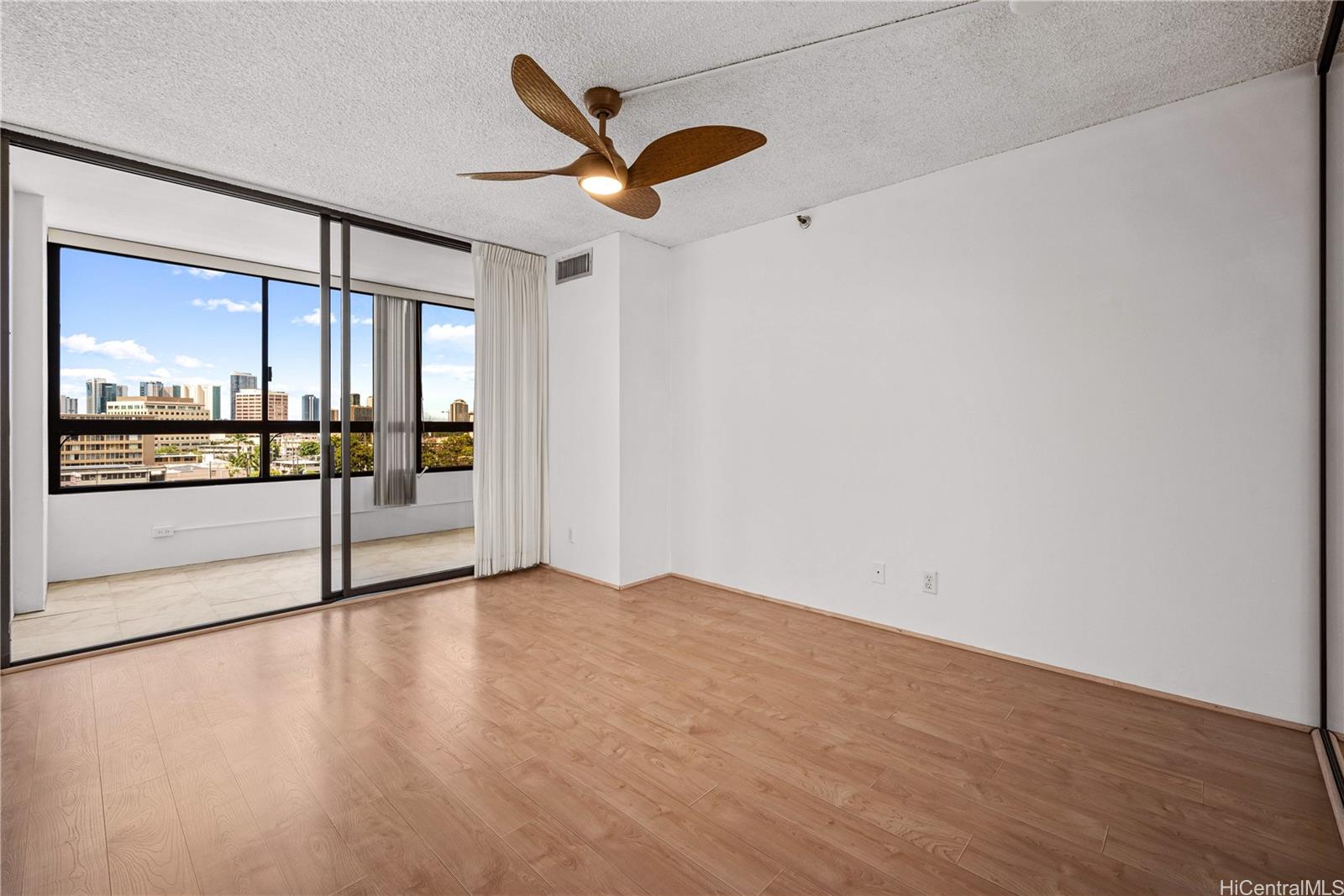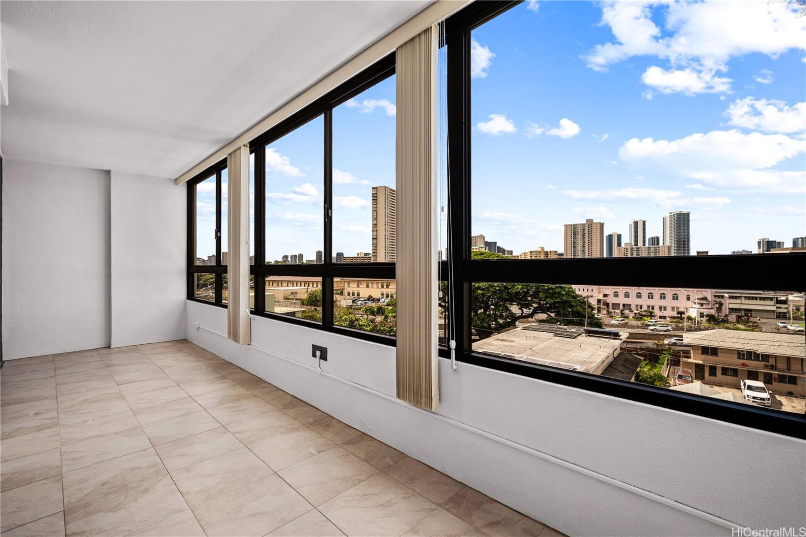 Welcome to Makiki Park Place, where convenience meets comfort. This spacious 1-bedroom 1-bath home offers an impressive 980 sq. ft. of interior living space and comes with 2 assigned parking stalls plus storage. The open floor plan is perfect for relaxation and entertaining, with an enclosed lanai that offers bonus space for living, dining, working out, or working from home. With room for a King and more, the generously sized bedroom is a dream. The bathroom is squeaky clean and well maintained. Practical features include a side-by-side washer and dryer, ceiling fans, central a/c to ensure year-round comfort, and storage galore. Maintenance fees are all inclusive, covering water, sewer, hot water, electricity, internet, basic cable, and central a/c. Makiki Park Place is a secured, pet-friendly (verify) building with an on-site resident manager, secured entry, and a secured parking garage. Residents enjoy a sparkling pool, BBQ area, and recreation spaces to relax with a book or entertain friends and family. Come discover this rare gem in Makiki, centrally located near Punahou, Hospitals, Downtown Honolulu, Ala Moana, the University of Hawaii, freeway access, and more!