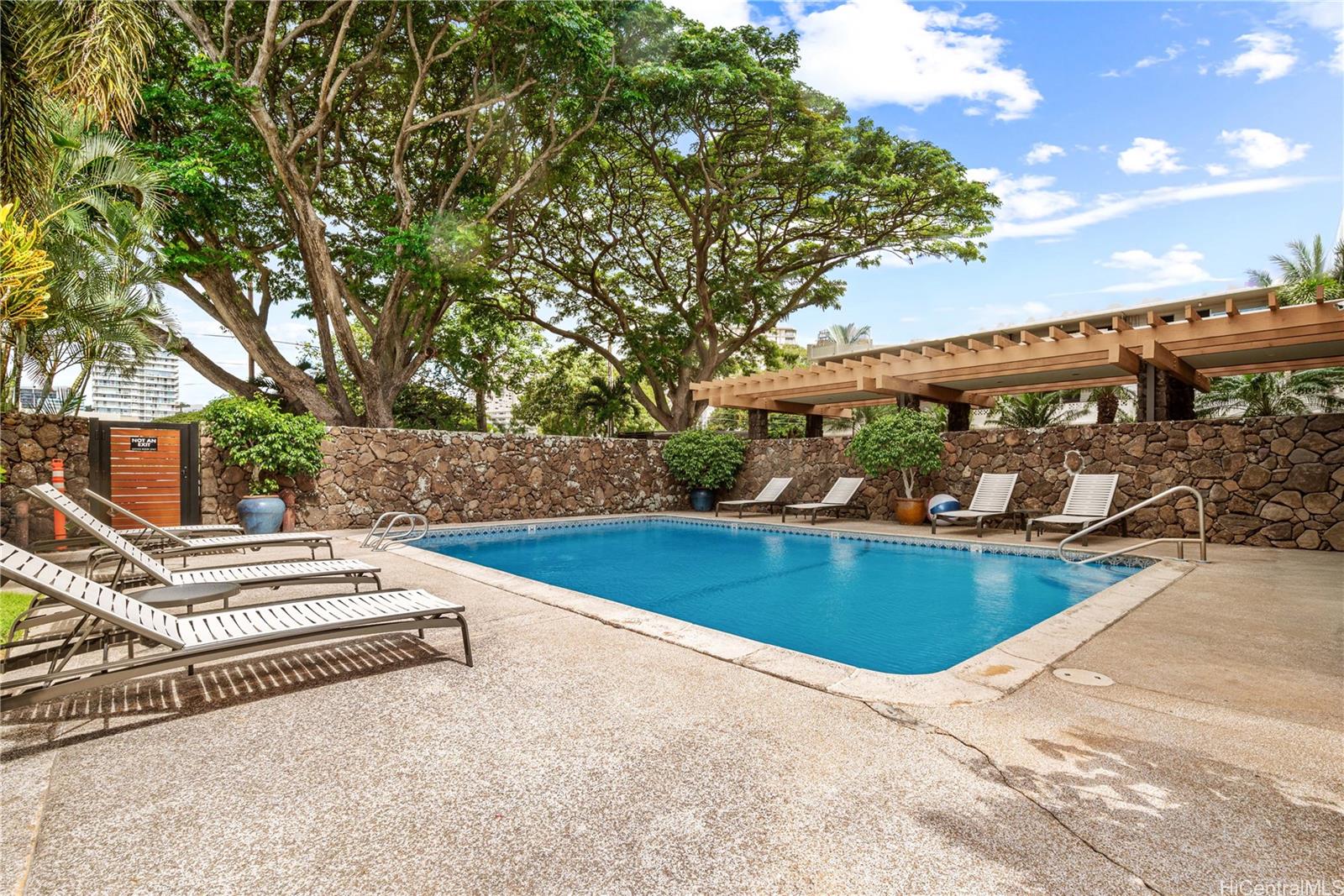 利便性と快適さが融合したマキキ・パーク・プレイスへようこそ。広々とした1ベッドルーム、1バスルームの住宅は、980平方フィート(約98平方メートル)の広々とした居住空間を誇り、専用駐車スペース2台分と収納スペースも完備しています。開放的な間取りは、くつろぎやエンターテイメントに最適で、囲まれたベランダは、リビング、ダイニング、ワークアウト、在宅勤務など、様々な用途にお使いいただけます。キングサイズベッドも置ける広々としたベッドルームは、まさに夢のような空間です。バスルームは清潔で、手入れが行き届いています。実用的な設備として、洗濯機と乾燥機、シーリングファン、一年中快適にお過ごしいただけるセントラルエアコン、そして豊富な収納スペースを備えています。水道、下水道、給湯、電気、インターネット、ケーブルテレビ、セントラルエアコンなど、管理費はすべて含まれています。マキキ・パーク・プレイスは、セキュリティ完備でペットも歓迎(要確認)の建物で、常駐管理人、セキュリティゲート、セキュリティ駐車場を備えています。居住者は、輝くプール、バーベキューエリア、そして読書を楽しみながらリラックスしたり、友人や家族と過ごしたりできるレクリエーションスペースをお楽しみいただけます。プナホウ、病院、ホノルル・ダウンタウン、アラモアナ、ハワイ大学、高速道路へのアクセスなど、便利な立地を誇るマキキのこの希少な物件にぜひお越しください。