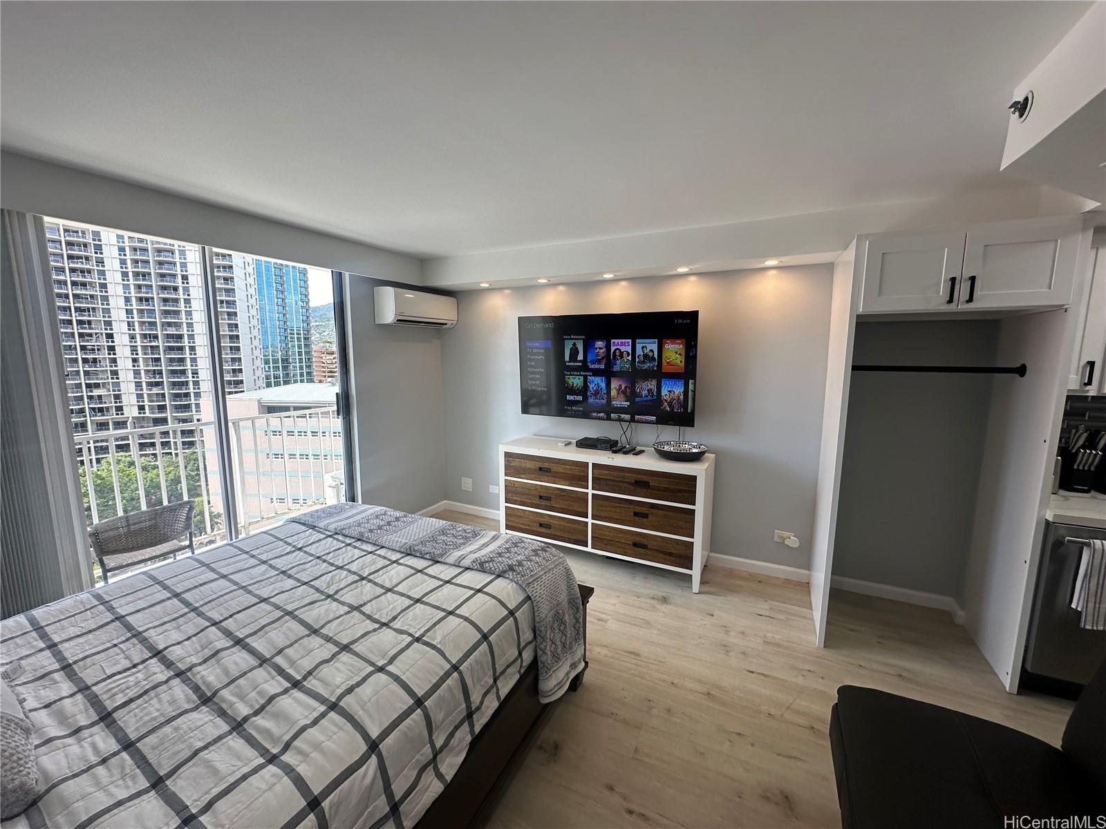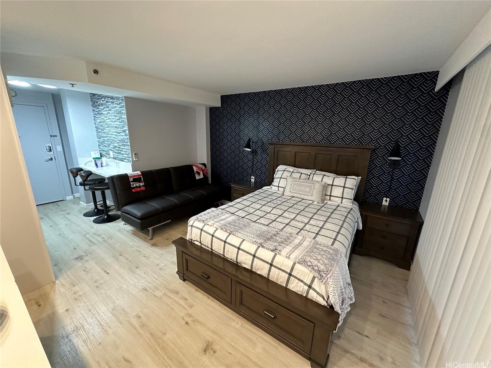 Step into luxury with this meticulously remodeled, fully turn-key unit in the heart of Walkiki. Every update has been done with care, using the finest materials to ensure quality and durability, The kitchen, bathroom, and fiving room have been beautifully transformed, featuring high-end appliances, shaker cabinets and quartz countertops and thoughtful design touches. Floors are a luxury vinyl plank and the feature wall brings the entire design together. This unit is not just move-in ready, it's designed for those who appreciate the best. Furniture is being offered with consideration to offers. Enjoy the best of Waikiki and Ala Moana Shopping Center right at your doorstep-beaches, dining, shopping, and entertainment-all just minutes away. Whether you're seeking a serene home or a prime investment, this property is ready to exceed your expectations.