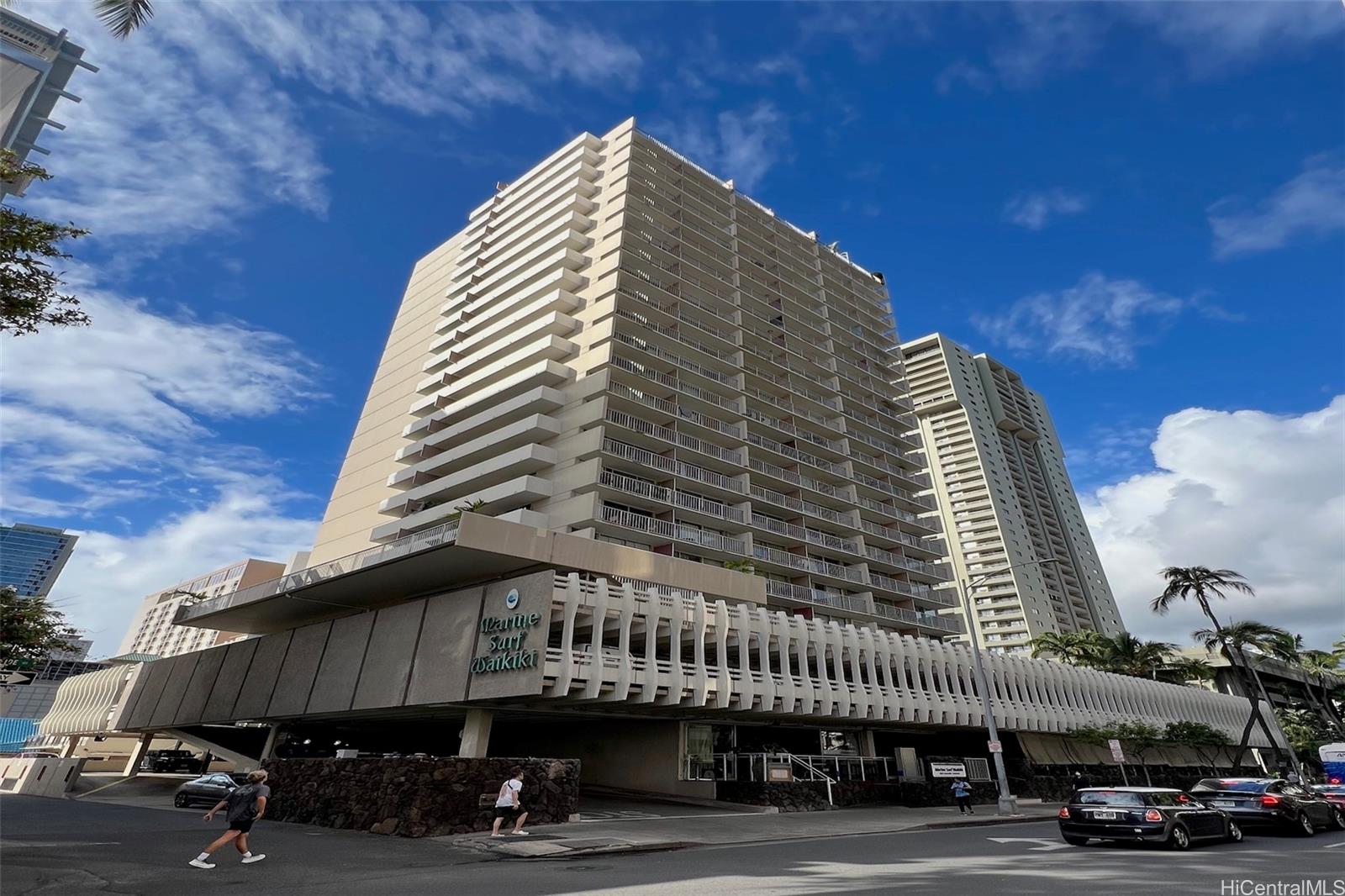 In the Heart of Waikiki, Marine Surf has been a part of charm and glory of Waikiki for decades, this corner unit with two lanais and fabulous cross breezes. Convenient to famous beaches, up scaled shopping and gourmet restaurants. Near to the world famous ‘PINK Palace’ Royal Hawaiian Hotel surrounded by the vibrant blues of the South Pacific.