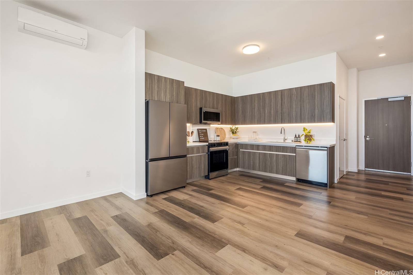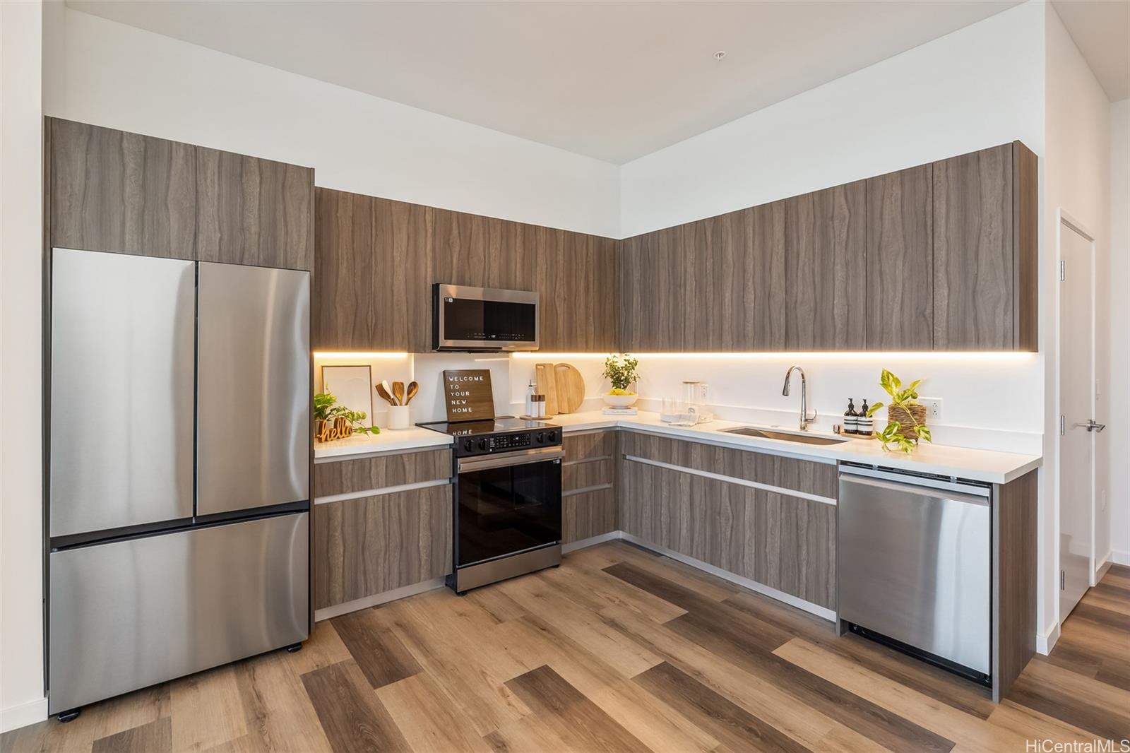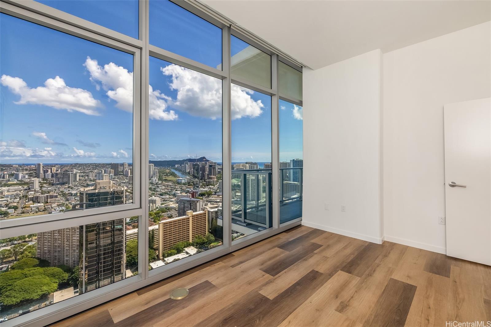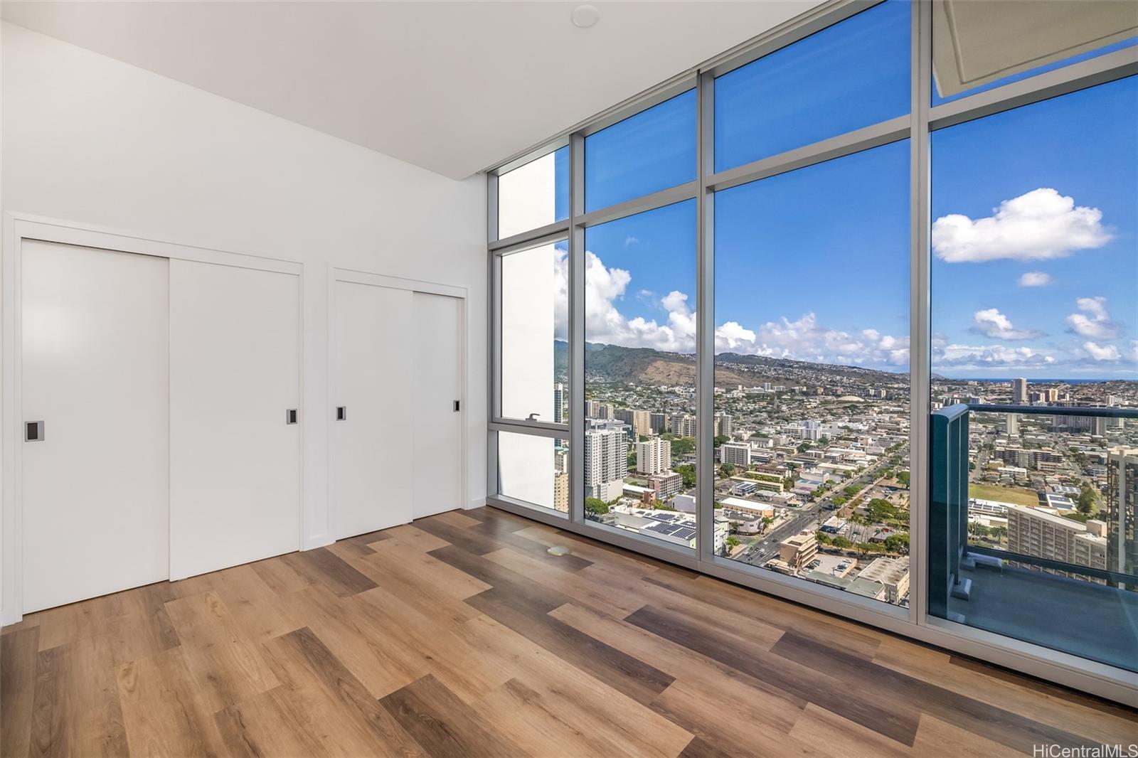 Spectacular high ceilings define this top-floor, penthouse-level residence with views not only of Diamond Head and the ocean, but all the way over Kahala to Maunalua Bay! The 07 is the largest floor plan of the three 1bds on the 44th floor, and features a stunning lanai. The wide bedroom layout takes full advantage of the view, with tall, floor-ceiling glass. Upgraded with LVT flooring in the bedroom and automatic shades, this home is ready to move into and has never been occupied. The parking stall is amazing, on the lowest gated level diagonally across from the entrance to the tower elevators. The Park on Ke‘eaumoku is Midtown Ala Moana’s newest condominium, known for its spacious amenity area featuring a huge infinity pool and hot tub, huge party rooms, lots of private BBQ cabanas, gym, saunas, theater, and more. Don’t miss this special penthouse!