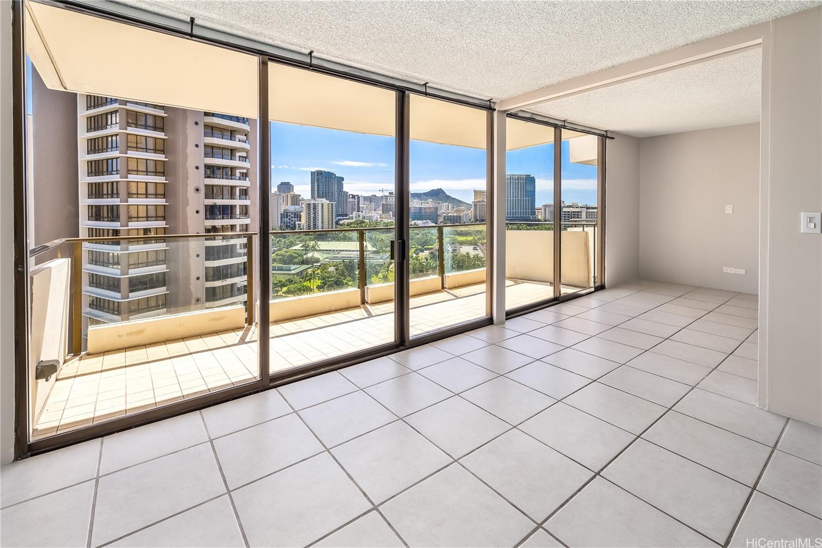 NEW PRICE! Enjoy breathtaking views of Diamond Head, the ocean, and the mountains from this spacious 17th-floor 2-bedroom, 2-bath condo with a private lanai. Located in the iconic Wailana at Waikiki, this well-appointed unit offers a prime location just minutes from world-renowned Waikiki Beach, the Ala Moana Shopping Center, the Hawaii Convention Center, and a variety of shops and restaurants. The Primary Bedroom features a unique Souji door that opens up to the main living space, creating an airy and open feel. With ceiling-to-floor windows and a glass door, you’ll have panoramic views that make every day feel like a vacation. This condo comes with one secured and assigned parking space, as well as additional storage. Convenient surfboard and bicycle storage are available on the premises. Enjoy the convenience of the newly opened Island Market and Deli located downstairs, offering easy access to everyday essentials. Building amenities include a refreshing pool and BBQ area, perfect for relaxing and entertaining. Please note, this is a leasehold property. The lease has been extended to end of 2069. Min. 90 days rentals. 2 pets up to 35 lbs
