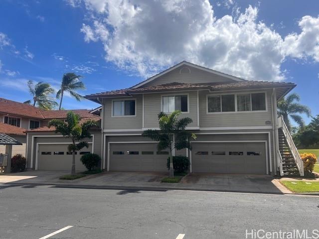 Are you looking for Peace along with the Joy of Ko Olina? Find serenity in this lovely fully furnished home, nestled in a calm, quiet area, offering gorgeous golf course views from the lanai. View open green space and trees, from the surrounding living room and bedroom windows, which invite energizing light. This home has been well cared for, and upgraded with tile, laminate flooring, custom paint, and newer appliances, All three air conditioners are newer, and have been serviced regularly. If a workshop is in your future, you will enjoy the oversized two car garage which is ready to accommodate all your hobbies, as well as the vehicles. You also have two driveway parking places and a lengthy bank of guest spots for your friends! This home has no one above and sits over garages beneath. It is a beautiful walk to the beach, or lunch, under canopies of Monkeypod trees. New shops have been joining the current array of established boutiques and restaurants. The Sports Club membership is included in your HOA fees, and includes a gym and an offering of different classes & sports activities. Don't forget to visit our marina, providing water excursions for all,
