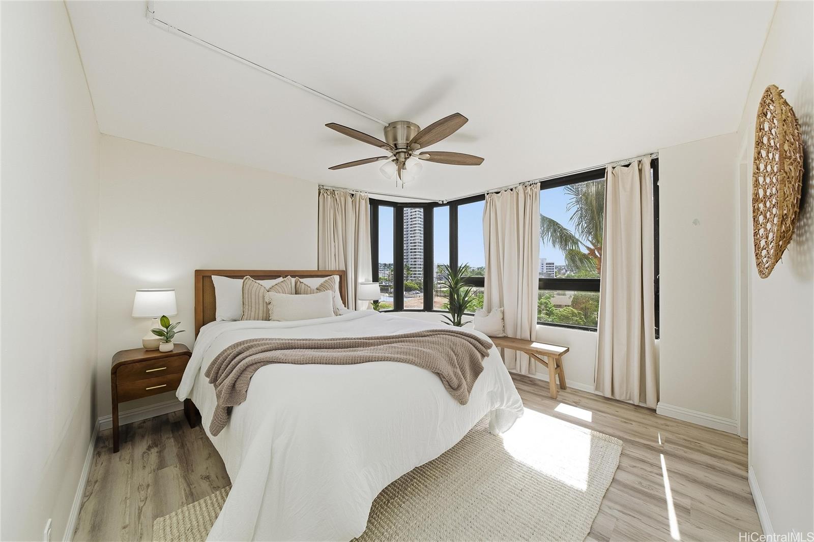 Location, location, location! Located in the heart of Mo'ili'ili, this 2 bedroom, 2 bath residence in Kings Gate has been completely renovated in 2024 and is ready for you to move in! Step into this bright and updated home with vinyl flooring throughout, and no popcorn ceiling. The kitchen features new cabinetry, quartz countertops and new appliances. Both bathrooms have not only been updated, but the entire buildings plumbing was also recently completed. Both bedrooms also feature closet systems as well as ceiling fans to keep cool air circulating. Conveniently located in the heart of Honolulu, Kings Gate is walking distance to University of Hawaii, coffee shops, local eateries and shopping. Unit comes with 1 assigned, parking stall in a secured garage. The special assessment of $207.30 will end Dec 2025.