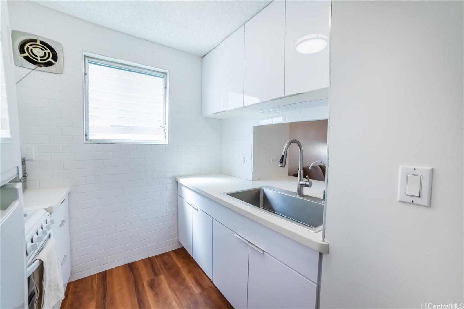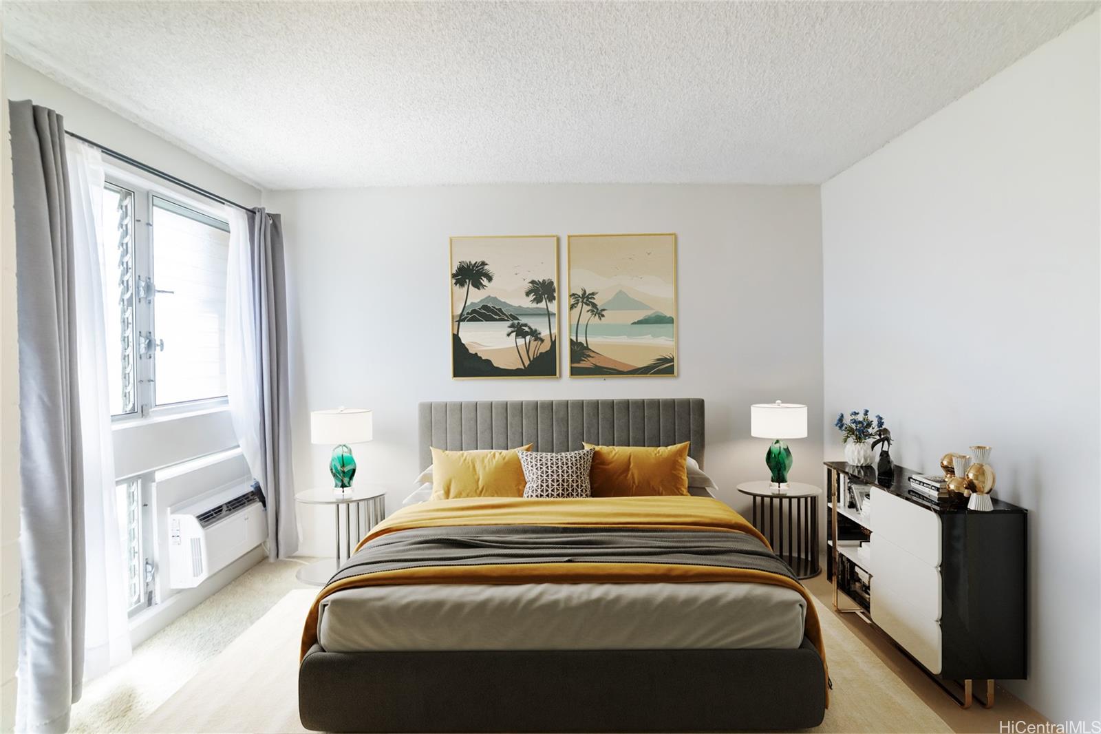 Welcome home to this RARELY available + SPACIOUS 1 bedroom/1 bathroom unit at 1073 Kinau. This well-maintained corner/end unit offers upgraded kitchen with custom cabinets, full load washer/dryer, A/C, ample storage space, excellent cross ventilation, an additional nook area off primary bedroom, a cozy corner lanai with city views, and LOW maintenance fees of $516/month! This secured building features recently upgraded elevator and a on-site resident manager. Centrally located just a few blocks from Downtown Honolulu, Post Office, Kaiser Medical Center, Kapiolani and Queen’s Hospitals, Schools, Honolulu Museum of Arts, and a wide range of shops, restaurants and entertainment.