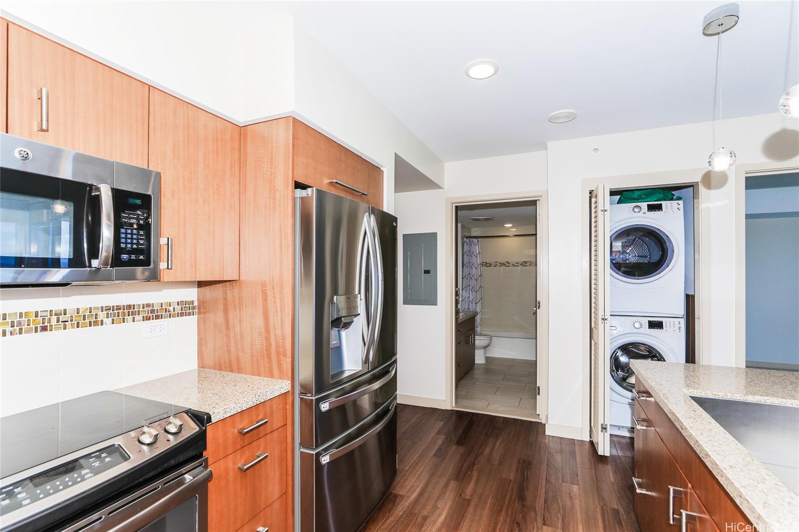 Exceptional price for this spacious 2-bedroom, 2-bathroom Unit with 2 large, assigned, side-by-side parking stalls at Keauhou Place in Kaka'ako, Honolulu, a contemporary high-rise. This modern unit features an open floor plan, with floor-to-ceiling windows, private lanai, allowing residents to enjoy breathtaking city, ocean, and mountain views. High-end finishes include European-style cabinetry, quartz countertops, and energy-efficient appliances. The building provides resort-style amenities such as a swimming pool, jacuzzi, fitness center, BBQ areas, and recreational rooms. Its prime location in the heart of Kaka'ako offers easy access to SALT at Our Kaka'ako, Ala Moana Shopping Center, Down to Earth, H-Mart and various dining and entertainment options. With its blend of luxury, convenience, and modern design, Keauhou Place is ideal for those seeking an urban island lifestyle. 100% hurricane insurance coverage. Smoke free building. Pet Friendly. Secure Buiilding. 3D Virtual Tour available.