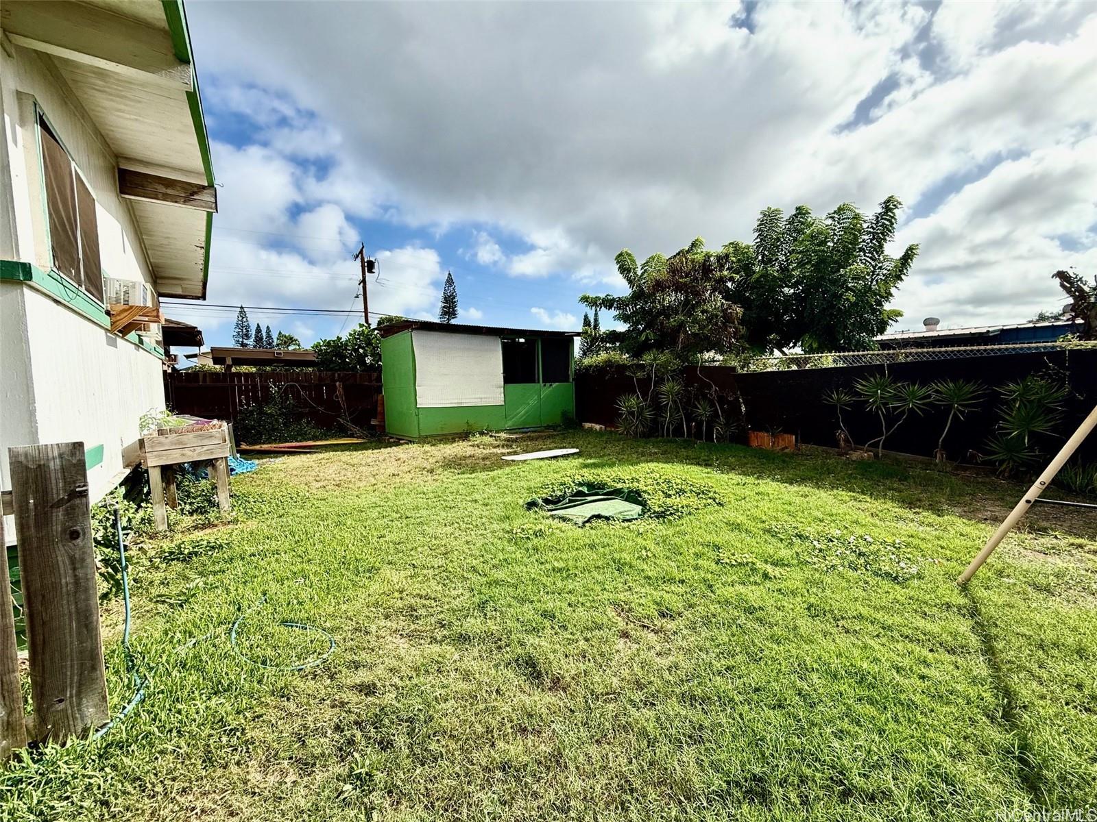 Single family home situated between Hale'iwa Ali'i Beach park and Kaiaka Beach park. Single level home on a 5000+ sq ft lot ready for your personal touches! This well loved, 3 bedroom, 1 bathroom home features high open beam ceilings throughout and a hot/cold shower outside in addition to the full bathroom inside. Large storage shed in the backyard for your toys and other personal items. Flat, grassy yard has lots of room to expand and relax. Just a few blocks to the beach and Hale'iwa town shopping and restaurants. Vacant and easy to show.