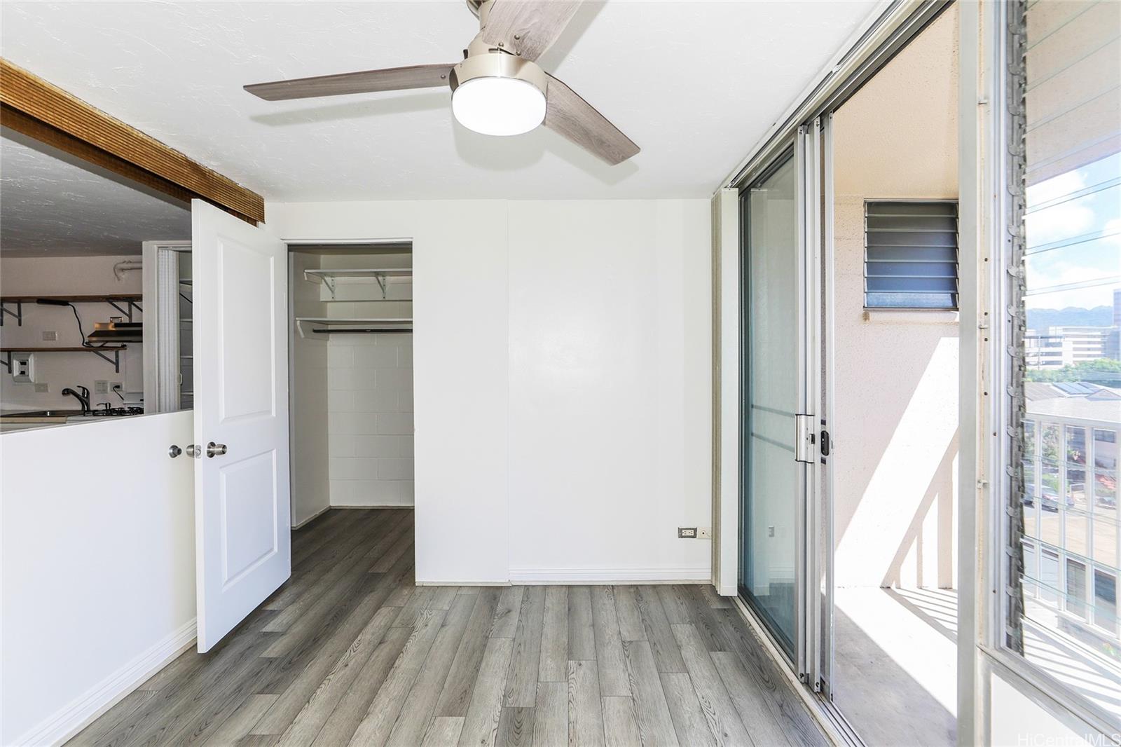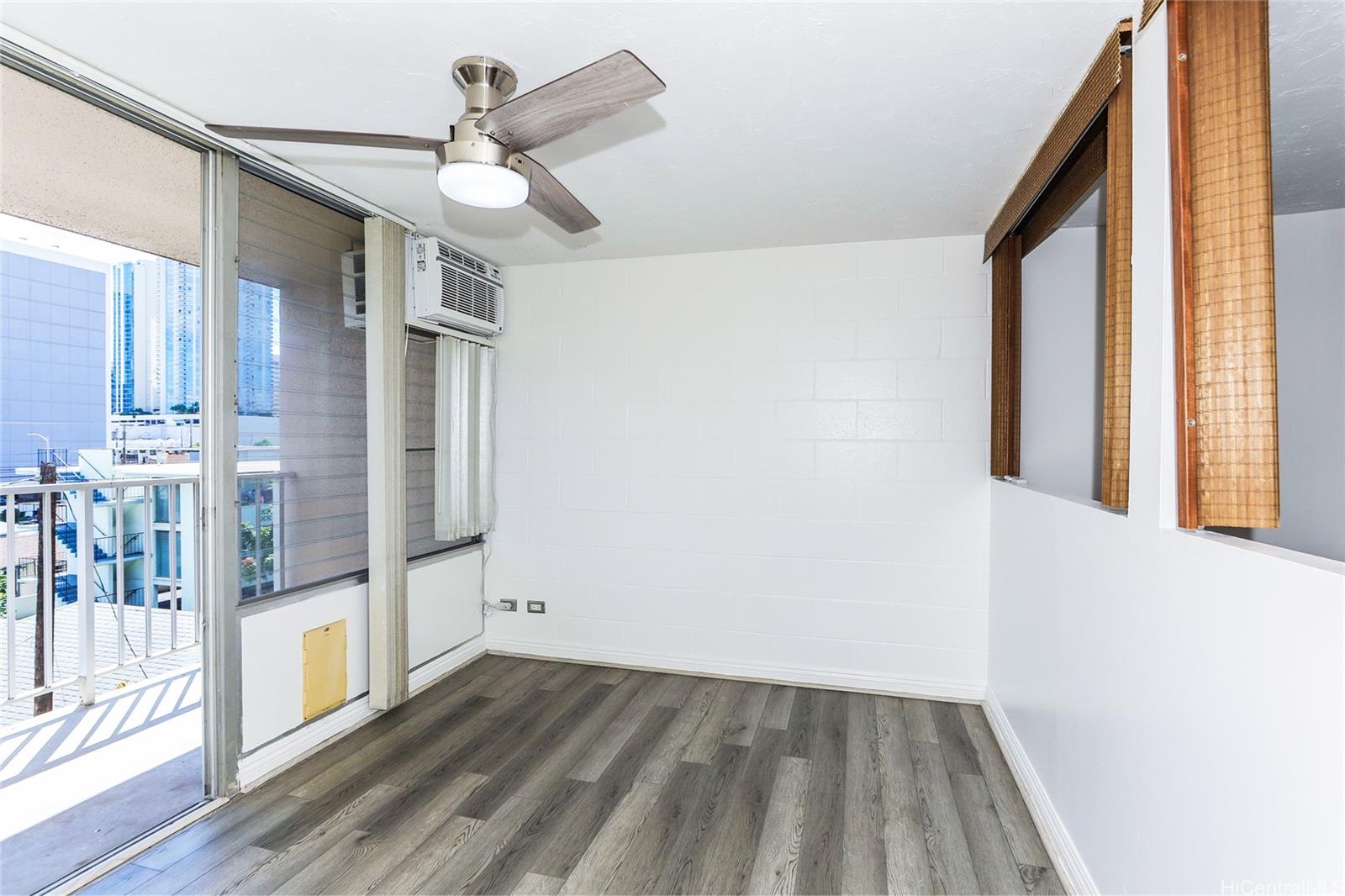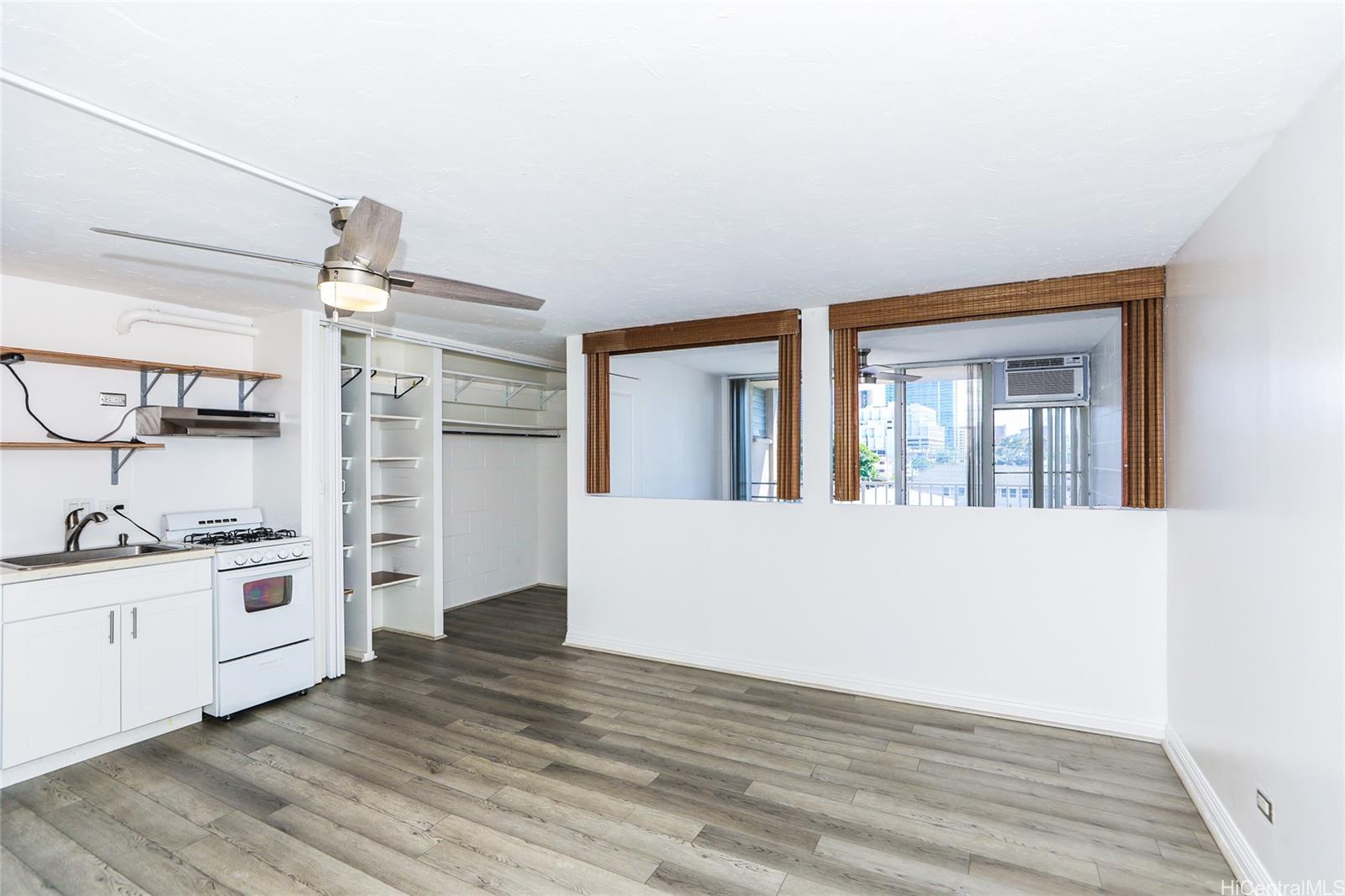 Welcome to Rycroft Manor! This beautifully renovated 1-bedroom, 1-bath home in the heart of Honolulu offers the perfect blend of comfort and convenience. Enjoy stylish upgrades including new luxury vinyl plank flooring, open shelving in the kitchen, a new kitchen sink and cabinetry, and a powerful new full-size AC unit to keep cool year-round. Step out onto your private patio to relax and take in the city breeze. Comes with one assigned covered parking stall for added convenience.