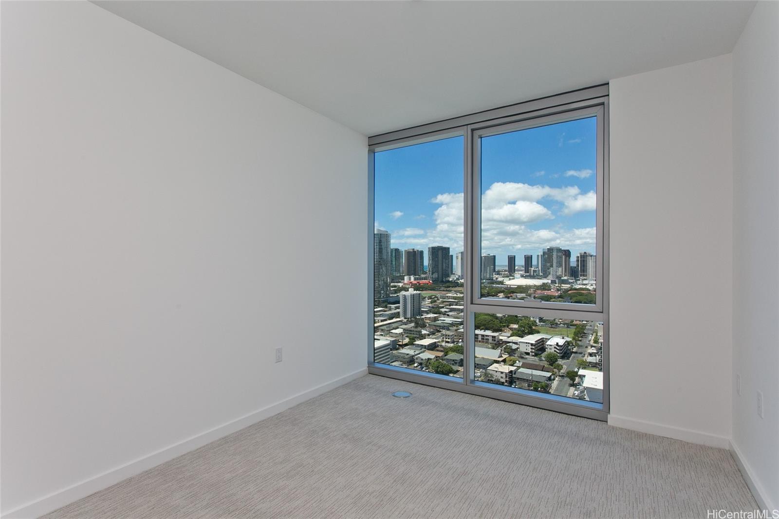 This rare, newly constructed, three-bedroom, two-bathroom corner residence, located in the heart of Honolulu's most vibrant neighborhood, offers spacious interiors and a lanai for modern living. The master bedroom features a walk-in closet, while the other two bedrooms share a fully equipped bathroom. The residence also features a spacious laundry room, a welcoming foyer, and an open-concept kitchen with an island bar. Enjoy breathtaking panoramic views of the ocean, city, and mountains from the lanai. This pet-friendly building offers a full complement of amenities, including an infinity pool, spa, BBQ cabanas, movie theater, fitness center, yoga studio, and sauna. It seamlessly combines luxury, an elevated lifestyle, and a highly desirable location with unparalleled convenience.