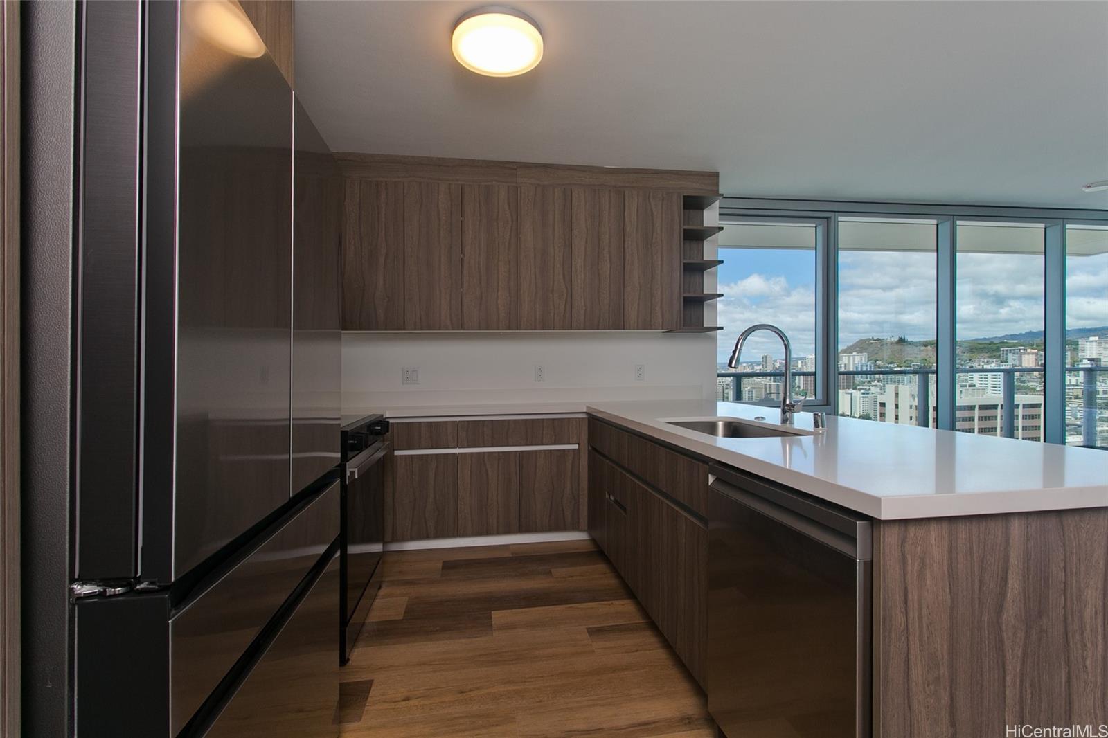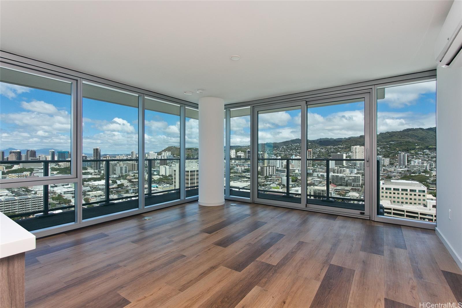 ホノルルで最も活気のあるエリアの中心部に位置する、希少な新築3ベッドルーム、2バスルームの角部屋レジデンス。広々とした室内空間とモダンなライフスタイルを実現するラナイを備えています。マスターベッドルームにはウォークインクローゼットが備えられ、他の2つのベッドルームには設備の整ったバスルームが共用です。広々としたランドリールーム、温かみのある玄関ホール、アイランドバーを備えたオープンコンセプトのキッチンも完備しています。ラナイからは、息を呑むような海、街、山々のパノラマビューをお楽しみください。ペット同伴可能なこの建物には、インフィニティプール、スパ、バーベキューカバナ、映画館、フィットネスセンター、ヨガスタジオ、サウナなど、充実したアメニティが揃っています。ラグジュアリー、ワンランク上のライフスタイル、そして抜群の利便性を誇る好立地が、シームレスに融合しています。