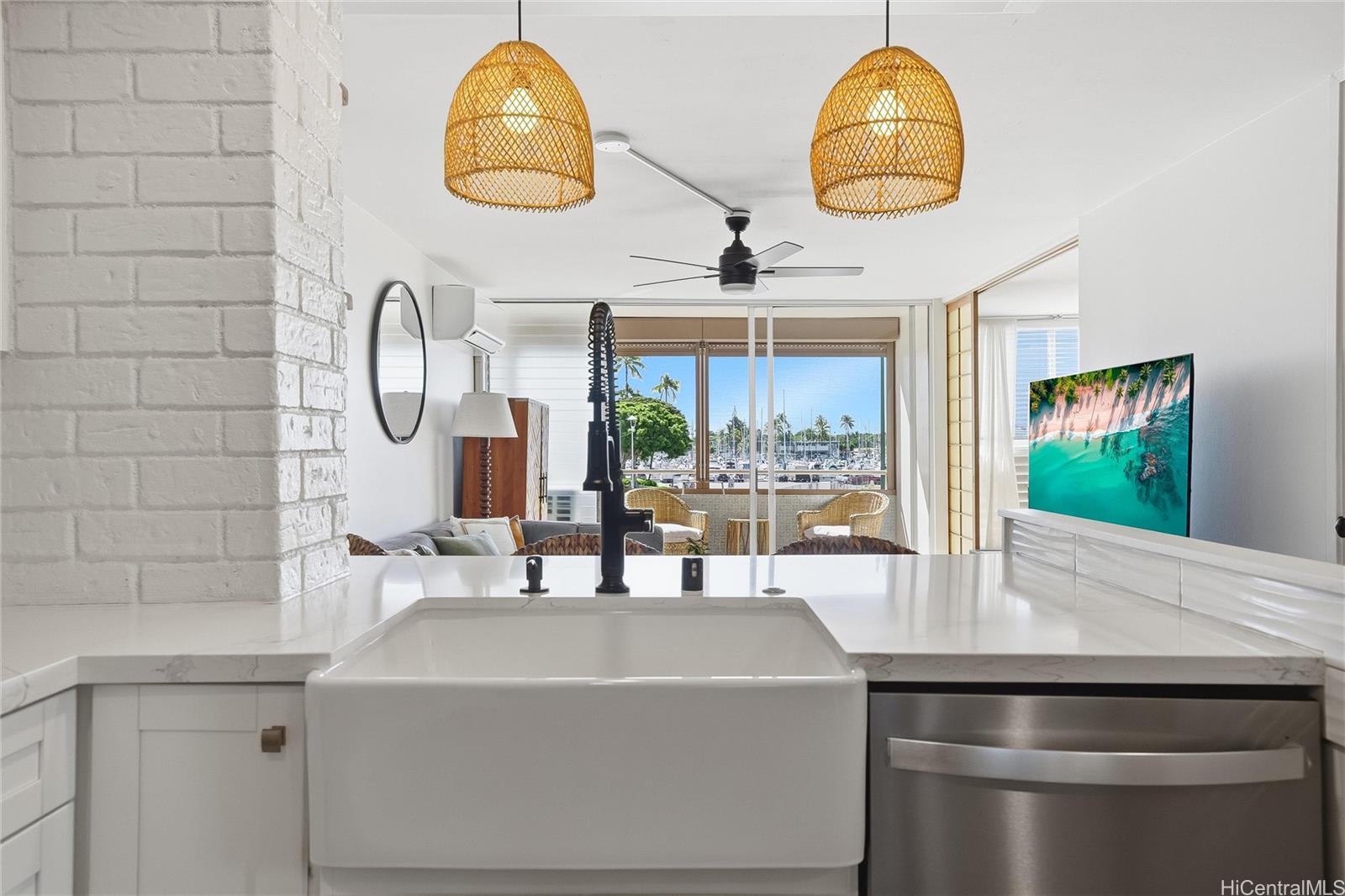 RARE OPPORTUNITY FOR VA ASSUMABLE RATE AT 2.75%!! Experience island living at its finest in this beautifully remodeled 2-bedroom, 1.5 bath first-floor condo offering marina and ocean views. Sunlight fills the open-concept living area, showcasing the thoughtfully updated kitchen and bright, inviting interiors, perfect for relaxing or entertaining. Step out onto your private lanai to take in the gentle breeze - or enjoy the comfort of the brand-new split AC. Don’t miss this rare opportunity to live mere steps away from everything you need including Ala Moana Beach Park, shopping centers, world-famous restaurants, and so much more.