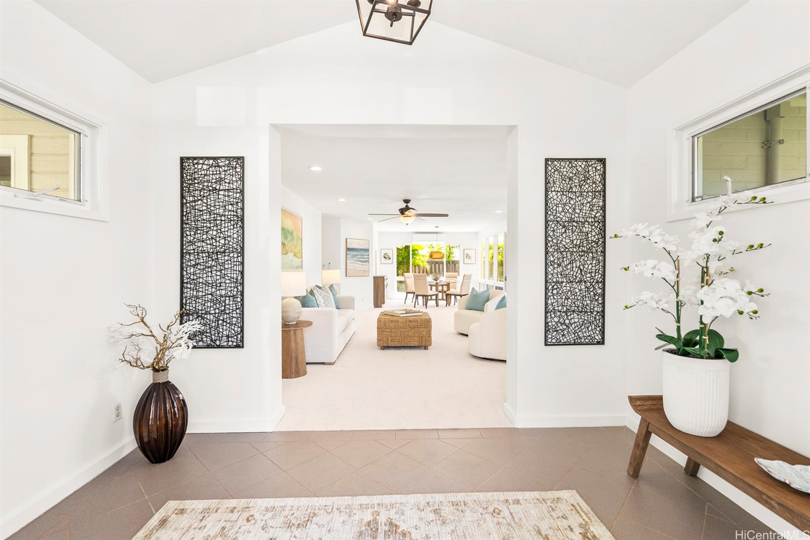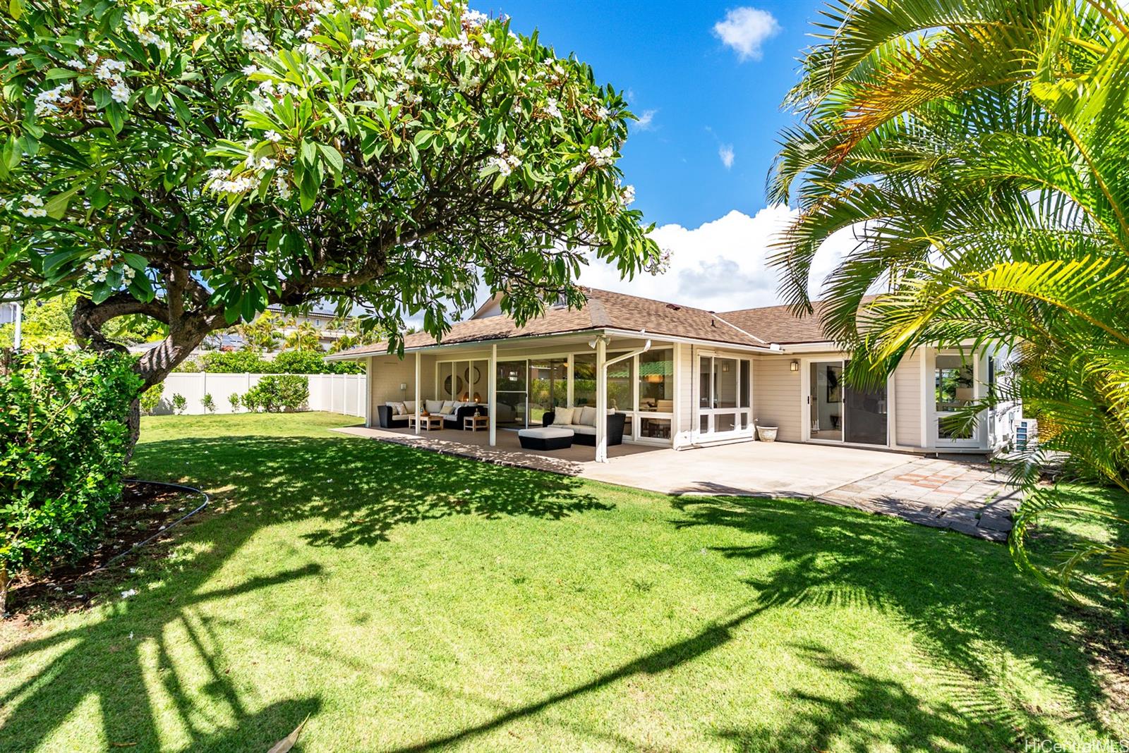 GREAT ENTRY INTO ONE OF THE BEST NEIGHBORHOODS ON OAHU. This open and airy, single-level Kahala home is bright and breezy with lots of natural light. The efficient floor plan offers three large bedrooms, a vaulted ceiling in the family room and walls of windows that frame views of lush green grass, flowering plants and fragrant mock orange hedges. The home sits on an expansive lot with two enclosed yards—a smaller one off the primary bedroom and a large, private, landscaped backyard, perfect for family fun and games or the addition of a pool. Plenty of covered patio area enhances the versatility of the al fresco entertaining space and promotes that  indoor/outdoor lifestyle that makes Hawaii so special. New paint and carpeting and newer split A/C units in every room add to the fresh, comfortable feel of this oasis in Kahala.