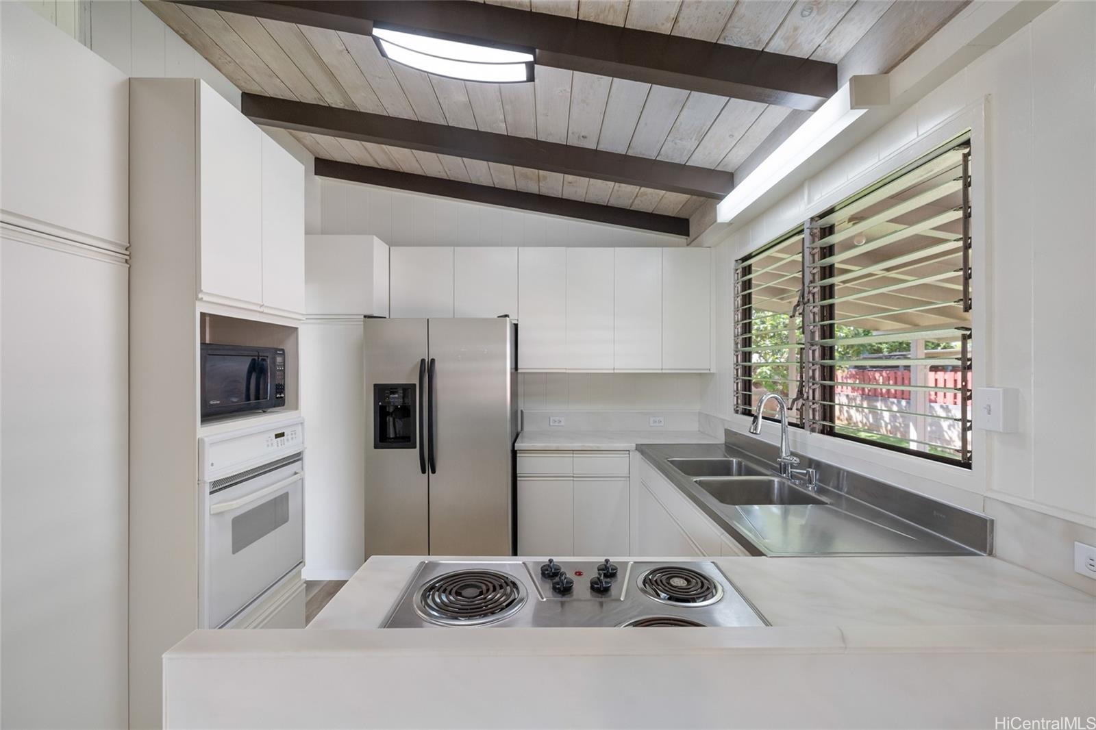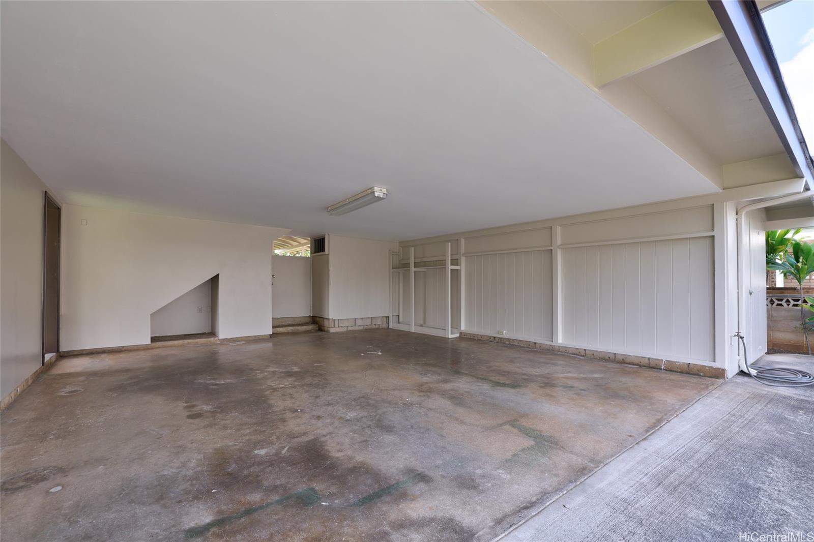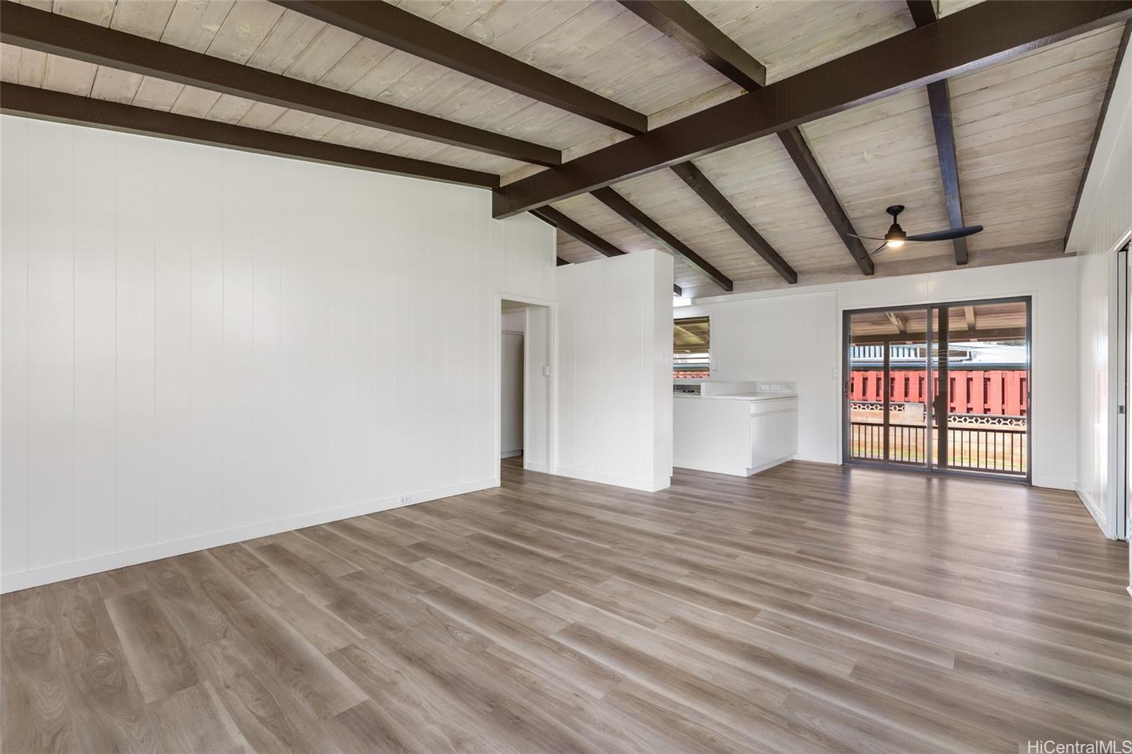 Location, location, location - flat, flat, flat. Highly desirable Moanalua Gardens 4 bedroom, 2.5 bath home offers both comfort and convenience. Situated on a level, beautifully manicured and fully fenced yard, this property provides ample space to play, entertain, expand or simply relax and enjoy. Conveniently located near Moanalua Elementary and Intermediate schools. A LARGE storage room next to the garage adds valuable flexibility - perfect for tools, hobbies or extra space. Looking for income opportunity? Separate the upstairs 1 bedroom, 1 bath with living area - your choice. Home is move-in ready! Renovations include: exterior and interior paint, new luxury vinyl tile (LVT) flooring downstairs, new carpet upstairs, new countertops at full and half bath downstairs, new countertop at upstairs kitchenette, new door knobs, new light fixtures (at bedrooms, bath, hallway), new ceiling fan at dining room, new a/c at upstairs bedroom and many more.
