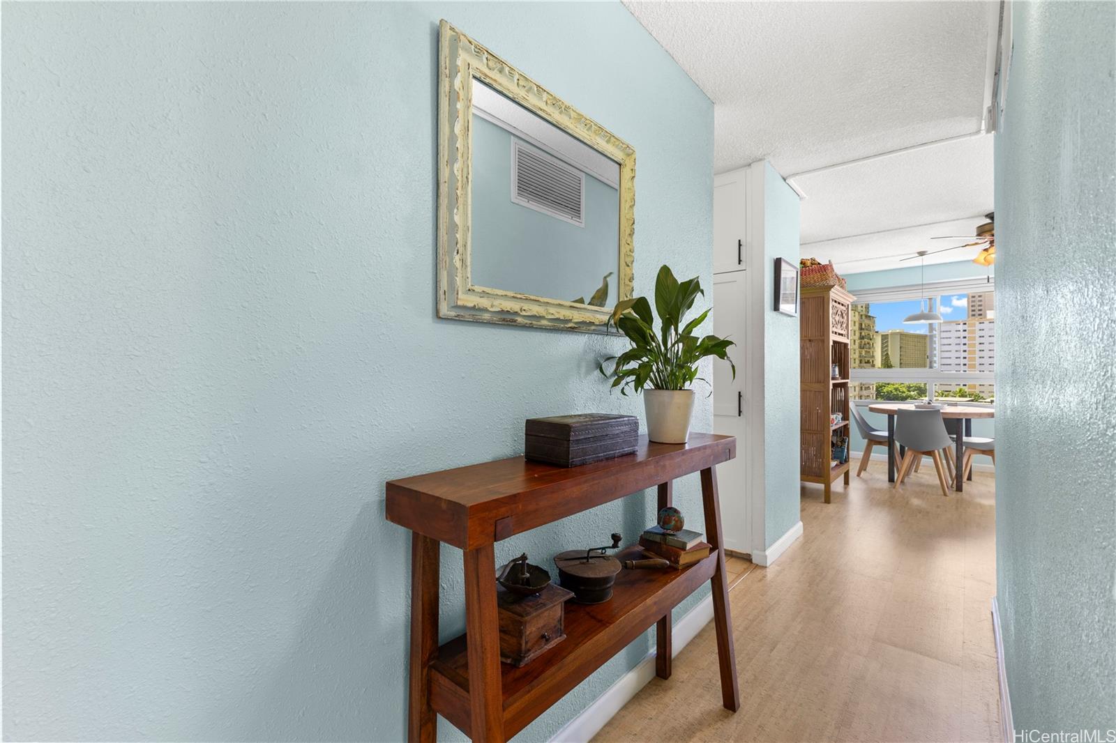 フェアウェイ マナーは、1 フロアに 4 ユニットのみのブティック コンドミニアムで、この地域ではめったにないプライバシーとコミュニティの感覚を提供しています。中層の規模と静かな環境は、ワイキキのあらゆるエキサイティングなスポットに近い場所にいながら、より居住的な雰囲気を好む人々にとって魅力的です。ユニット 603 は素晴らしい間取りです。各寝室は独立しており、このコンドミニアムではすべての窓が交換されたばかりなので、光がたっぷり入り、通気性も抜群です。すべての窓は、安全性とエネルギー効率のためにハリケーン定格の二重窓です。改装されたばかりの真新しいキッチンは、洗練されたキャビネット、クォーツのカウンタートップ、機能性とモダンな美学が調和した現代的な備品で上品にデザインされています。セントラル空調は維持費に含まれており、冷房システムは来年交換予定です。まるで自分の家にいるような気分です!登記済みの約 8x4 の収納スペースが含まれています。