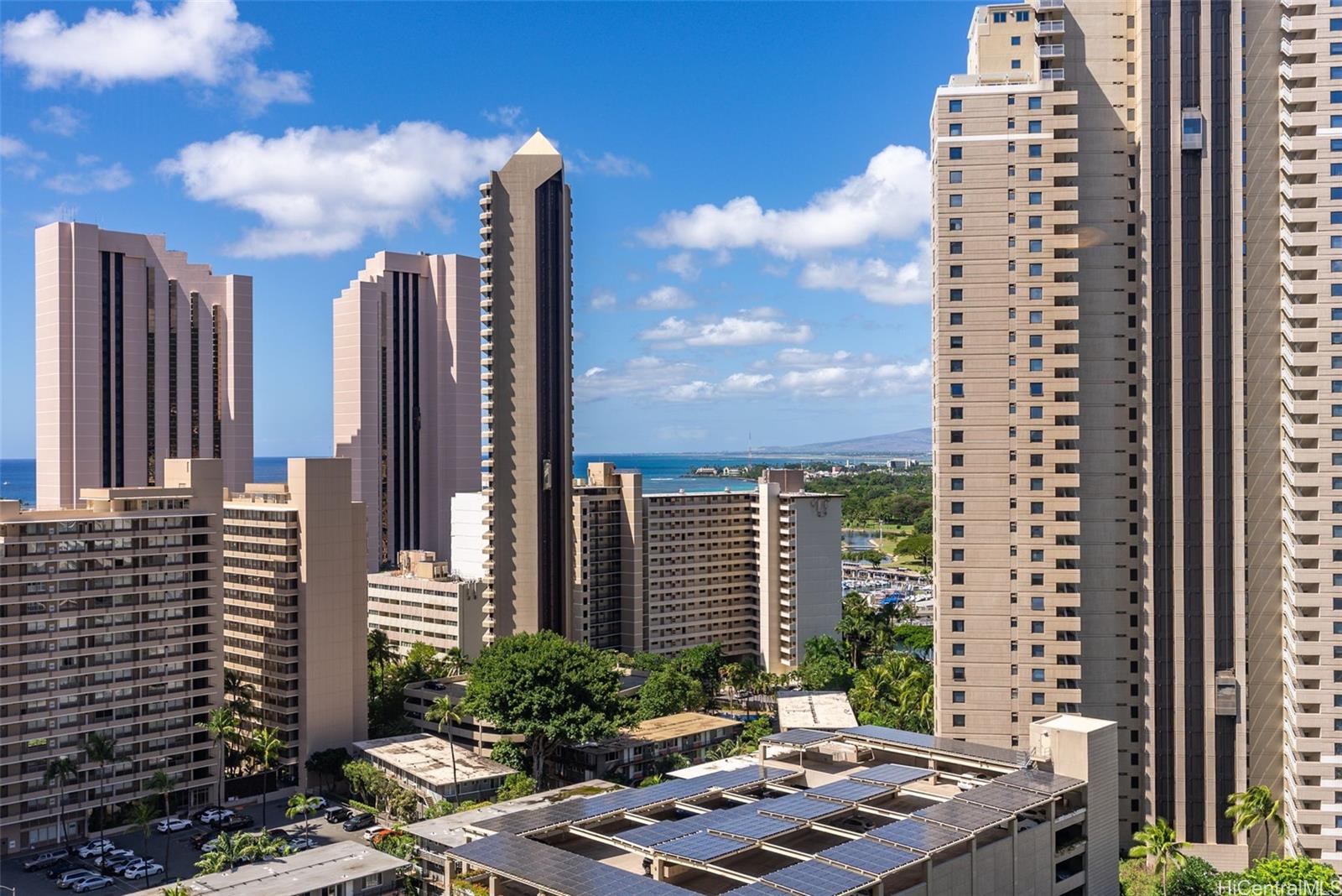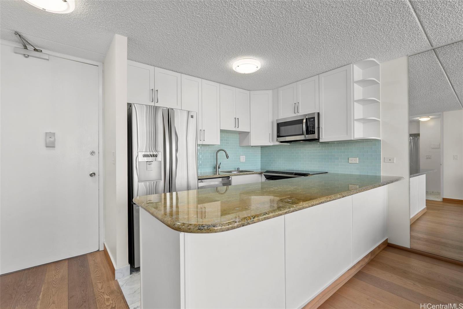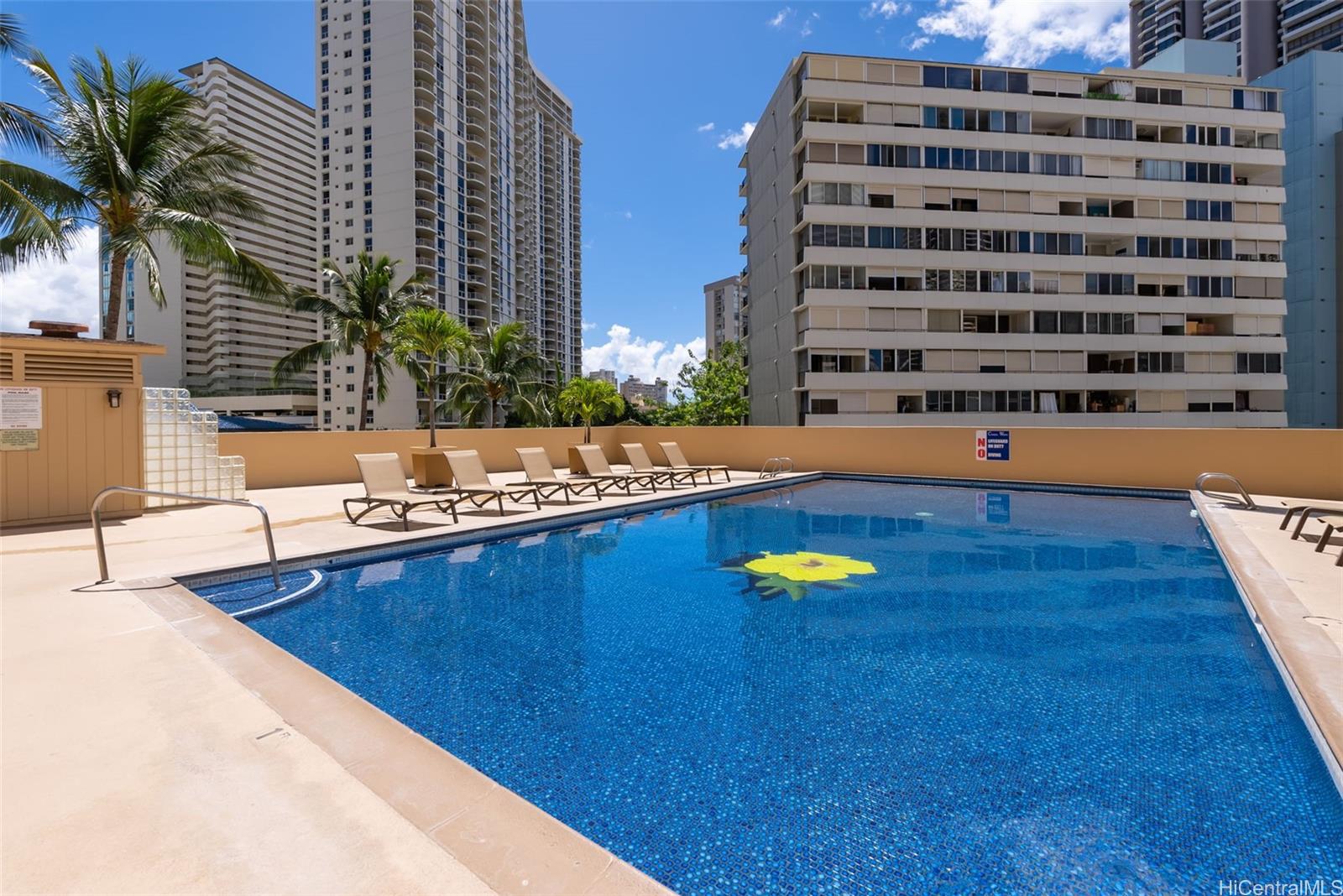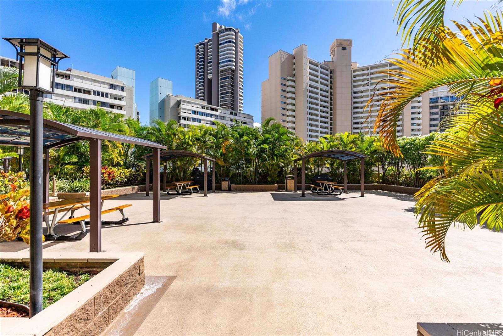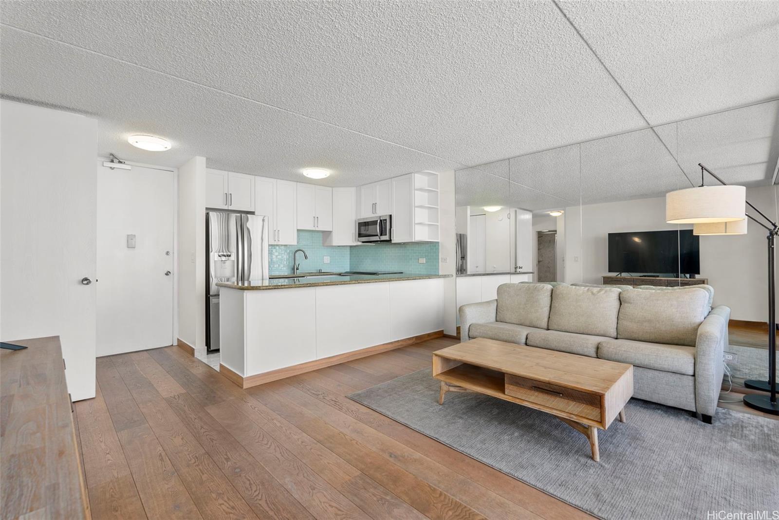 明るく設備の整った1ベッドルーム、1バスルームのユニットに足を踏み入れましょう。屋根付き専用駐車場1台分付きで、広々としたリビングとベッドルームに加え、美しい景色を眺めながらリラックスできるラナイを備えています。大きな窓とスライドドアから自然光が差し込み、リビングスペースを屋外へと広げます。キッチンとバスルームは全面改装済みで、ステンレス製の電化製品、堅木張り/大理石の床、新しいセントラルエアコン、収納ロッカーを備えています。建物には、プール、バーベキュー設備、フィットネスルーム、サウナ、図書室/ゲームルーム、パッティンググリーンを備えたレクリエーションデッキがあり、24時間体制のセキュリティ/警備員が常駐しています。ワイキキ西端の絶好のロケーションで、ビーチ、ハワイコンベンションセンター、アラモアナショッピングセンター、バス路線、レストラン、ショップまですぐです。