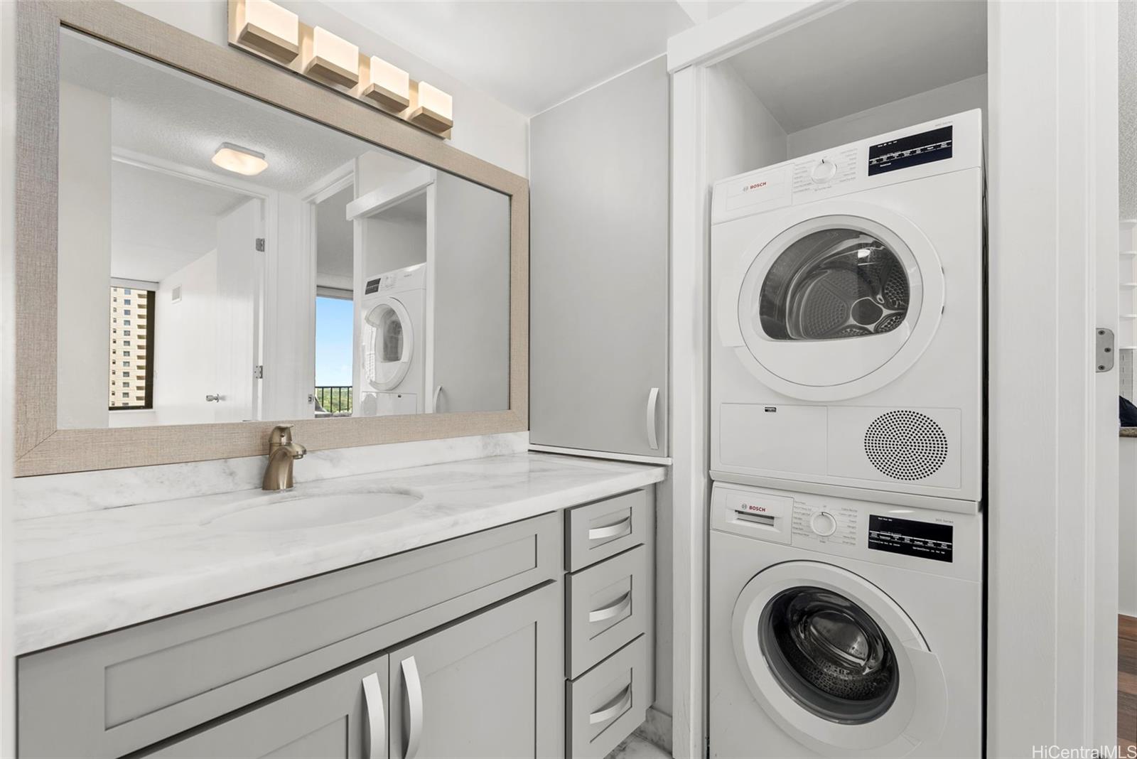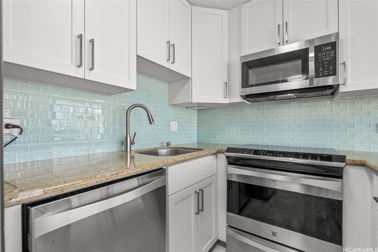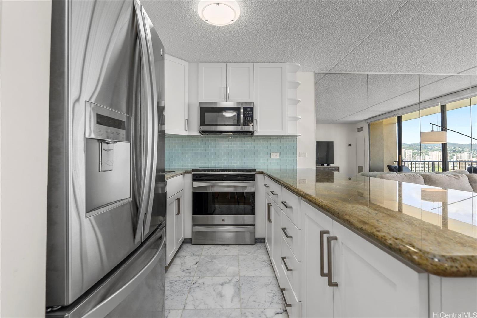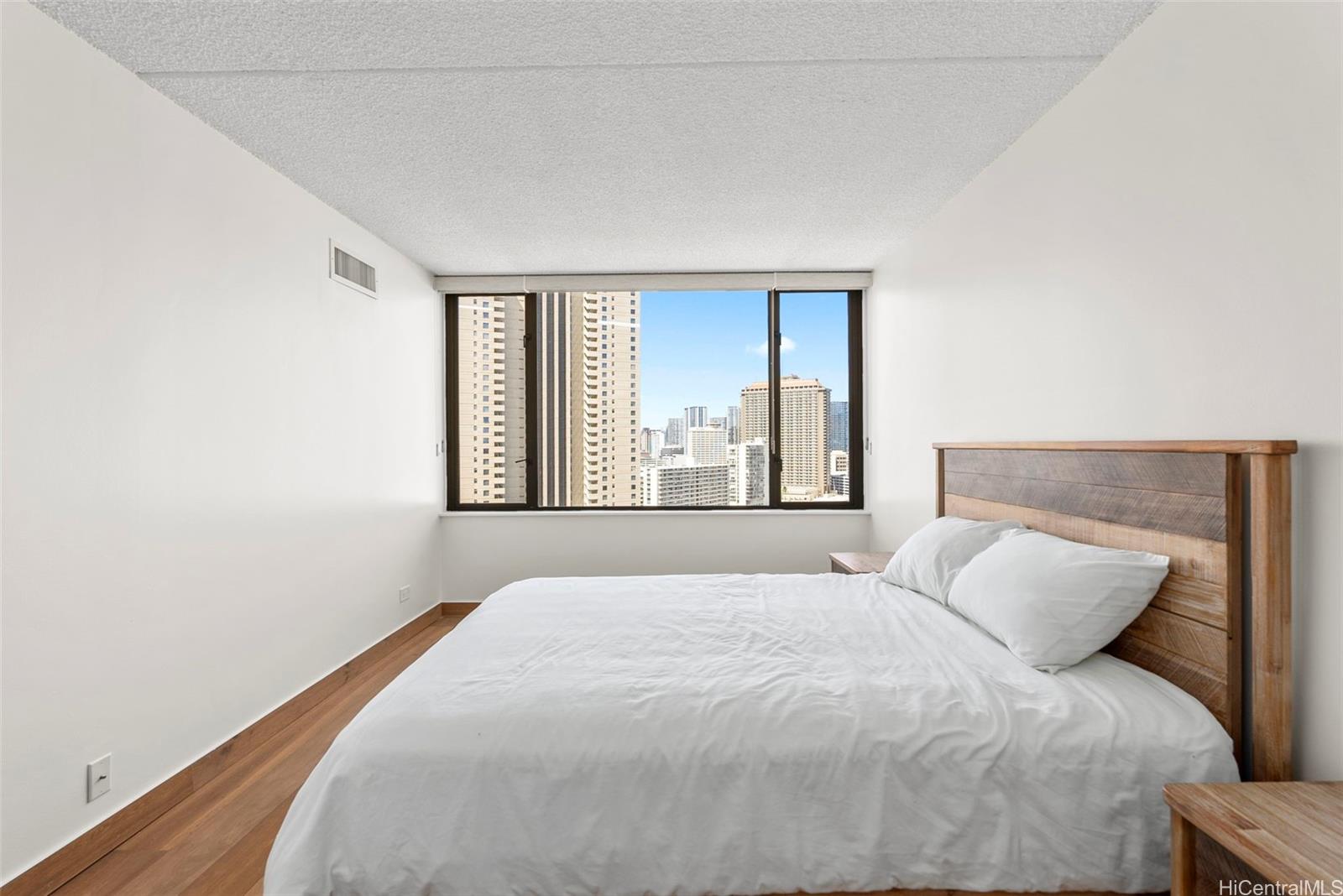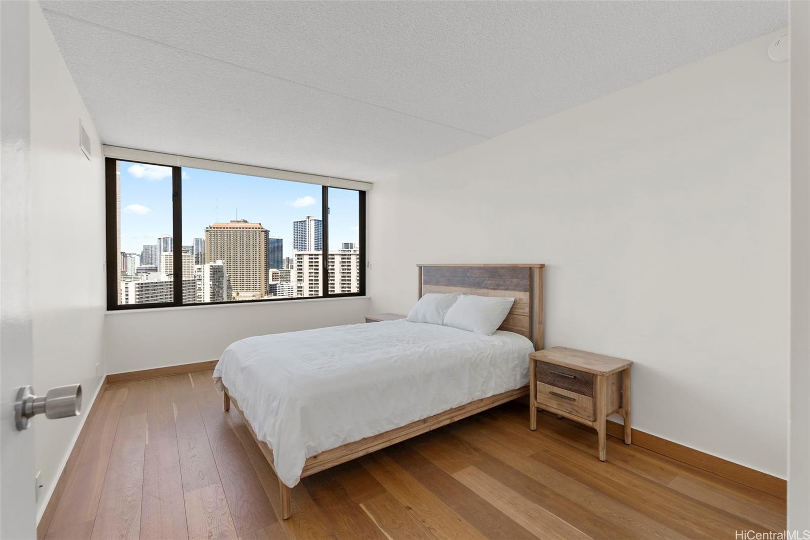 明るく設備の整った1ベッドルーム、1バスルームのユニットに足を踏み入れましょう。屋根付き専用駐車場1台分付きで、広々としたリビングとベッドルームに加え、美しい景色を眺めながらリラックスできるラナイを備えています。大きな窓とスライドドアから自然光が差し込み、リビングスペースを屋外へと広げます。キッチンとバスルームは全面改装済みで、ステンレス製の電化製品、堅木張り/大理石の床、新しいセントラルエアコン、収納ロッカーを備えています。建物には、プール、バーベキュー設備、フィットネスルーム、サウナ、図書室/ゲームルーム、パッティンググリーンを備えたレクリエーションデッキがあり、24時間体制のセキュリティ/警備員が常駐しています。ワイキキ西端の絶好のロケーションで、ビーチ、ハワイコンベンションセンター、アラモアナショッピングセンター、バス路線、レストラン、ショップまですぐです。