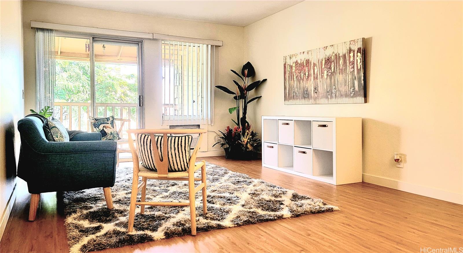 Move right into this beautifully remodeled, turnkey 2-bedroom, 2-bath single level townhome located in the highly desirable Waiau Garden Villa community of Pearl City. This pet friendly unit features an open and inviting floor plan with quartz countertops, tile and luxury vinyl flooring throughout. The beautifully designed and highly functional kitchen offers ample counter and cabinet space with stainless appliances. Enjoy the convenience of a full size washer and dryer, windows, AC, ceiling fans, modern fixtures, and water heater. Enjoy the evening breezes on your private lanai off of your primary living area. Conveniently located near shopping, grocery, dining, schools, parks, military bases, and easy access to freeway on and off ramps.