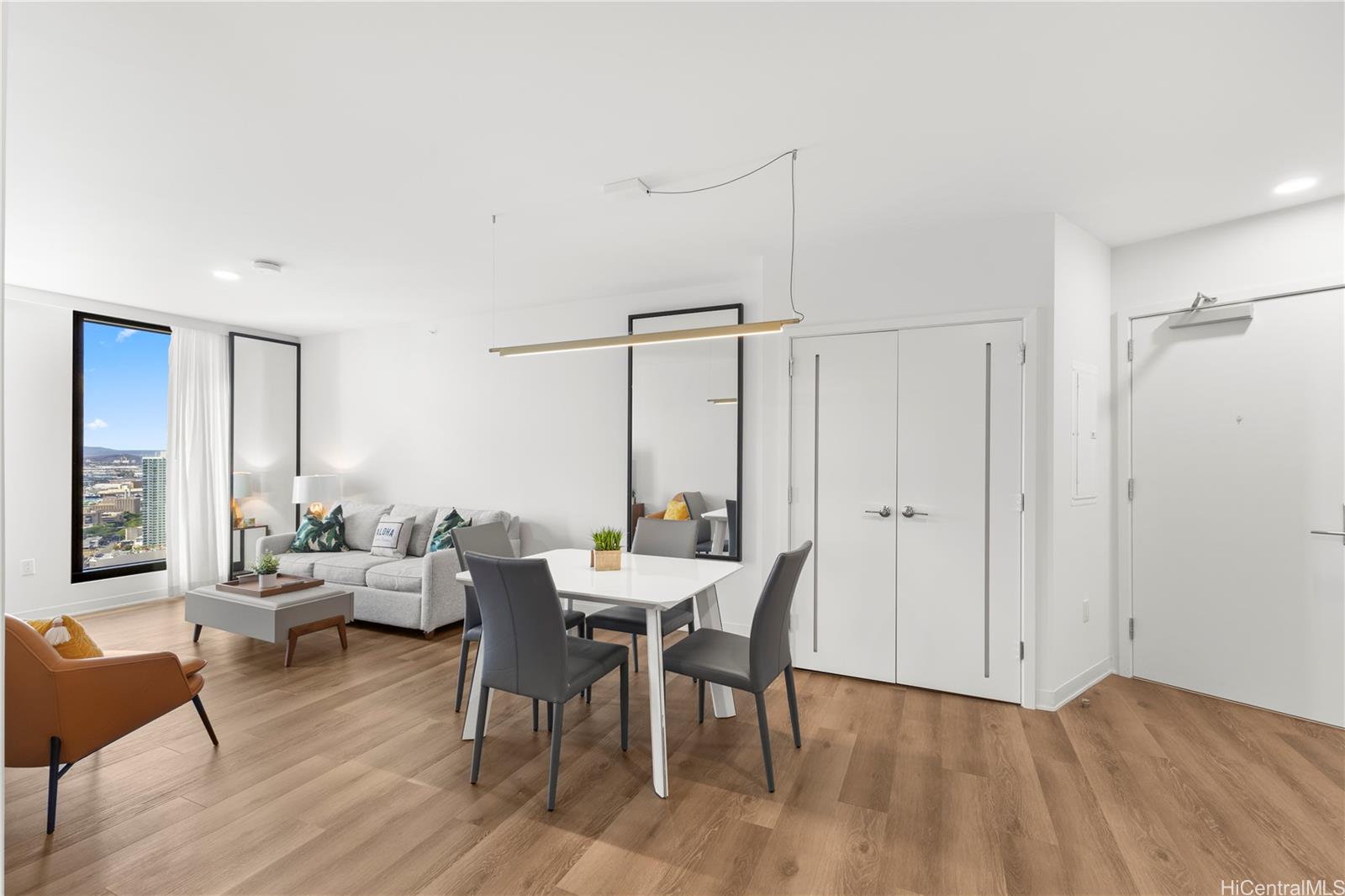 ようこそ、ご自宅へ!建物のサンセットサイドに位置する高層階のユニットです。624平方フィートのリビングエリアとラナイからの素晴らしい景色は、このユニットが最大級の1ベッドルームユニットの一つとなっています。リゾートスタイルのアメニティで快適な暮らしを実現。ユニットはルーフデッキのすぐ下に位置し、スカイラウンジやフィットネスクラブからは息を呑むような景色をお楽しみいただけます。プールサイドにはカバナがあり、バーベキューエリア、キッズプール、屋内外のイベントスペースで楽しいひとときをお過ごしいただけます。ワードビレッジの中心部に位置し、レストラン、食料品店、アラモアナセンターにも近く、便利なロケーションです。ほとんどのエリアへは徒歩圏内です。ユニットには駐車スペース5-051と頭上ロッカーPS5-051が付属しています。