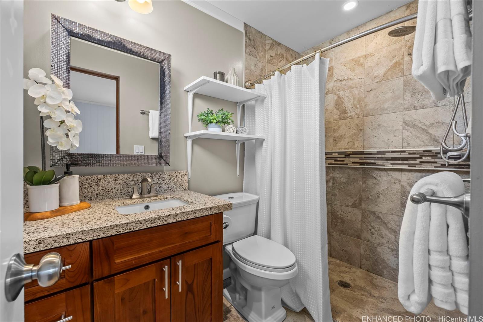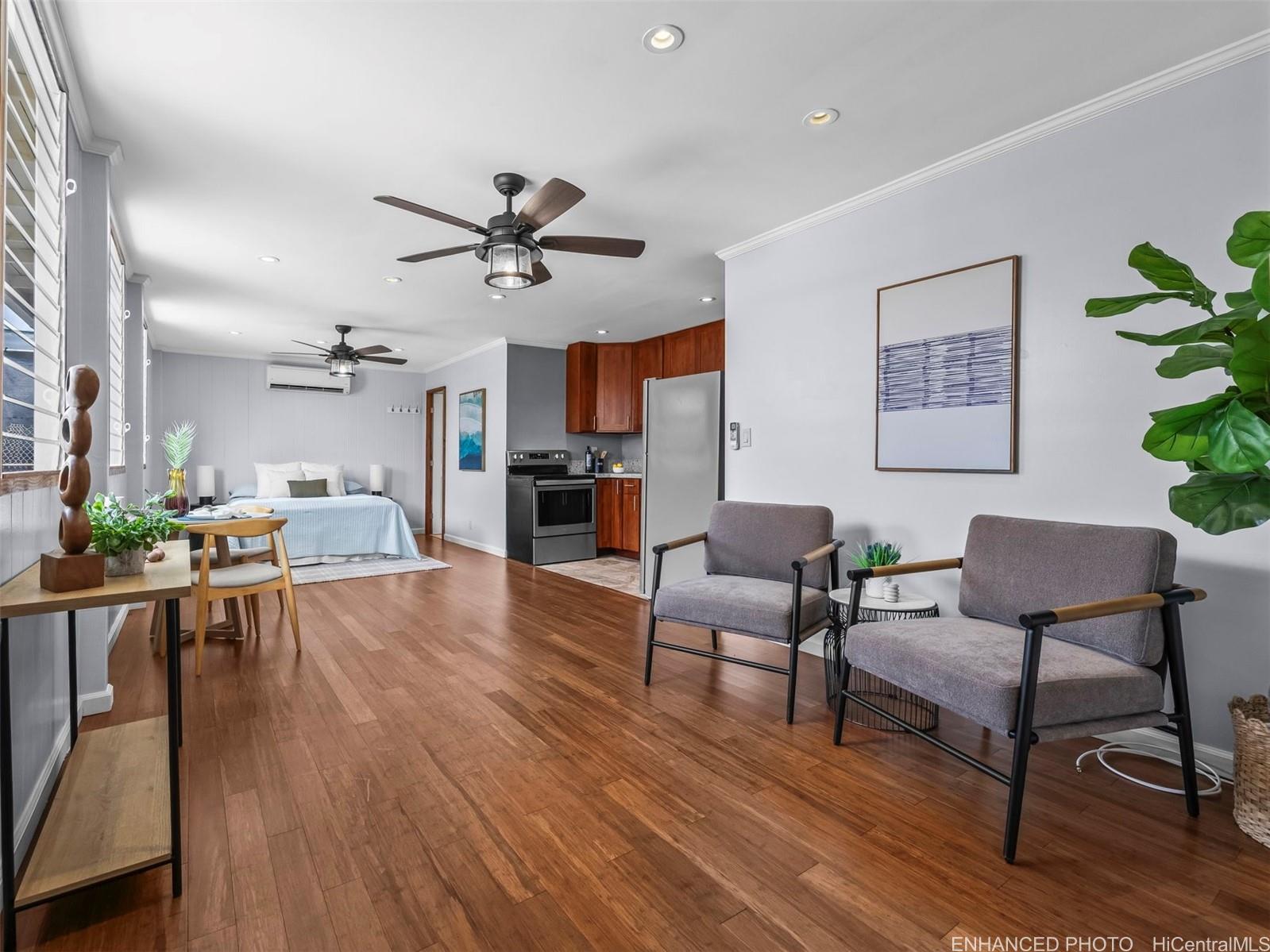 Welcome to this charming 3-bedroom, 1-bath home with attached 420sqft guest suite (studio/1bath) in the heart of Ma'ili, where island living meets everyday comfort. Thoughtfully maintained with many upgrades, this residence features an open and airy layout filled with natural light and split system A/C throughout the home. Step outside to a fully fenced property with automatic rolling gate to enter a spacious covered carport with enough space to park 4 pick-up trucks. The large lawn and yard is perfect for entertaining, gardening, and relaxing. Behind the main home lies a versatile 400 sq. ft. detached flex space with air conditioning, ideal for a home gym, and office. Recent improvements include AC, photovoltaic panels (2020), and a carport & storage built in 2022. Conveniently located 2 blocks from Nani Kai Beach Park, and the Pu'u O Hulu hiking trail, this home offers both adventure and tranquility. Make this peaceful island retreat on Oahu’s Leeward Coast your next home.