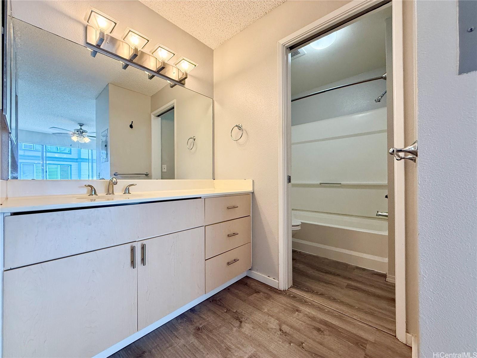 This 2-bedroom, 2-bathroom unit is ideal for VA eligible buyers with a VA assumption option at a low 2.375% interest rate. Luxury vinyl plank flooring throughout. Home is on the 2nd floor with lanai off the living room, 1 covered parking and 1 open assigned stall. Conveniently located behind Ewa Town Center with Foodland, Coffee Bean & Tea Leaf, and dining options, as well as close proximity to Laulani shopping Center with Safeway, Starbucks, Petco, City Mill for all of your shopping needs. HOA's include water/sewer and access to community pool.