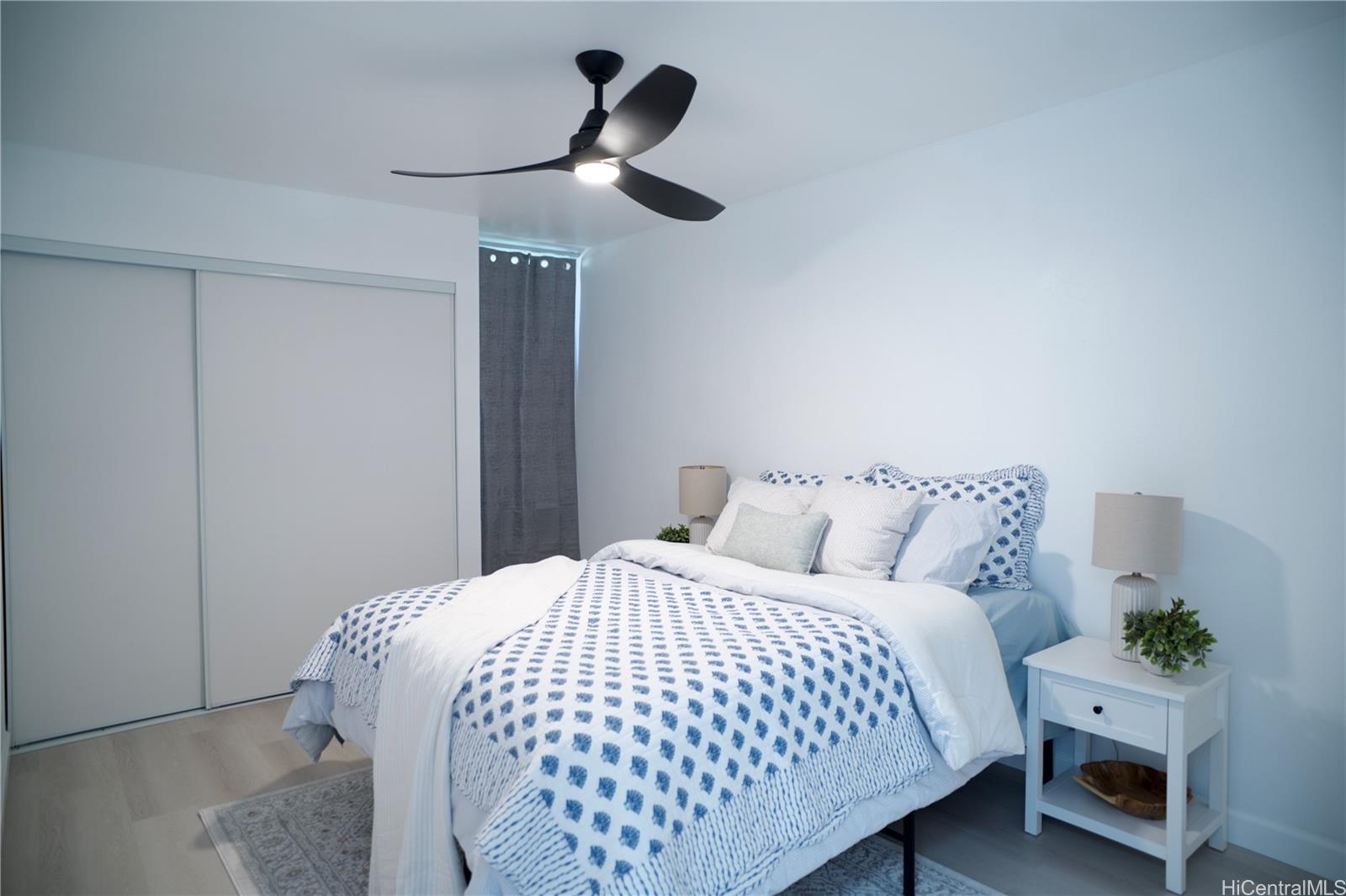 Welcome to your private oasis at Makaha Valley Plantation, Unit 106B – a fully remodeled gem that blends modern luxury with serene tropical living. Step inside to discover an open, light-filled layout featuring brand-new vinyl plank flooring throughout the main living areas and sleek tile in the kitchen and bath for effortless style and maintenance. The heart of this home is the stunning modern kitchen, boasting all-new shaker-style cabinetry, gleaming quartz countertops, and stainless steel appliances – perfect for everything from quick mornings to entertaining guests. Both bedrooms offer generous space and natural light, while the refreshed bathroom includes contemporary fixtures and a spa-like feel. Enjoy resort-style amenities just steps away: two sparkling pools, BBQ areas, tennis courts, and lush walking paths surrounded by swaying palms and mountain views. Gated security, assigned parking, and low maintenance fees make island living a breeze. Just minutes from pristine Makaha Beach and world-class golf, this move-in-ready condo is your gateway to West Oahu’s laid-back paradise. Don’t miss this rare turnkey opportunity!