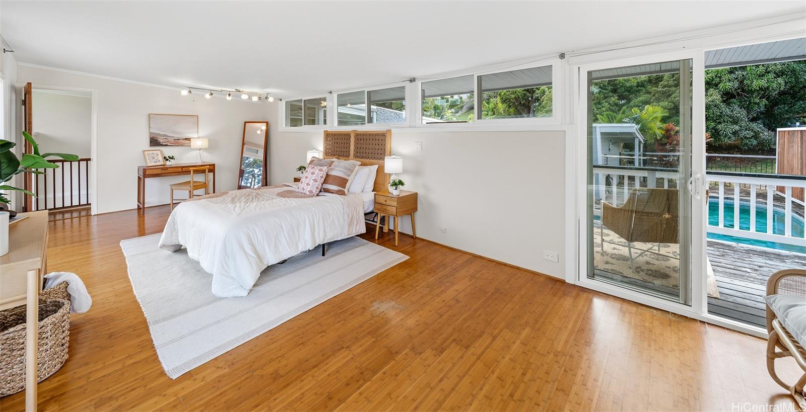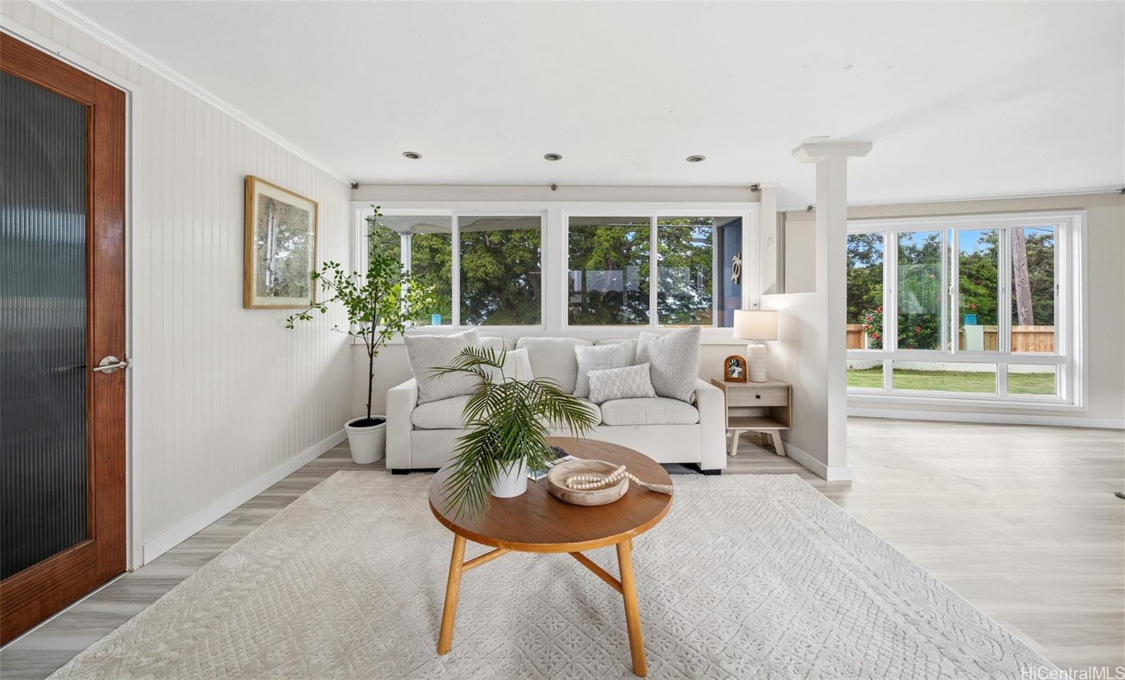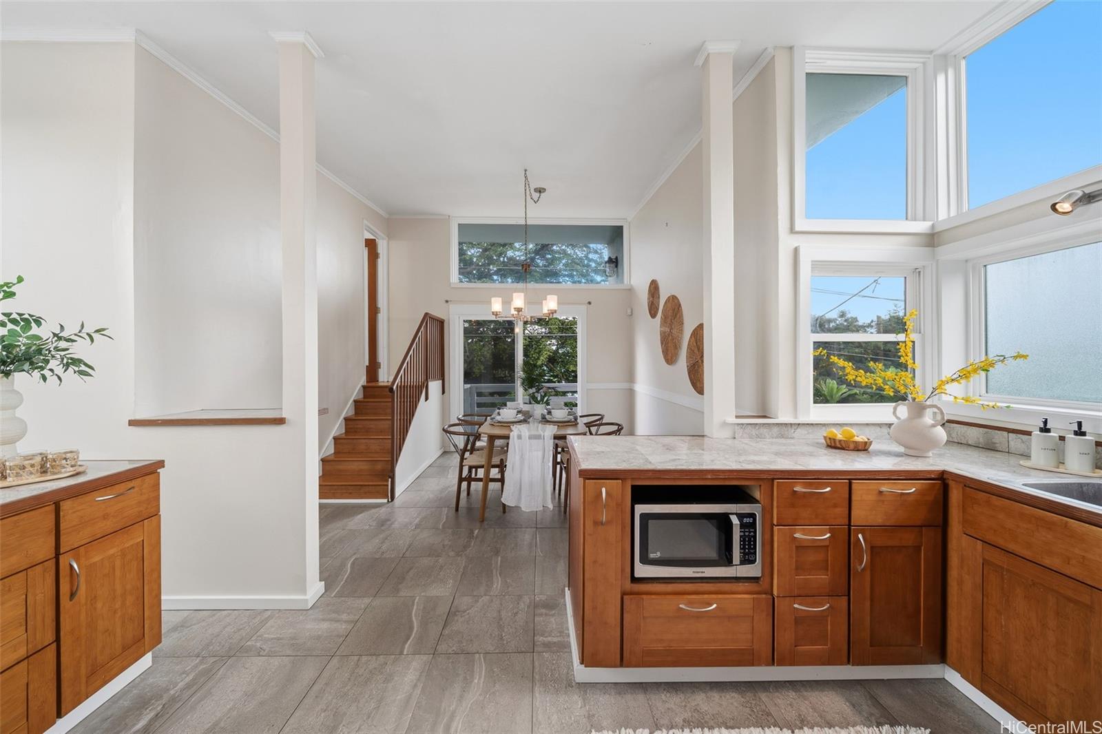 カネオヘ湾を見下ろすルラニ・オーシャンに佇む、ミッドセンチュリー・モダンの至宝。島民の暮らしと時代を超越したデザインが融合しています。ありきたりな住宅ではなく、個性、流れ、そして心地よい空間を体現しています。キッチンとバスルームは長年にわたり改装され、屋内と屋外が繋がっているため、ゲストとの交流もスムーズです。涼しい風が吹き抜ける複数のベランダからは山々の景色を一望でき、緑豊かで広々とした10,710平方フィートの敷地は、夢にまで見たADU(独立居住ユニット)の設置にも最適です。階下には、専用のエントランスを備えた独立したリビングエリアがあり、広々としたリビングやクリエイティブな空間として活用できます。プールサイドでくつろいだり、コオラウの滝を眺めたり、近くのラエナニ・ネイバーフッド・パークからカヤックを漕ぎ出したりと、様々な楽しみ方ができます。2台分のガレージに加え、駐車スペースと広々とした収納スペースも備え、機能性と楽しさを兼ね備えた住まいです。オーシャンフロントの住宅価格に見合うことなく、真の海辺のライフスタイルを実現できます。