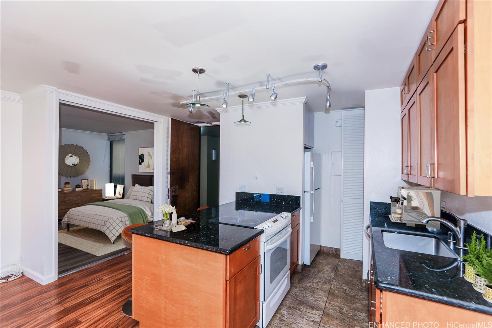 Experience Waikiki Living at Its Best! Enjoy breathtaking views of the Ala Wai Canal, golf course, and majestic mountains from this desirable 2-bedroom, 1.5-bath. Recently updated and freshly painted, this spacious unit features an upgraded kitchen that blends modern style with everyday comfort, and new luxury vinyl plank flooring in bedrooms. Step outside and enjoy the ultimate convenience of living minutes to world-class beaches, premier shopping, and countless dining options. Building amenities include a pool, BBQ area, perfect for relaxed island living. Don’t miss this opportunity to own your piece of paradise in the heart of Waikiki. Sold as is. Photos are Virtually Staged.