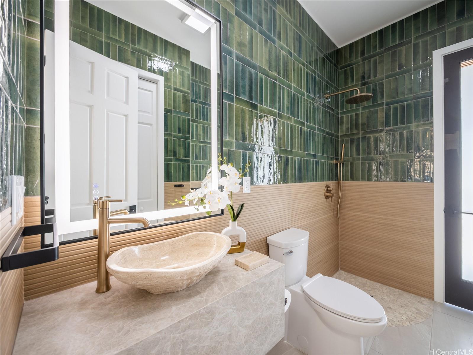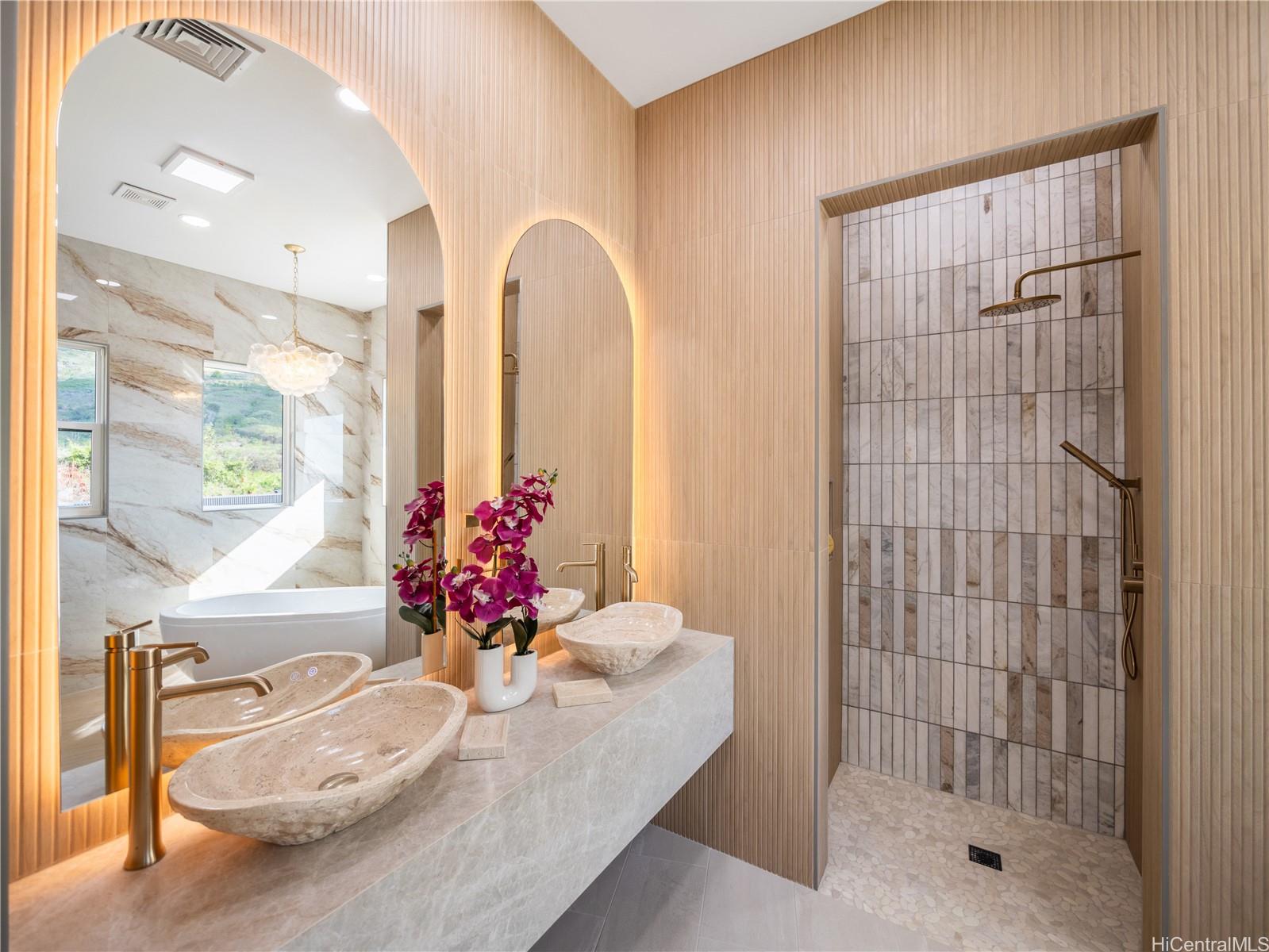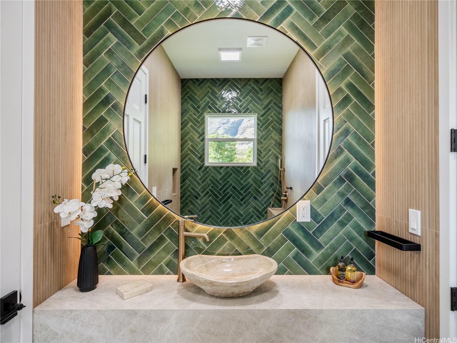 高級ゲートコミュニティ、マウナオル・エステーツに佇む、この格別なアイランドリトリートは、モダンなエレガンスとハワイの自然美が見事に融合した、他に類を見ない空間です。緑豊かな1エーカーの敷地に広がる、平屋建ての4ベッドルーム、4バスルームの邸宅は、屋内と屋外を繋ぐ快適な生活と、豪華なエンターテイメントのために設計されています。約3,500平方フィートの洗練された空間は、高い天井、特大の窓、そして自然光がたっぷりと差し込むスライドドアを備え、息を呑むような山と海の景色を一望できます。シェフズキッチンには、最新のカフェ家電、特注キャビネット、そして12名様用の手作りダイニングテーブルが備えられており、大人数での集まりにもプライベートな集まりにも最適です。メインスイートは、スパ風のバスタブを備えた静かな空間で、らせん階段を上るとウェットバーとワインセラーを備えたロフトがあり、くつろぎのひとときや、お客様をおもてなしするのに最適です。屋外では、特注の滝、緑豊かなランドスケープ、ウォータースライダーとスパを備えたリゾートスタイルのプールをお楽しみいただけます。900平方フィート(約83平方メートル)を超える3台用ガレージは、両開きドアを備え、機能性とラグジュアリーさを融合し、究極のハワイライフスタイルを体現しています。